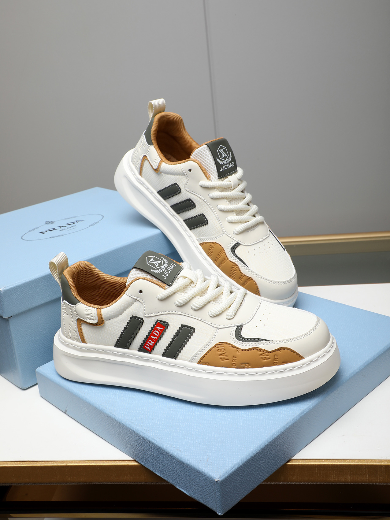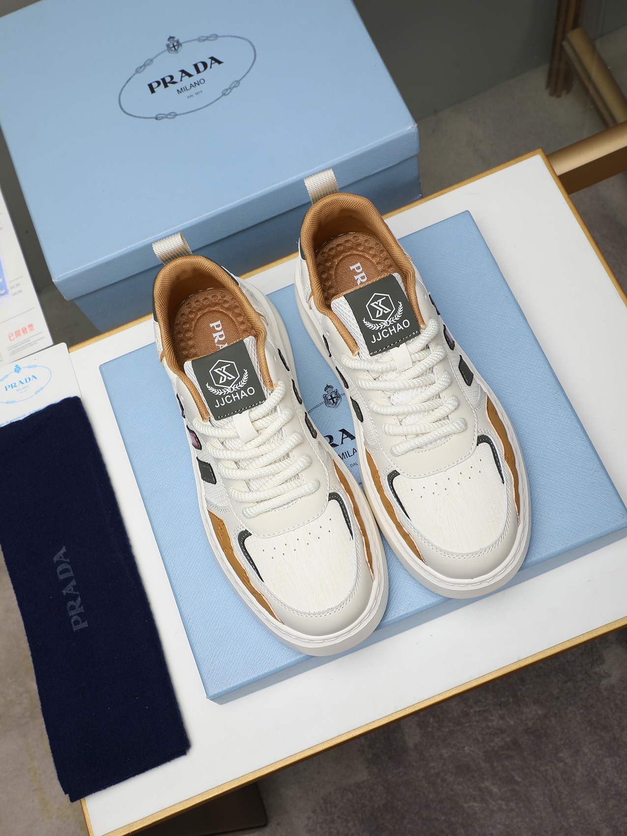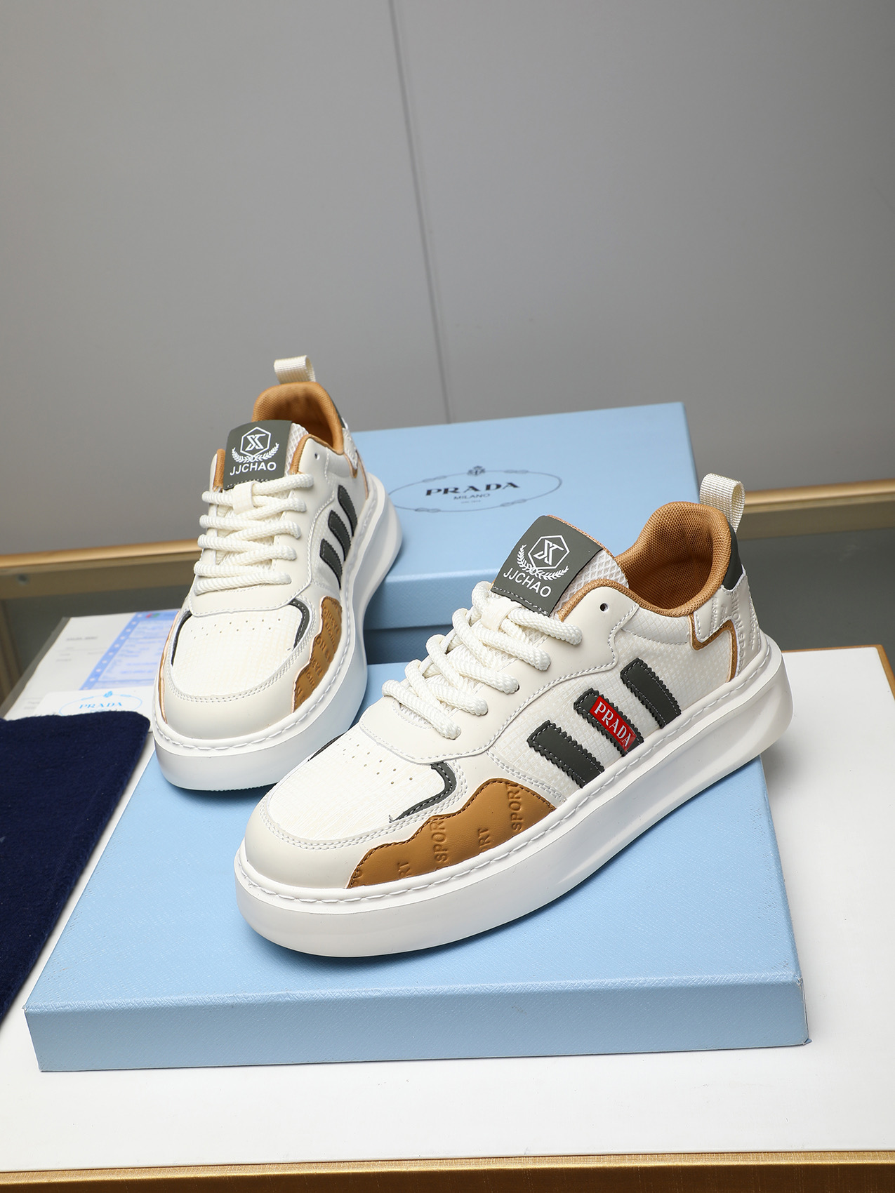 这款鞋子是AAAAA 1:1 质量 (非常棒). 使用了和原版一模一样的材料. 商标部分也保持了和普拉达/Prada一样. 图片拍摄是实物鞋子拍摄, 您所收到的实物保证和我们图片一模一样.