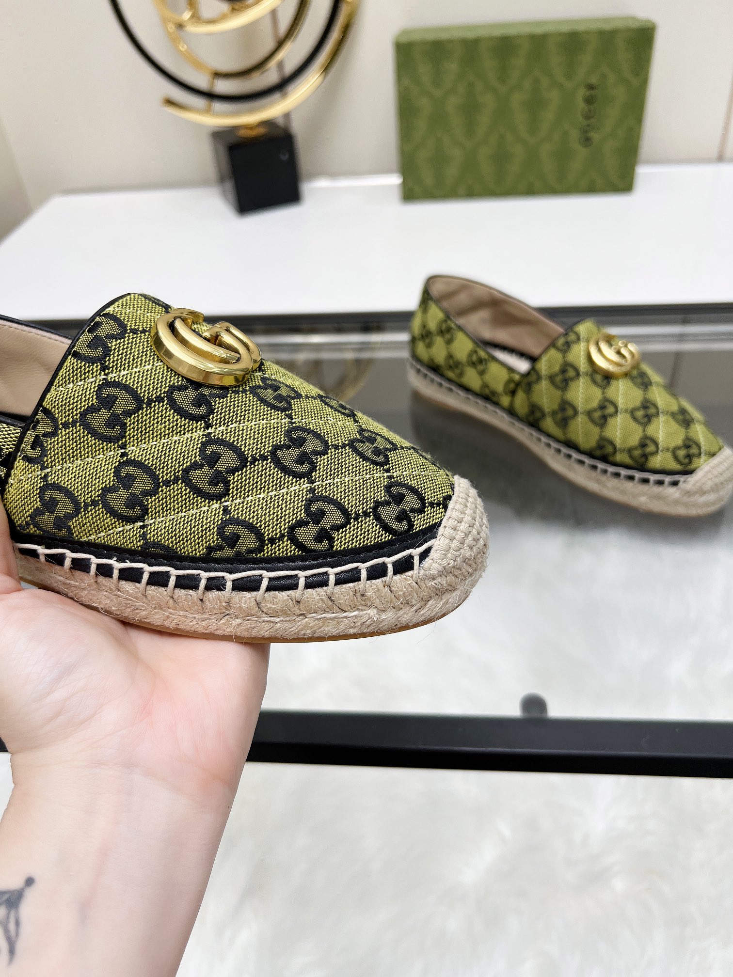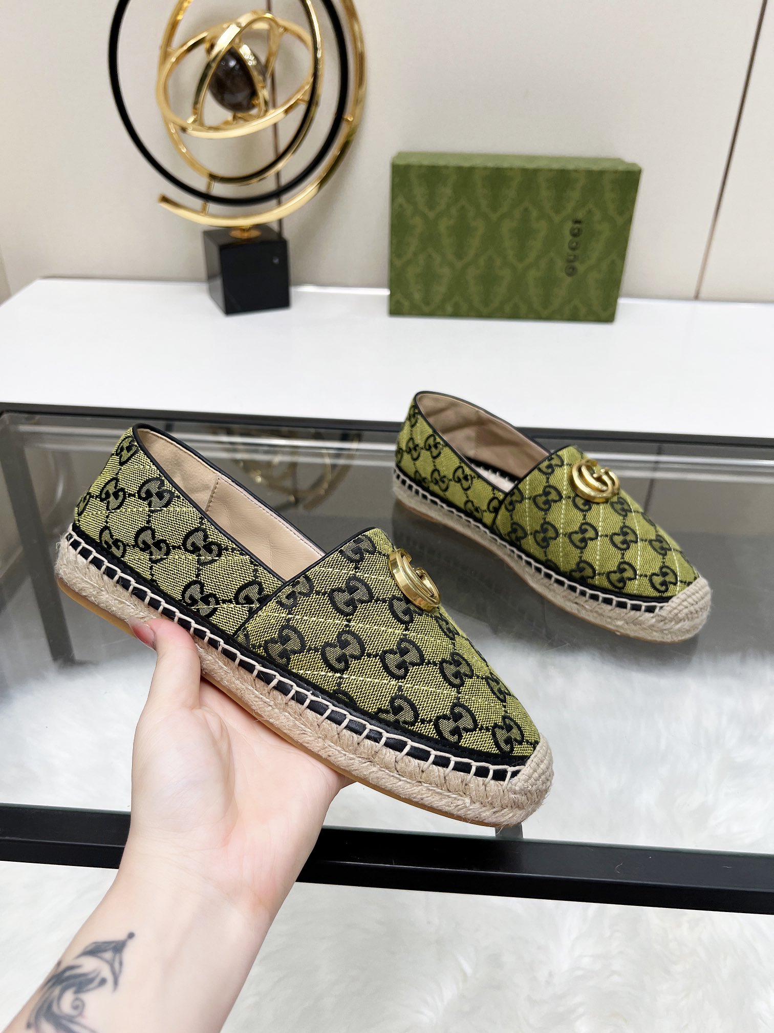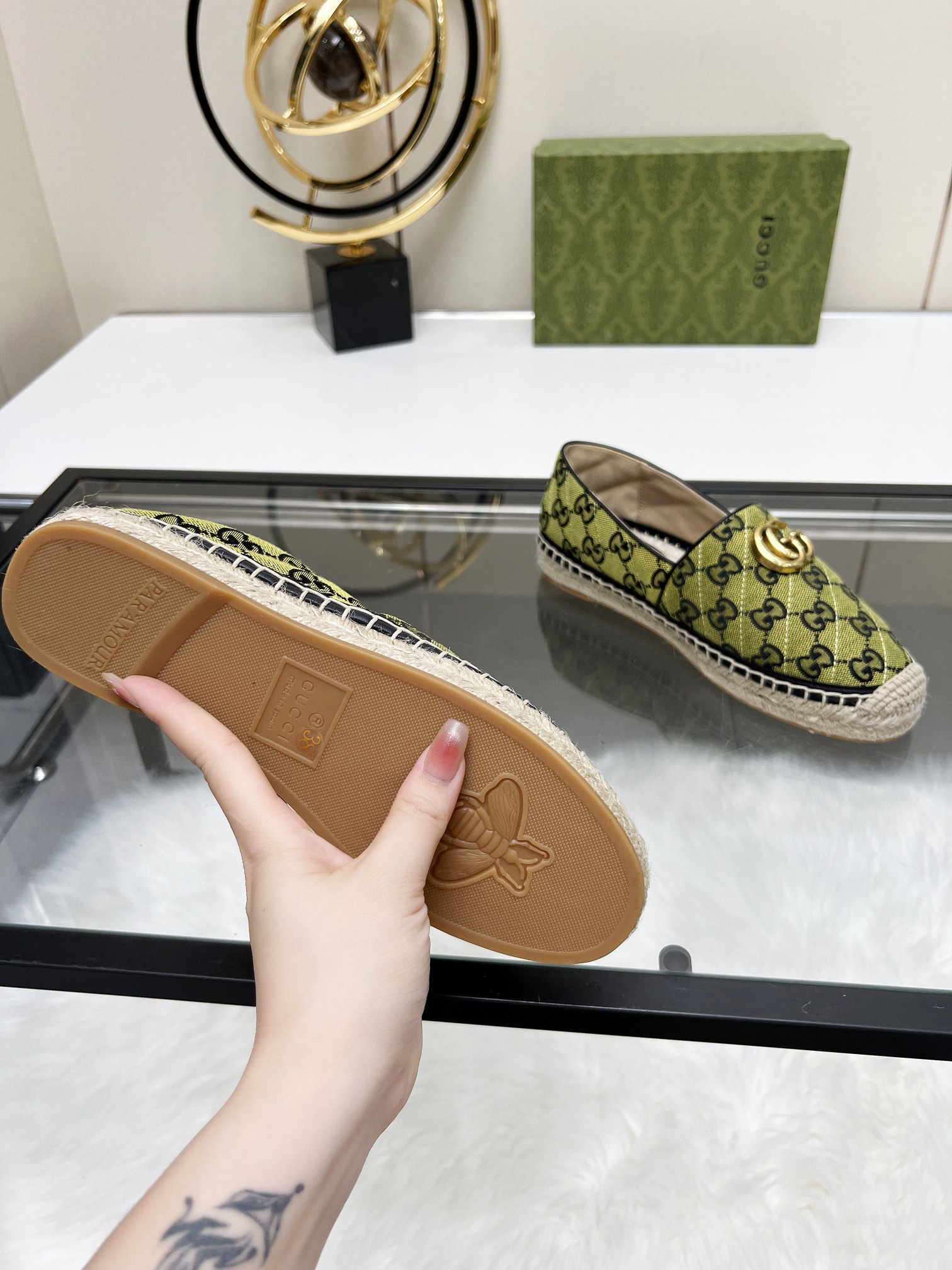 这款鞋子是AAAAA 1:1 质量 (非常棒). 使用了和原版一模一样的材料. 商标部分也保持了和古奇/Gucci一样. 图片拍摄是实物鞋子拍摄, 您所收到的实物保证和我们图片一模一样.