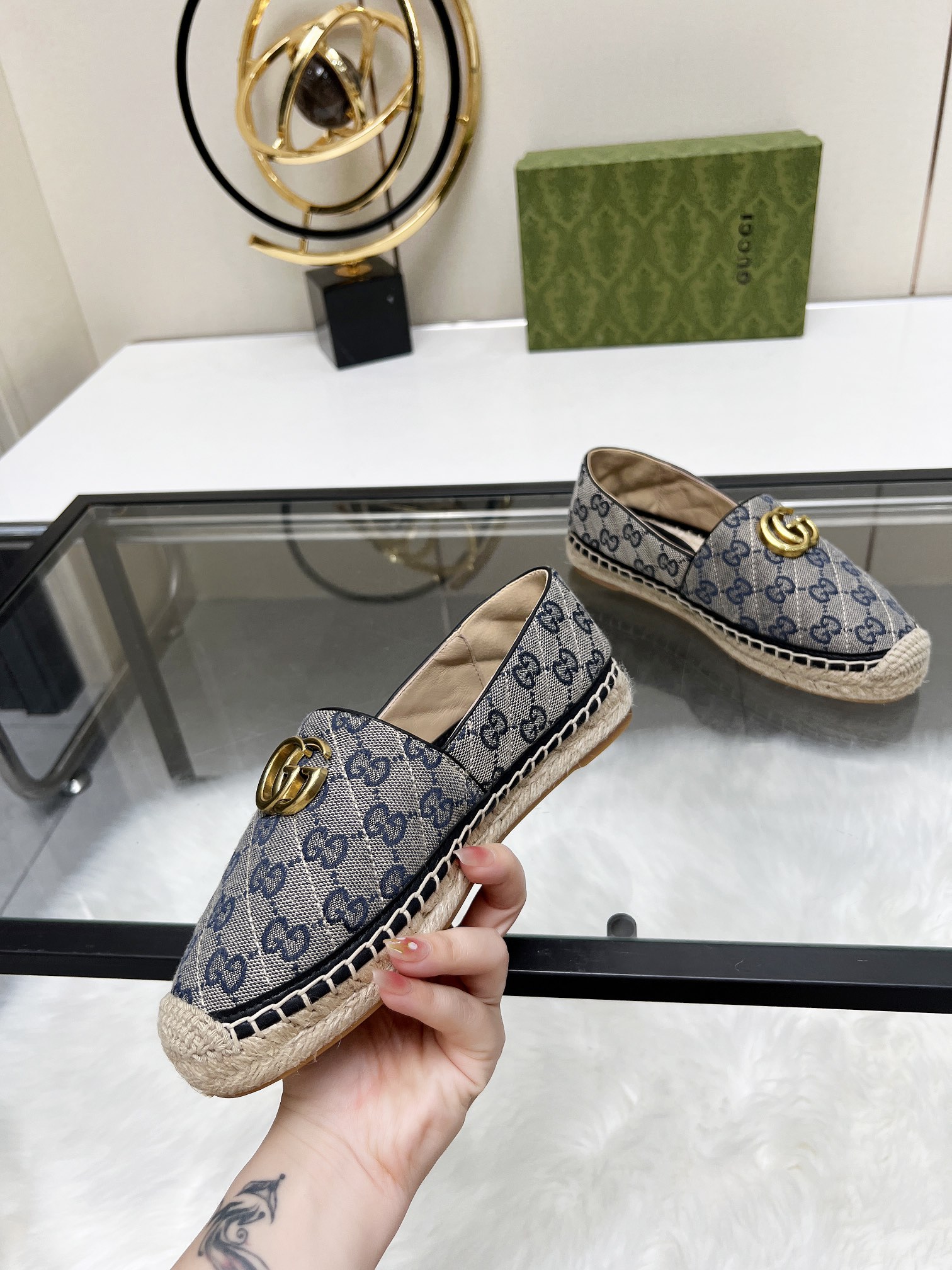 这款鞋子是AAAAA 1:1 质量 (非常棒). 使用了和原版一模一样的材料. 商标部分也保持了和古奇/Gucci一样. 图片拍摄是实物鞋子拍摄, 您所收到的实物保证和我们图片一模一样.