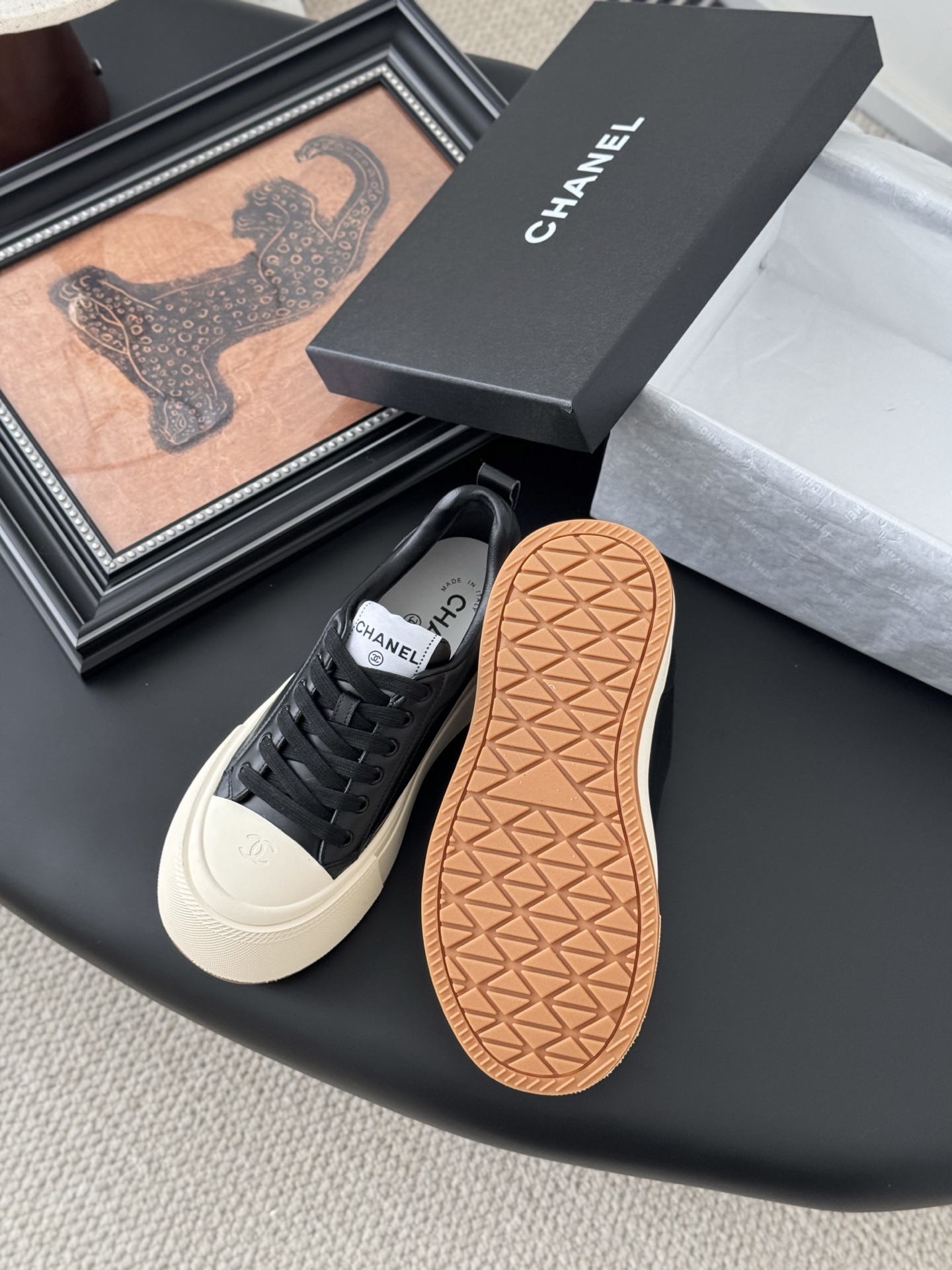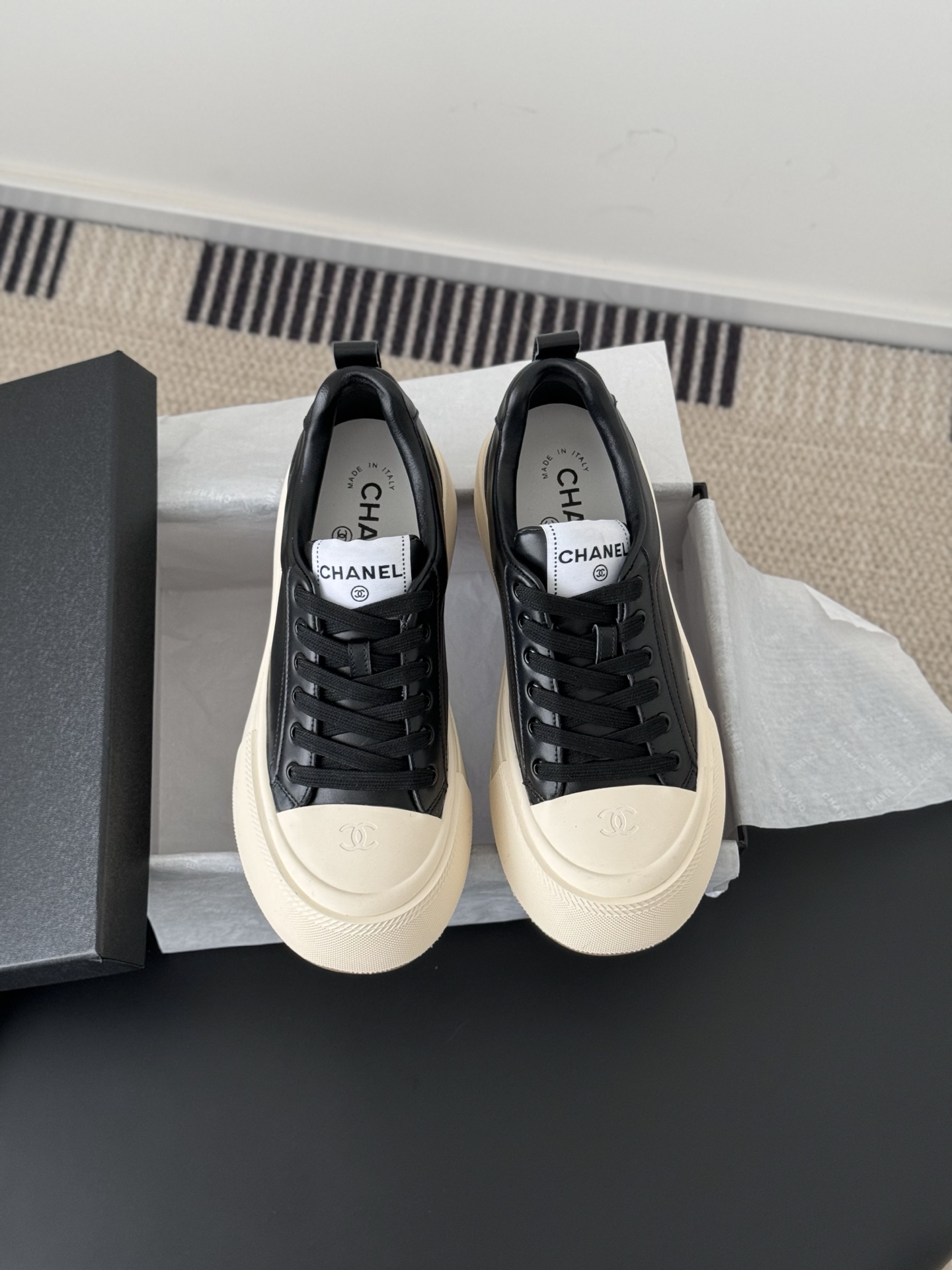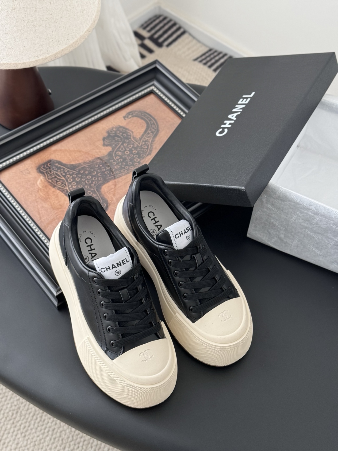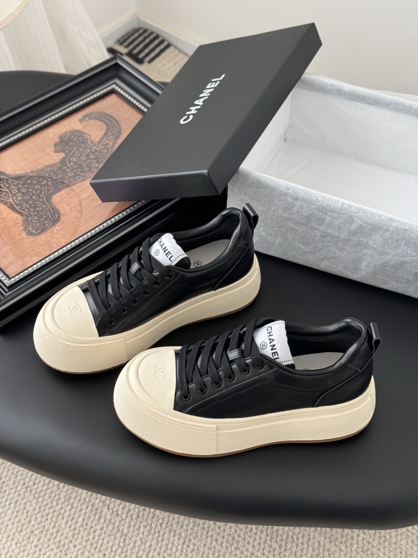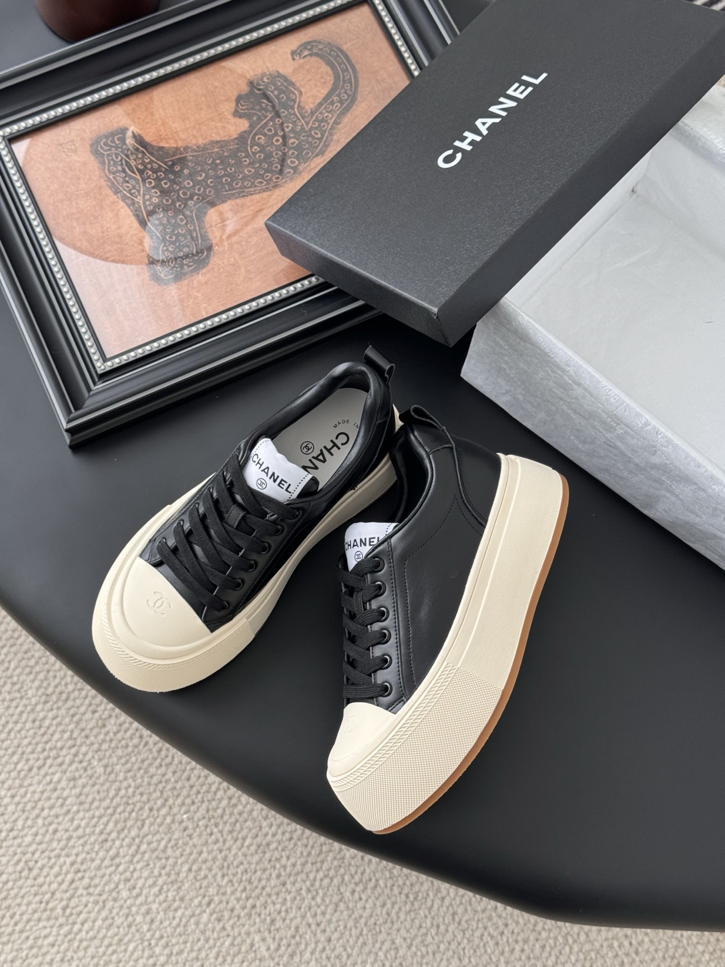 这款鞋子是AAAAA 1:1 质量 (非常棒). 使用了和原版一模一样的材料. 商标部分也保持了和香奈儿/Chanel一样. 图片拍摄是实物鞋子拍摄, 您所收到的实物保证和我们图片一模一样.