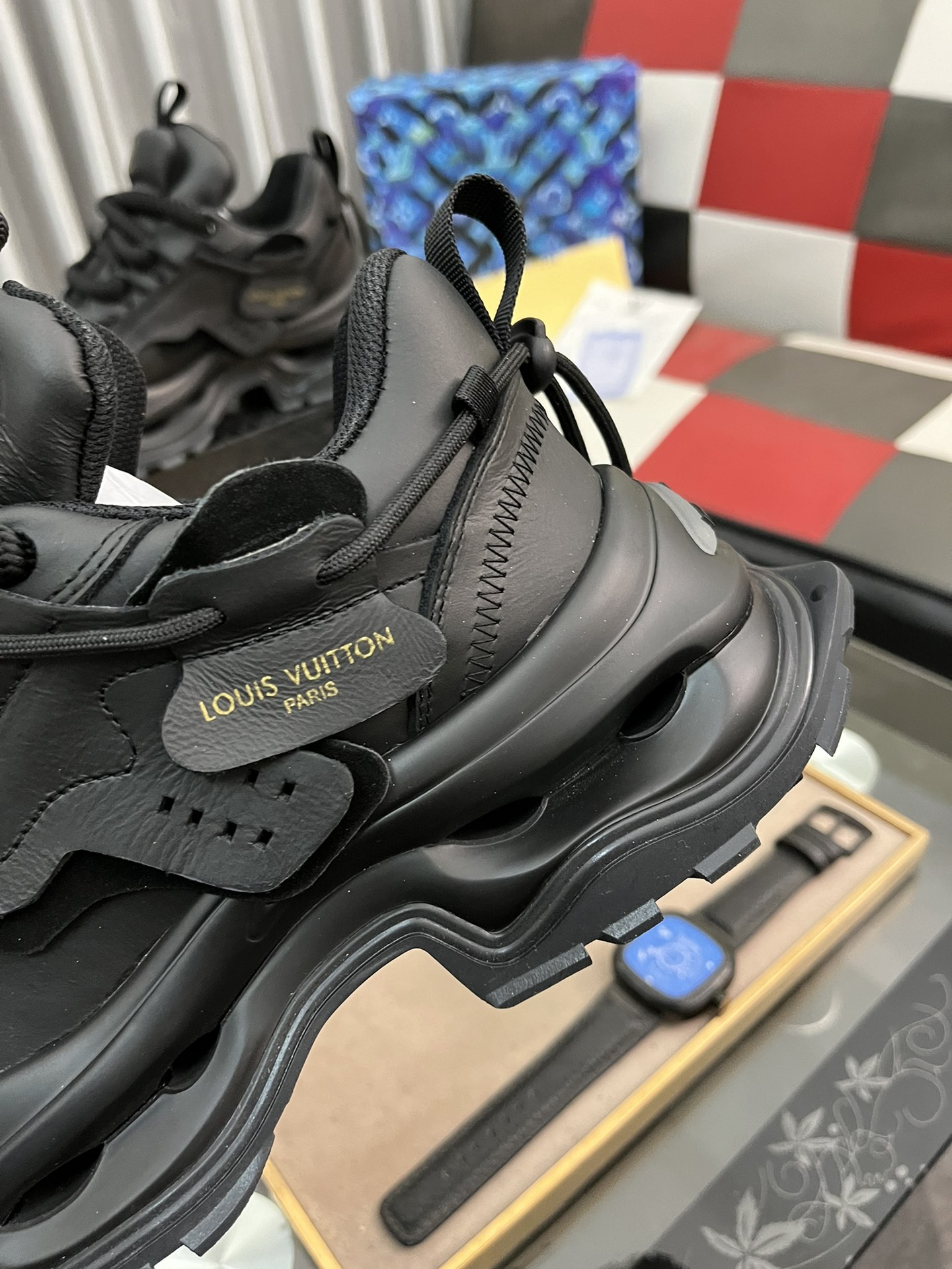 这款鞋子是AAAAA 1:1 质量 (非常棒). 使用了和原版一模一样的材料. 商标部分也保持了和路易威登/Louis Vuitton一样. 图片拍摄是实物鞋子拍摄, 您所收到的实物保证和我们图片一模一样.