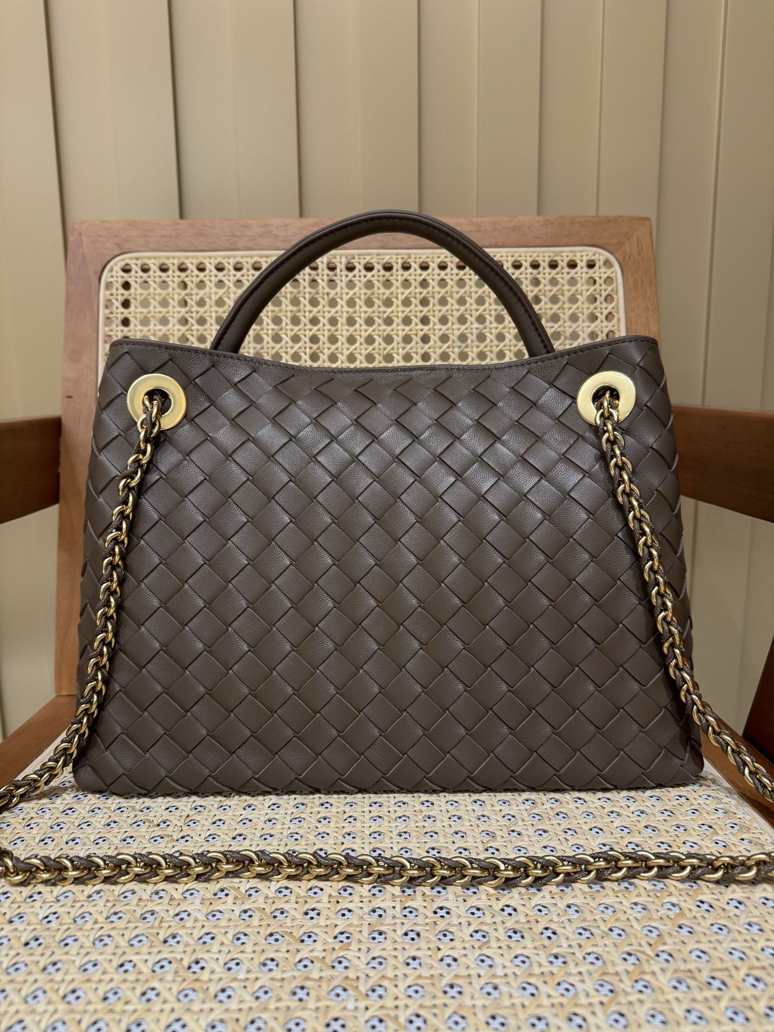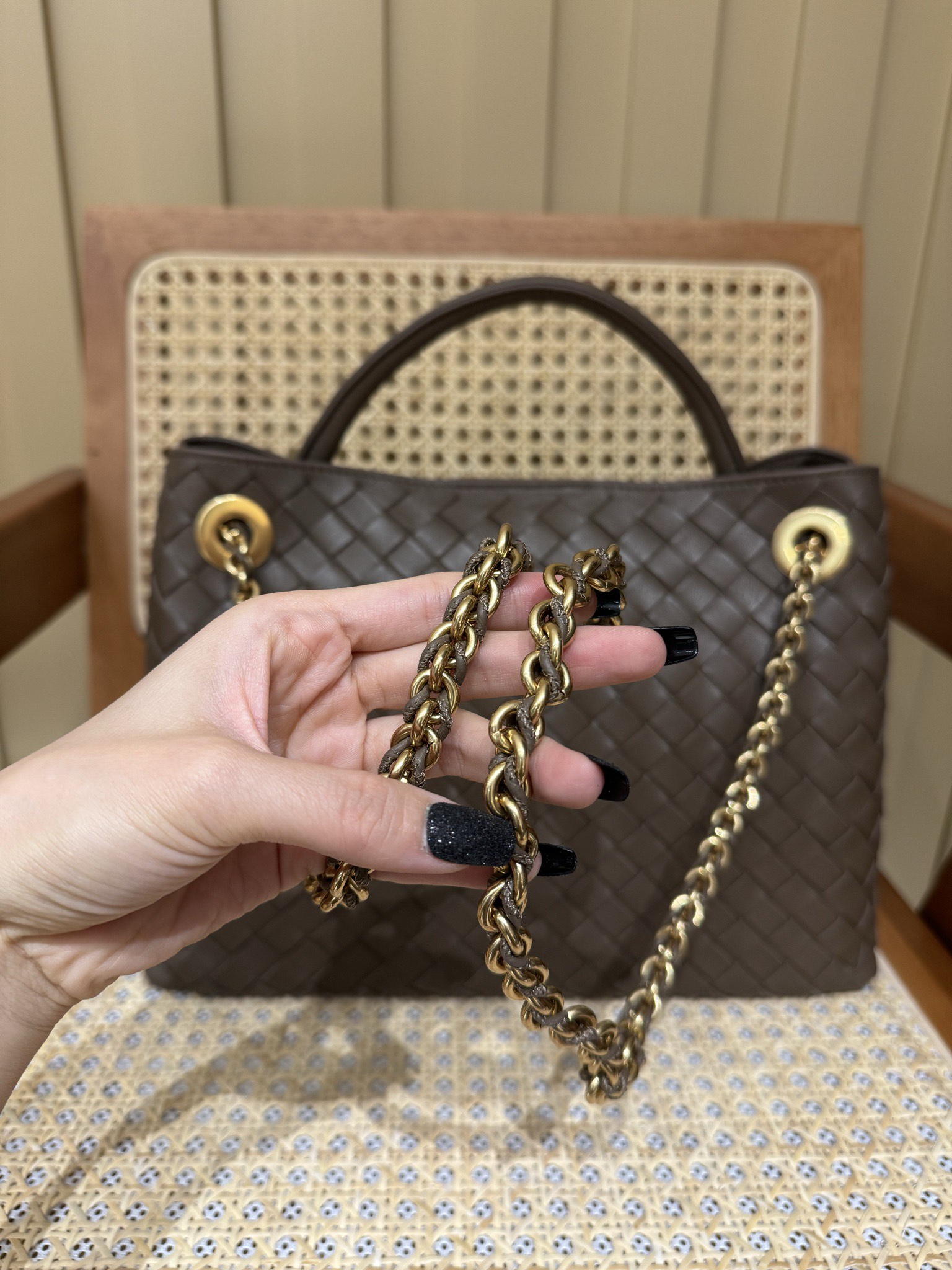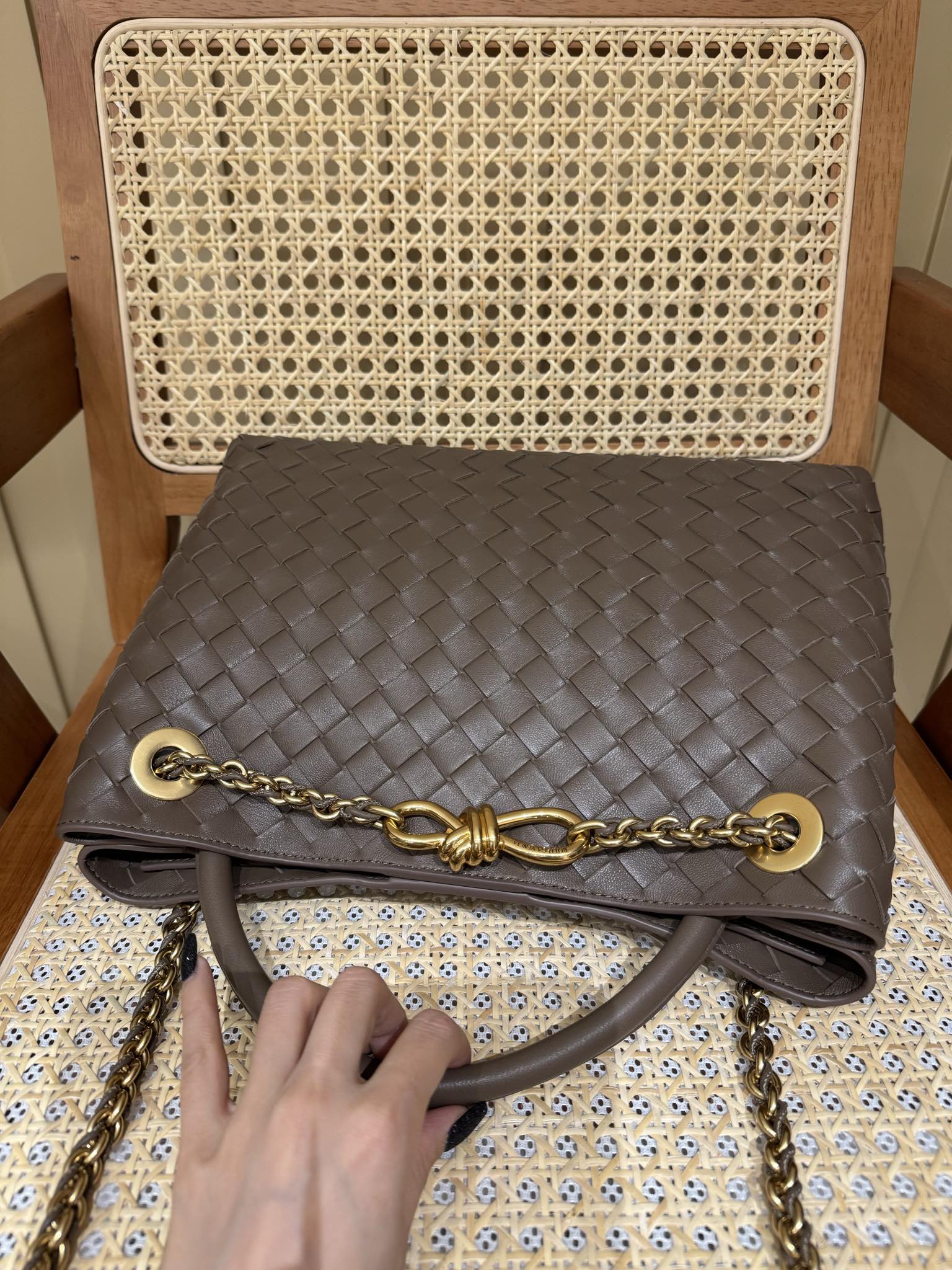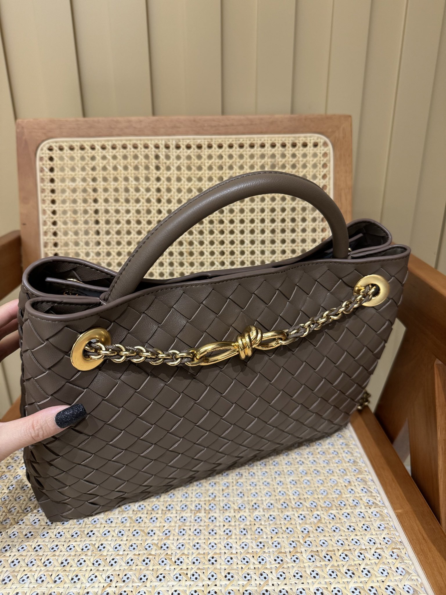 这款包包是AAAAA 1:1 质量 (非常棒). 使用了和原版一模一样的材料. 商标部分也保持了和葆蝶家/Bottega Veneta一样. 图片拍摄是实物包包拍摄, 您所收到的实物保证和我们图片一模一样.