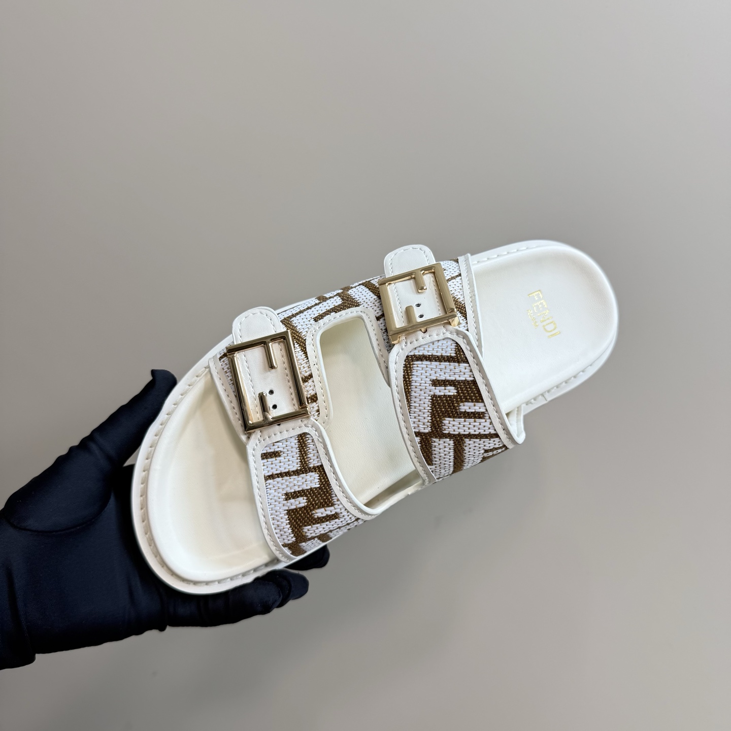 这款鞋子是AAAAA 1:1 质量 (非常棒). 使用了和原版一模一样的材料. 商标部分也保持了和芬迪/Fendi一样. 图片拍摄是实物鞋子拍摄, 您所收到的实物保证和我们图片一模一样.