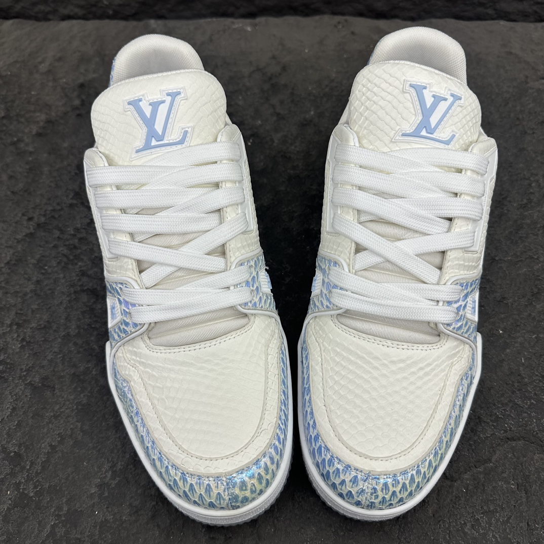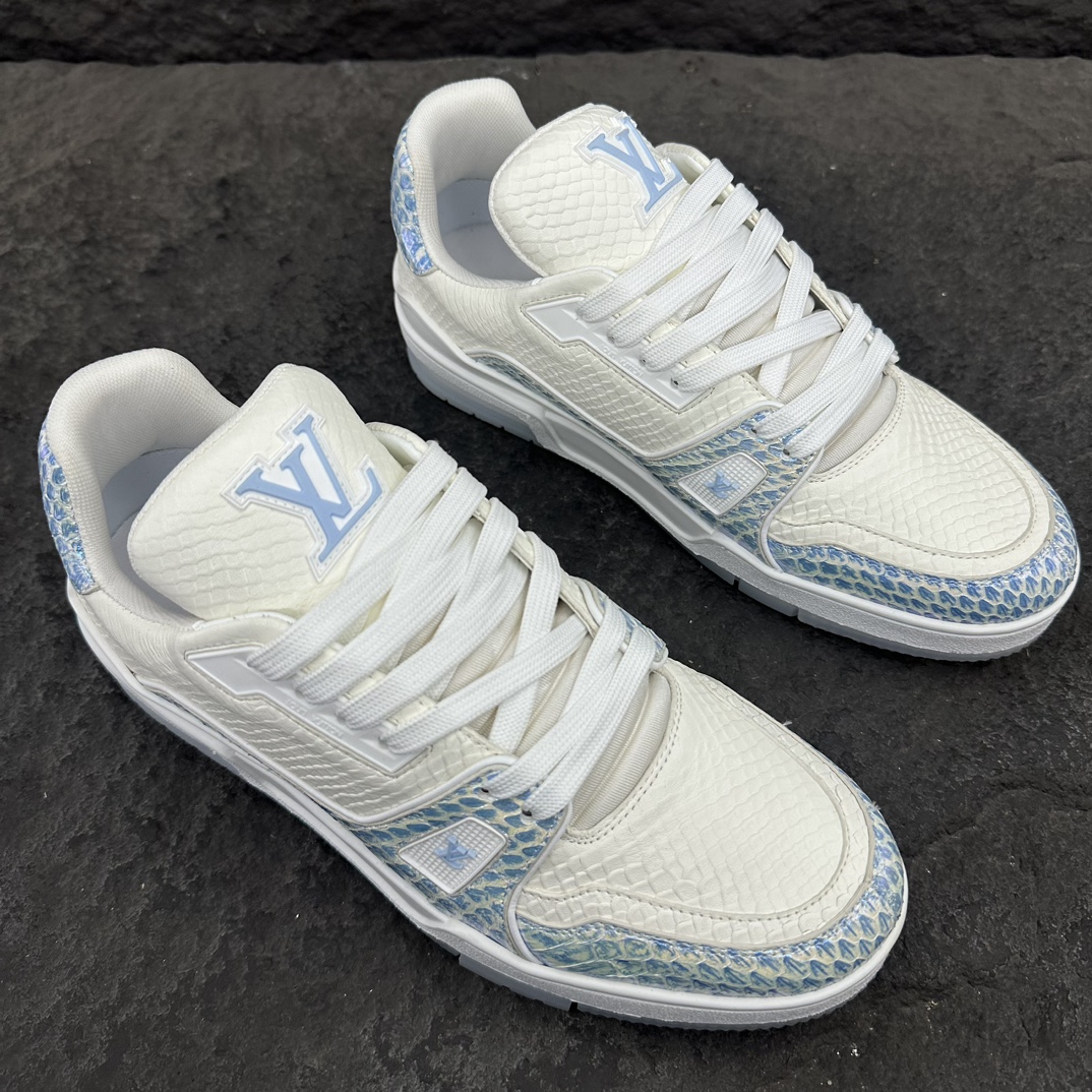 这款鞋子是AAAAA 1:1 质量 (非常棒). 使用了和原版一模一样的材料. 商标部分也保持了和路易威登/Louis Vuitton一样. 图片拍摄是实物鞋子拍摄, 您所收到的实物保证和我们图片一模一样.