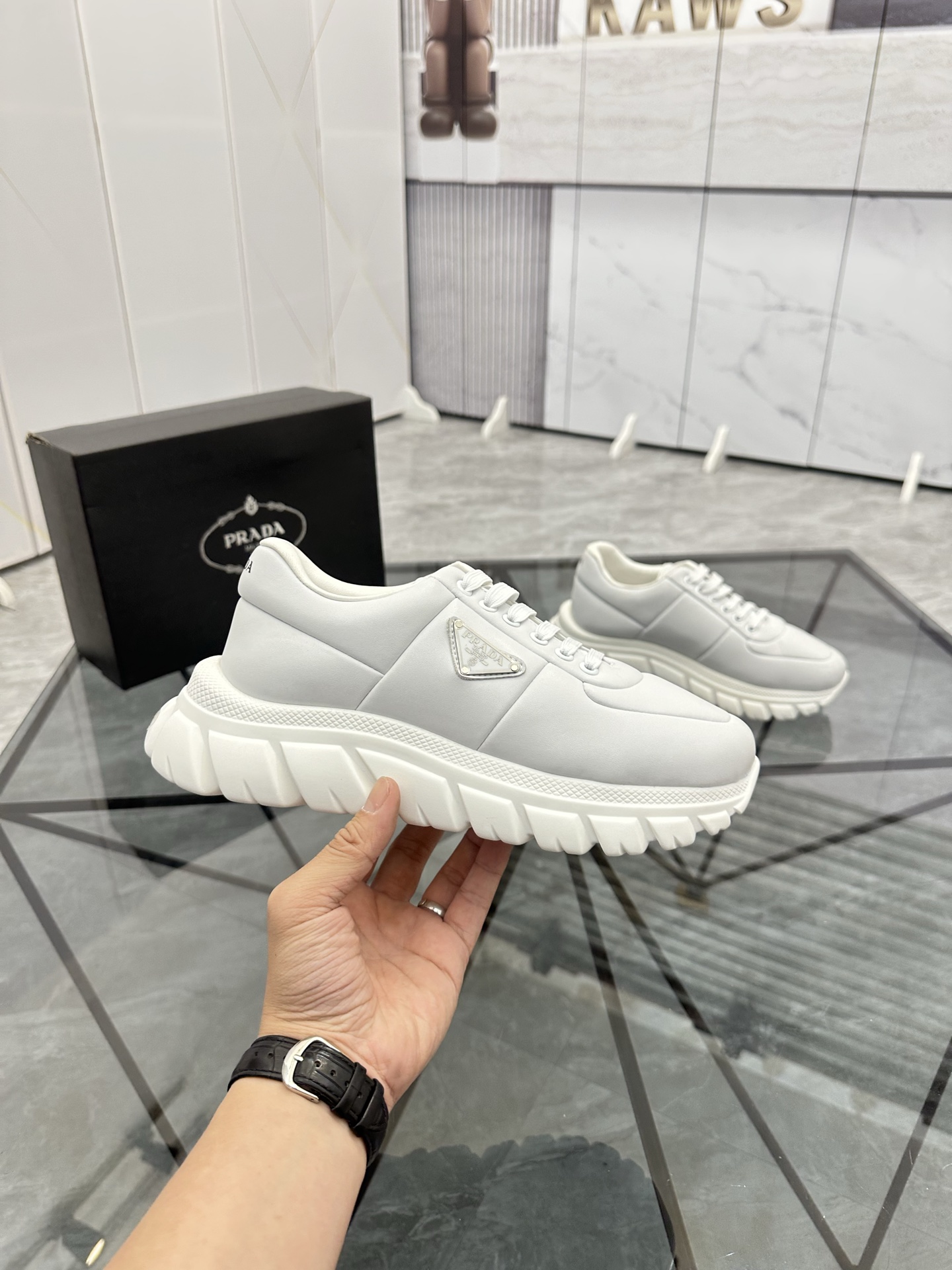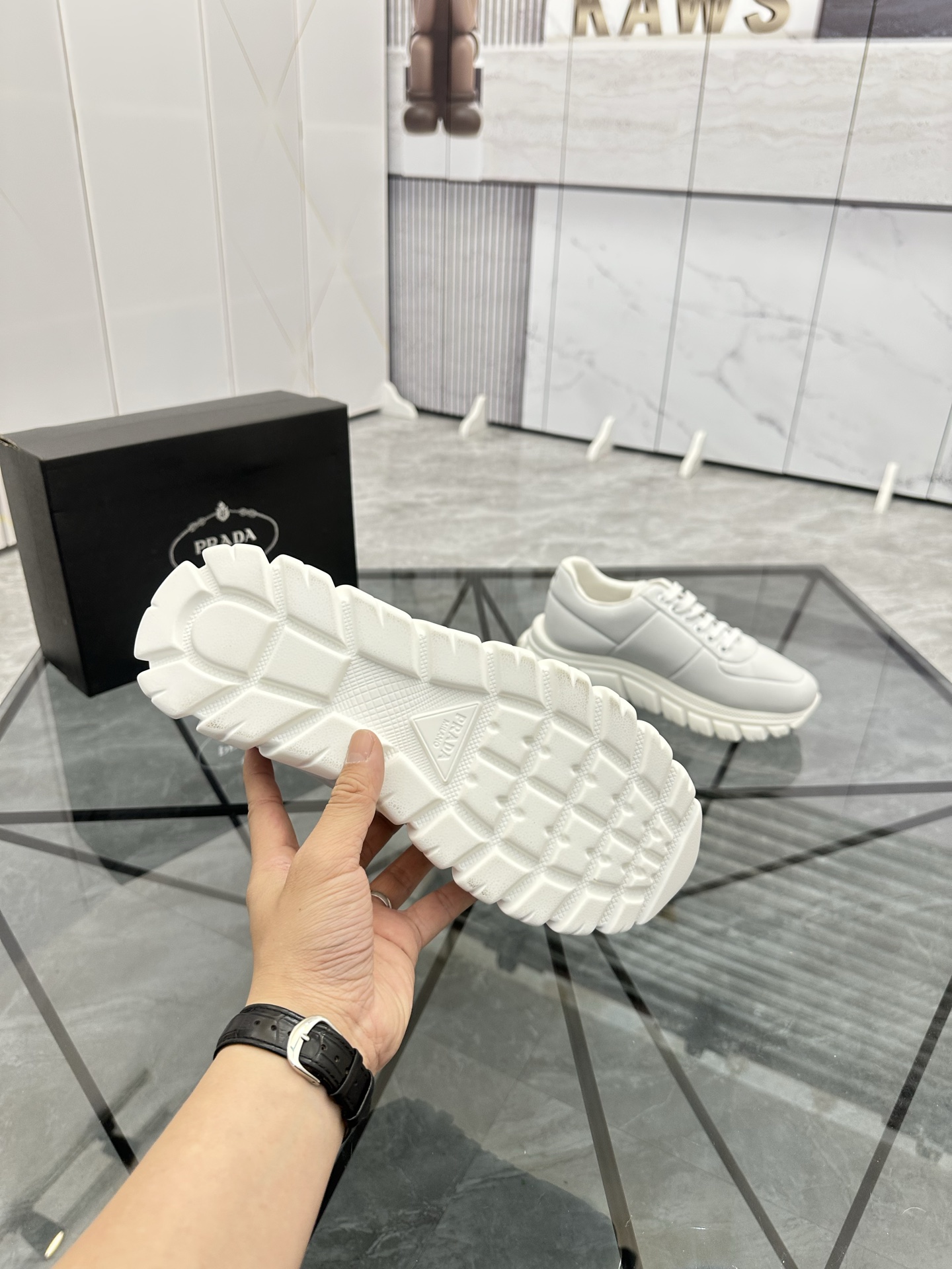 这款鞋子是AAAAA 1:1 质量 (非常棒). 使用了和原版一模一样的材料. 商标部分也保持了和普拉达/Prada一样. 图片拍摄是实物鞋子拍摄, 您所收到的实物保证和我们图片一模一样.