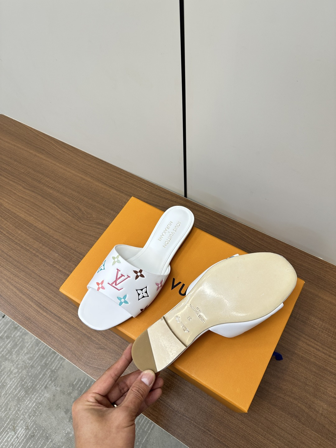 这款鞋子是AAAAA 1:1 质量 (非常棒). 使用了和原版一模一样的材料. 商标部分也保持了和路易威登/Louis Vuitton一样. 图片拍摄是实物鞋子拍摄, 您所收到的实物保证和我们图片一模一样.