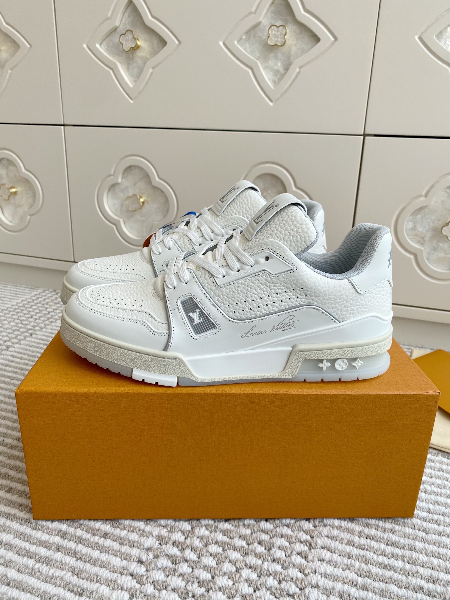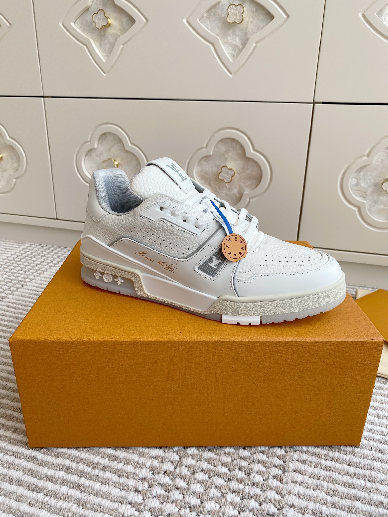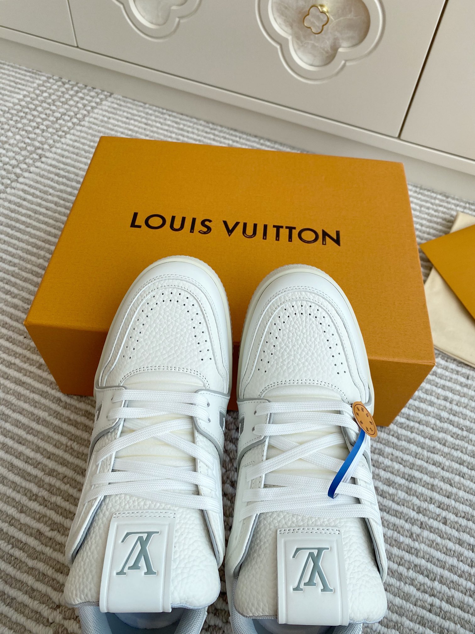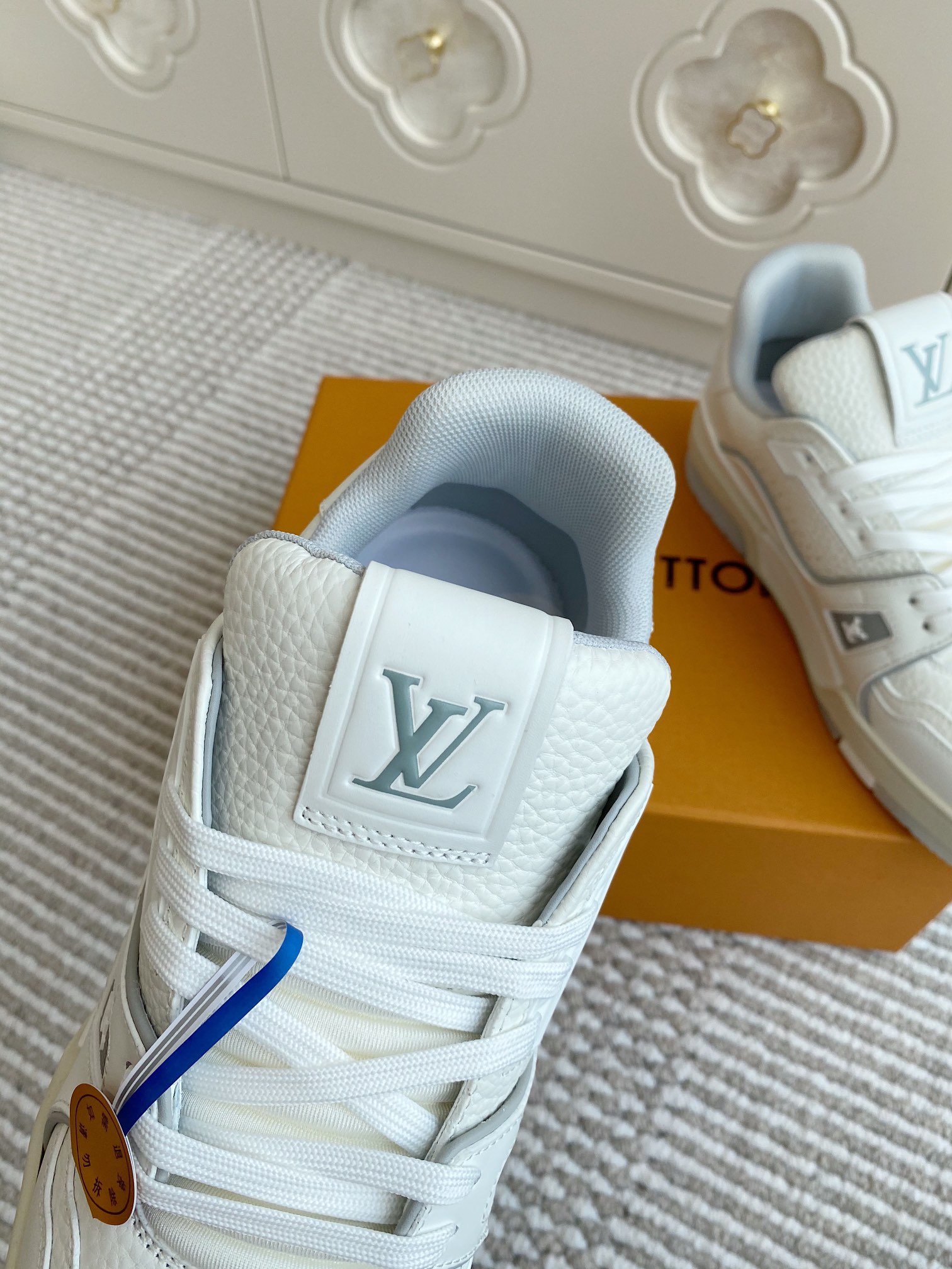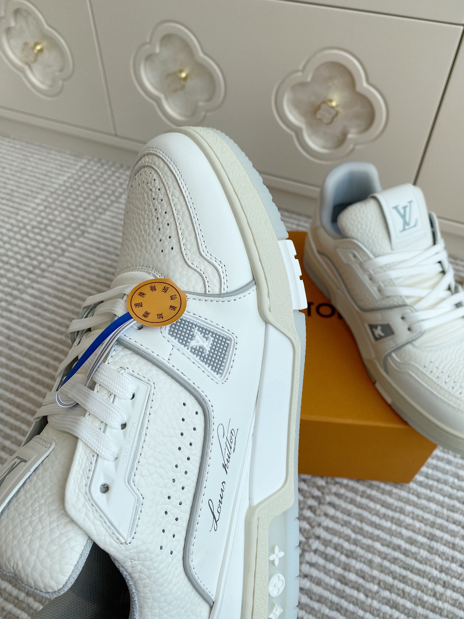 这款鞋子是AAAAA 1:1 质量 (非常棒). 使用了和原版一模一样的材料. 商标部分也保持了和路易威登/Louis Vuitton一样. 图片拍摄是实物鞋子拍摄, 您所收到的实物保证和我们图片一模一样.