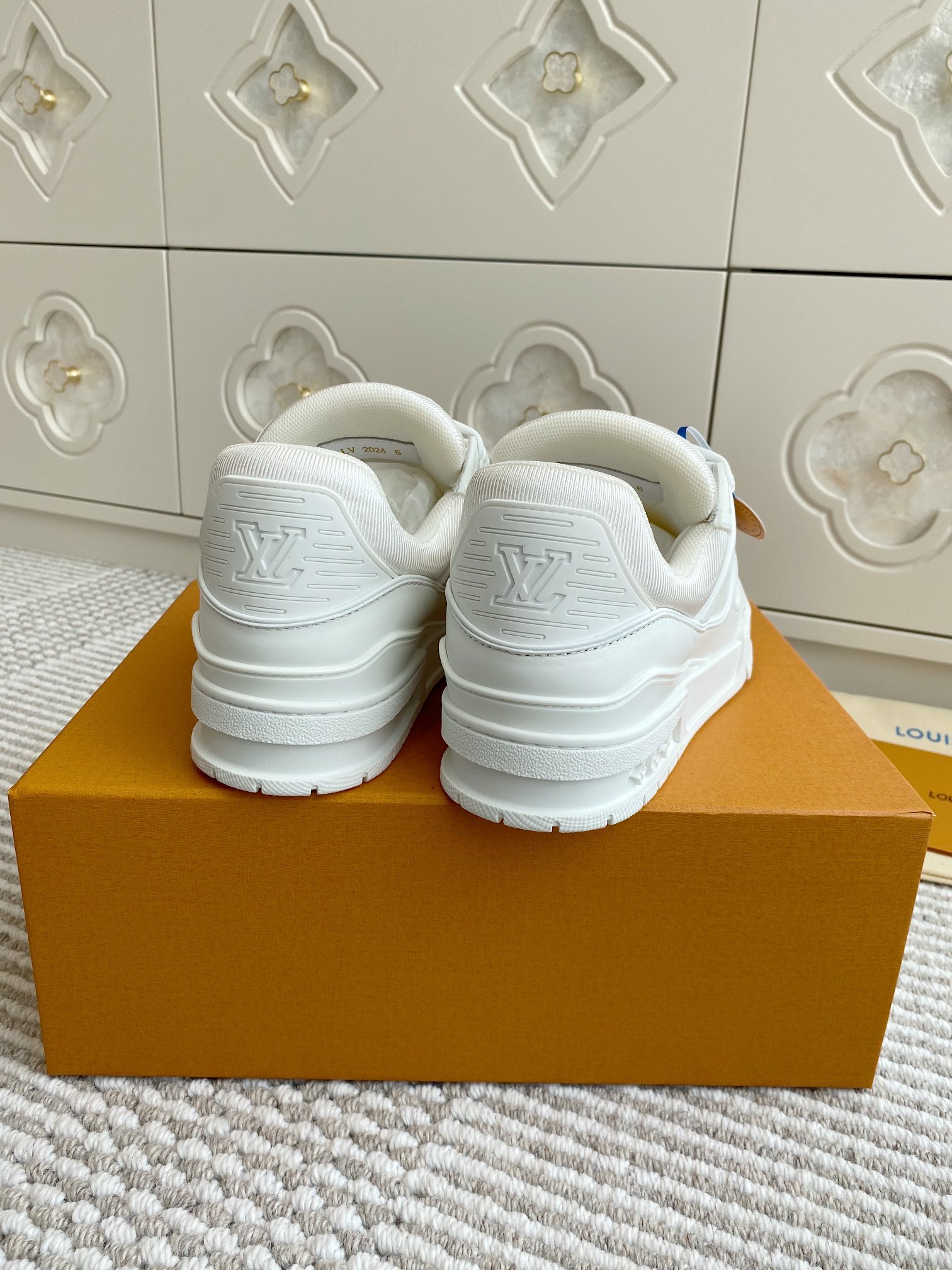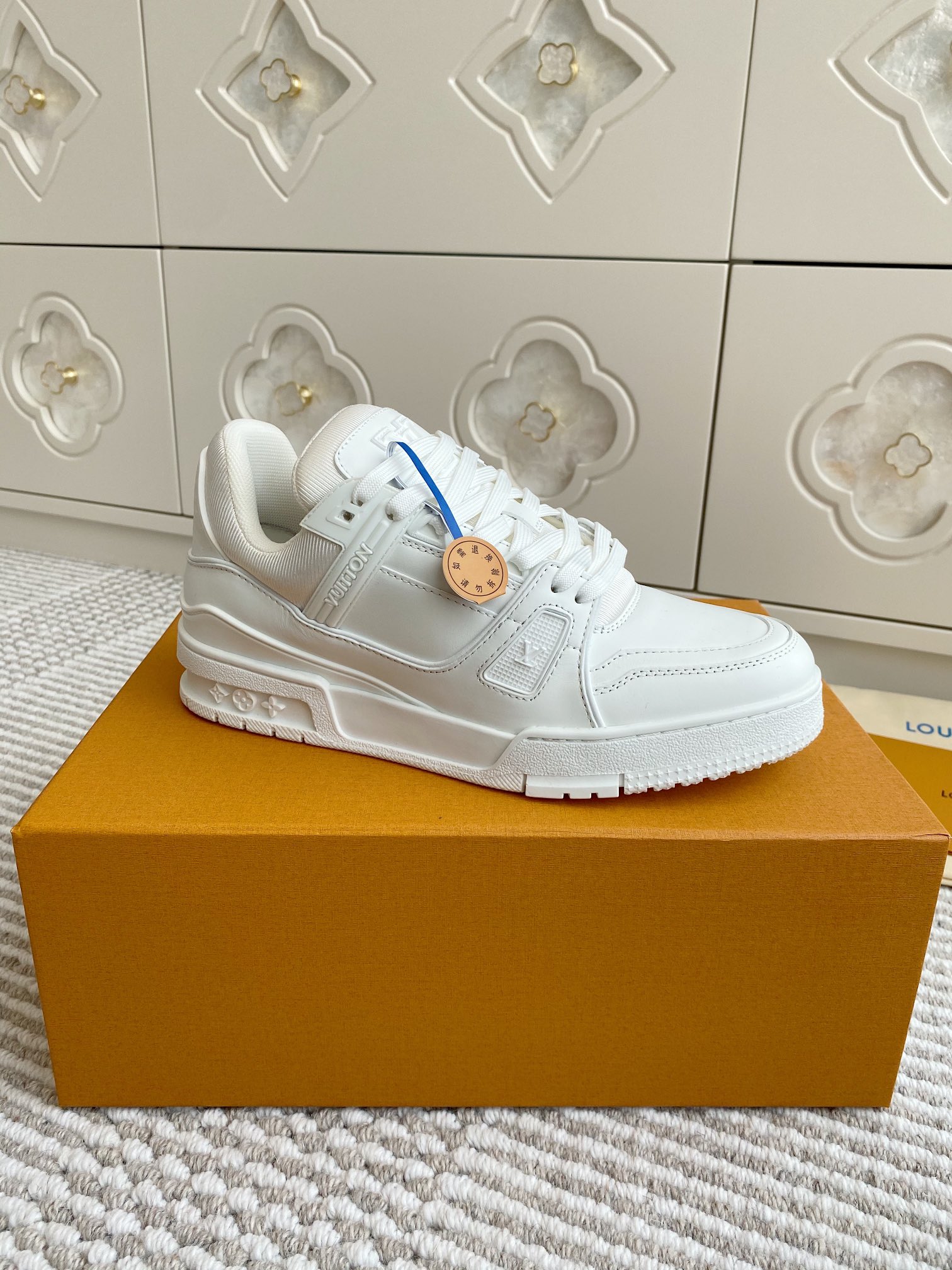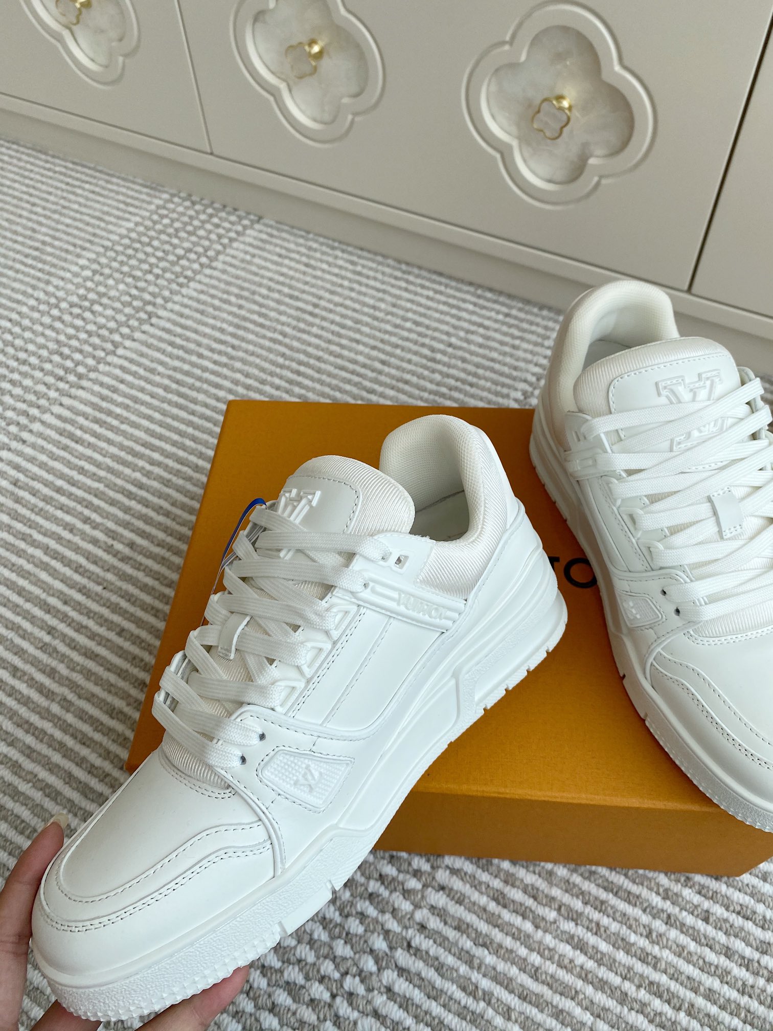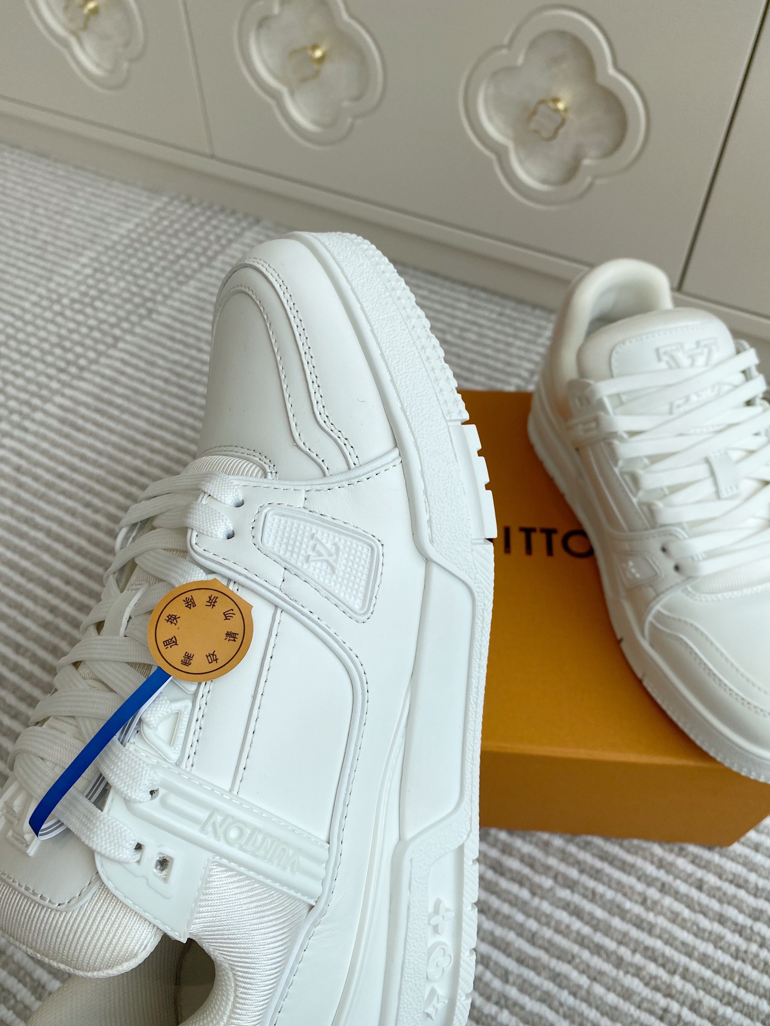 这款鞋子是AAAAA 1:1 质量 (非常棒). 使用了和原版一模一样的材料. 商标部分也保持了和路易威登/Louis Vuitton一样. 图片拍摄是实物鞋子拍摄, 您所收到的实物保证和我们图片一模一样.