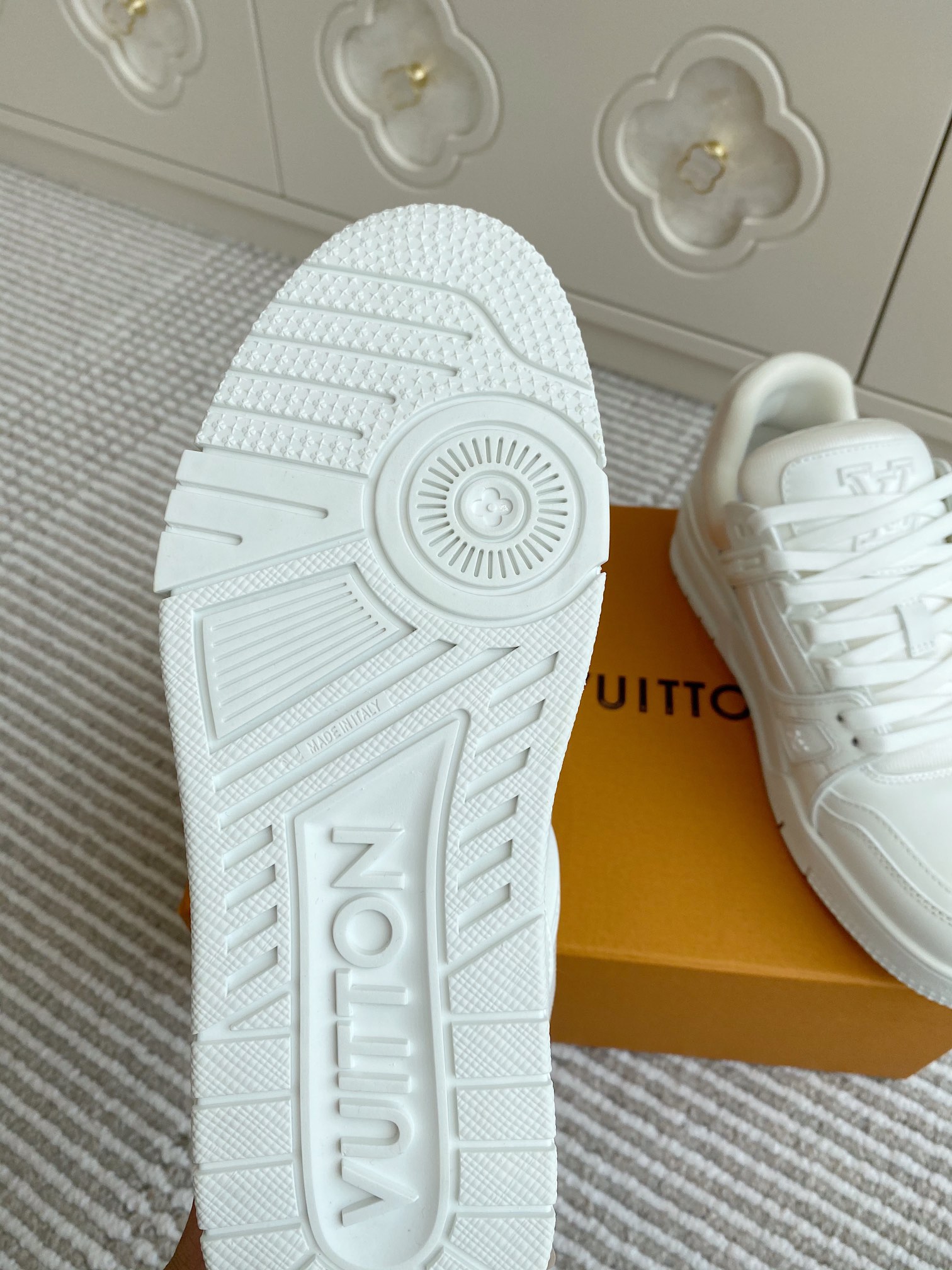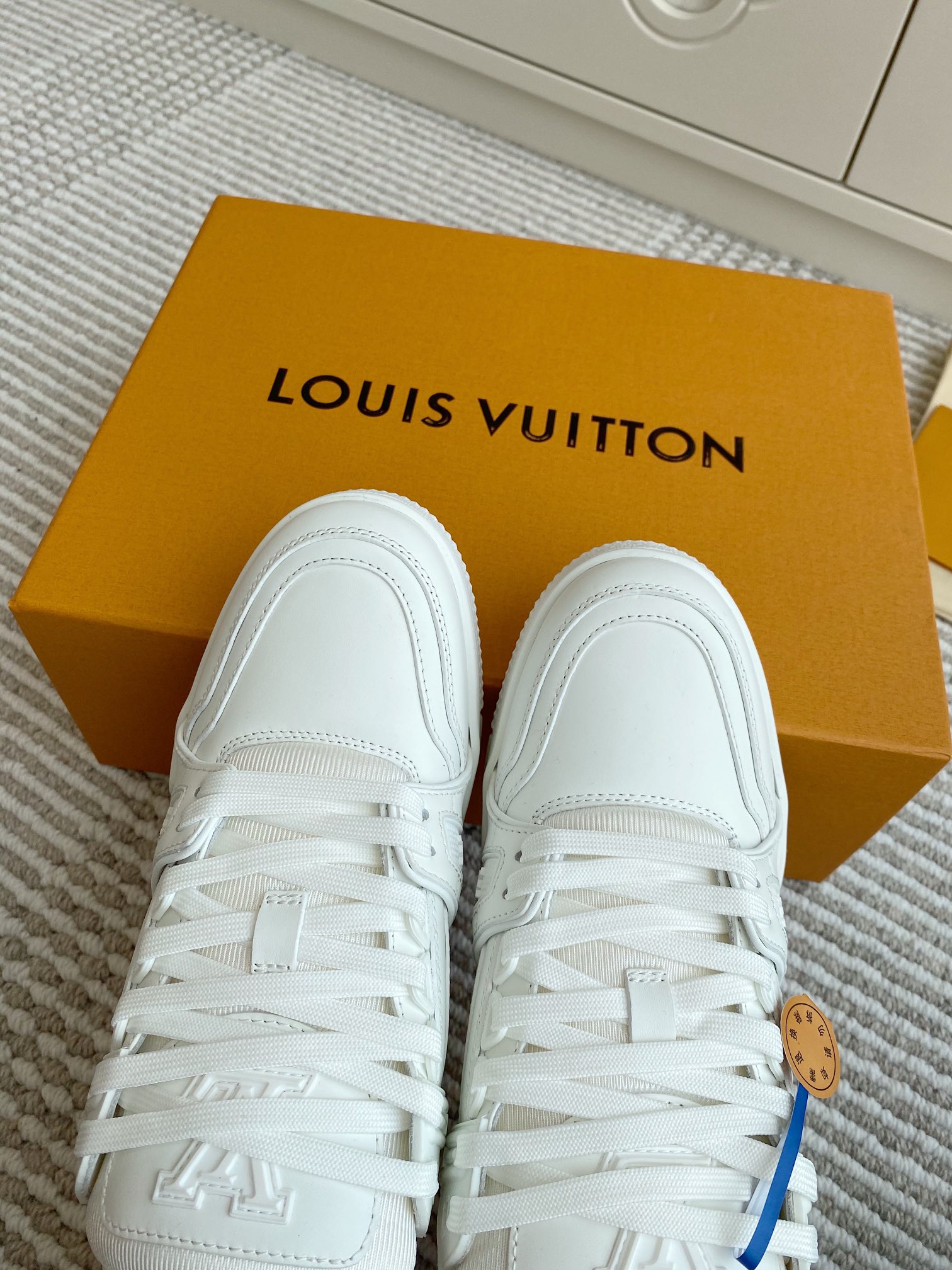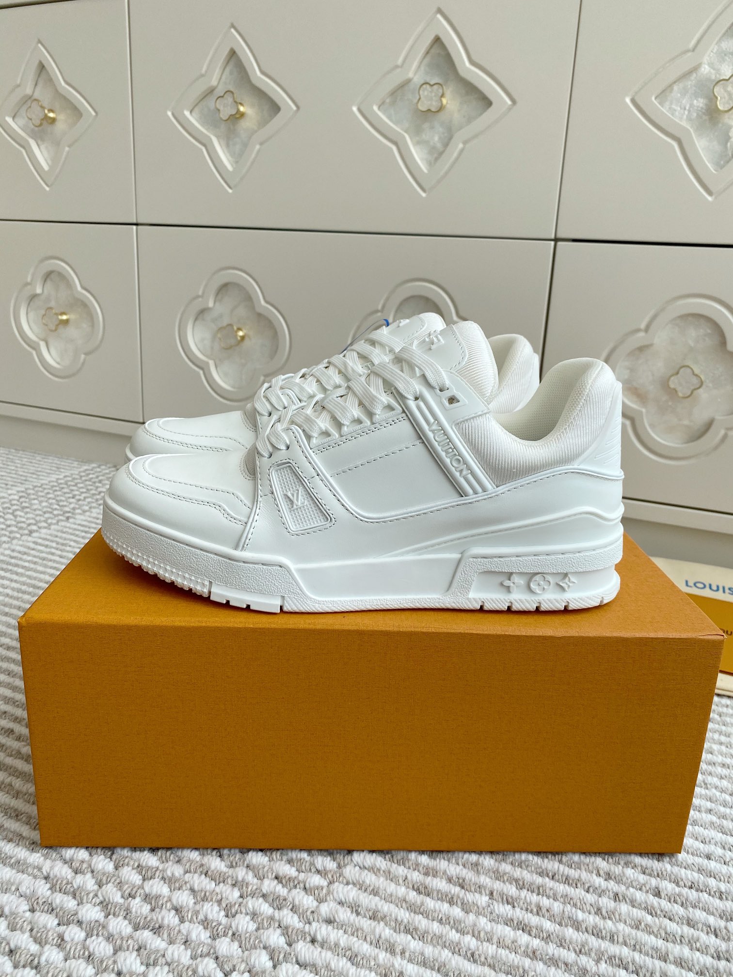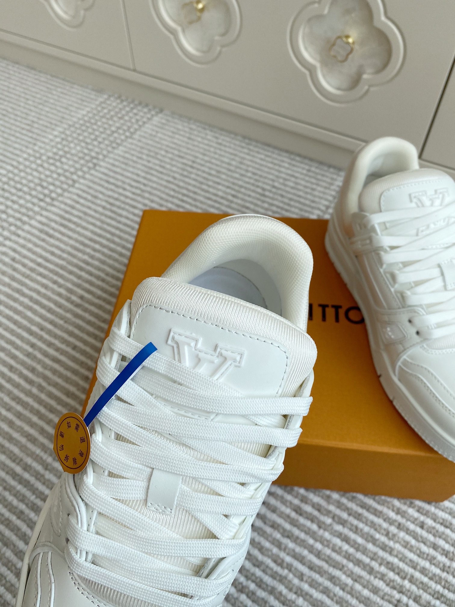 这款鞋子是AAAAA 1:1 质量 (非常棒). 使用了和原版一模一样的材料. 商标部分也保持了和路易威登/Louis Vuitton一样. 图片拍摄是实物鞋子拍摄, 您所收到的实物保证和我们图片一模一样.