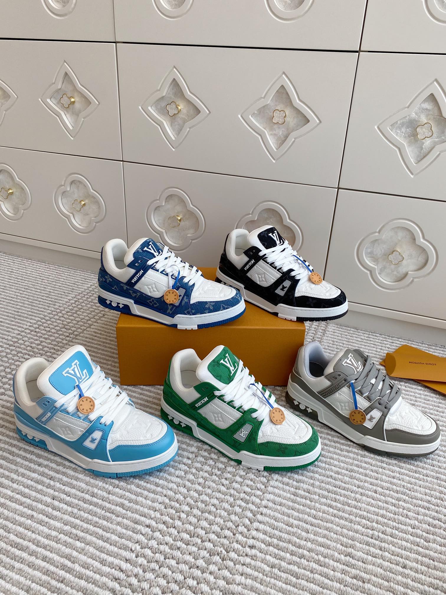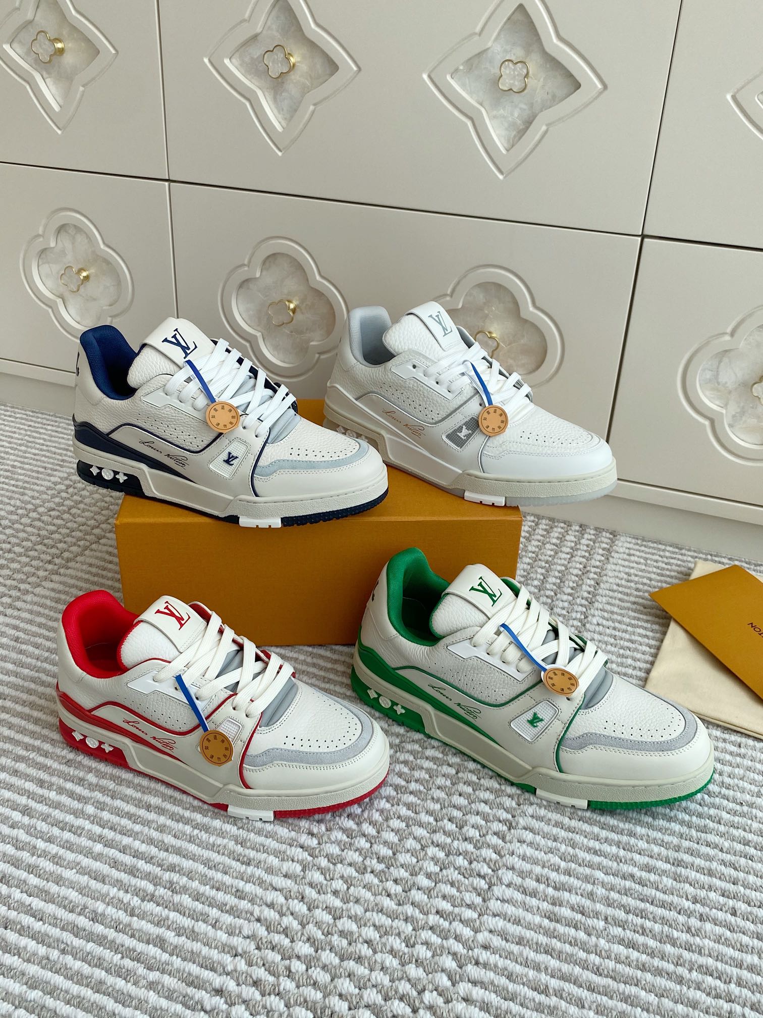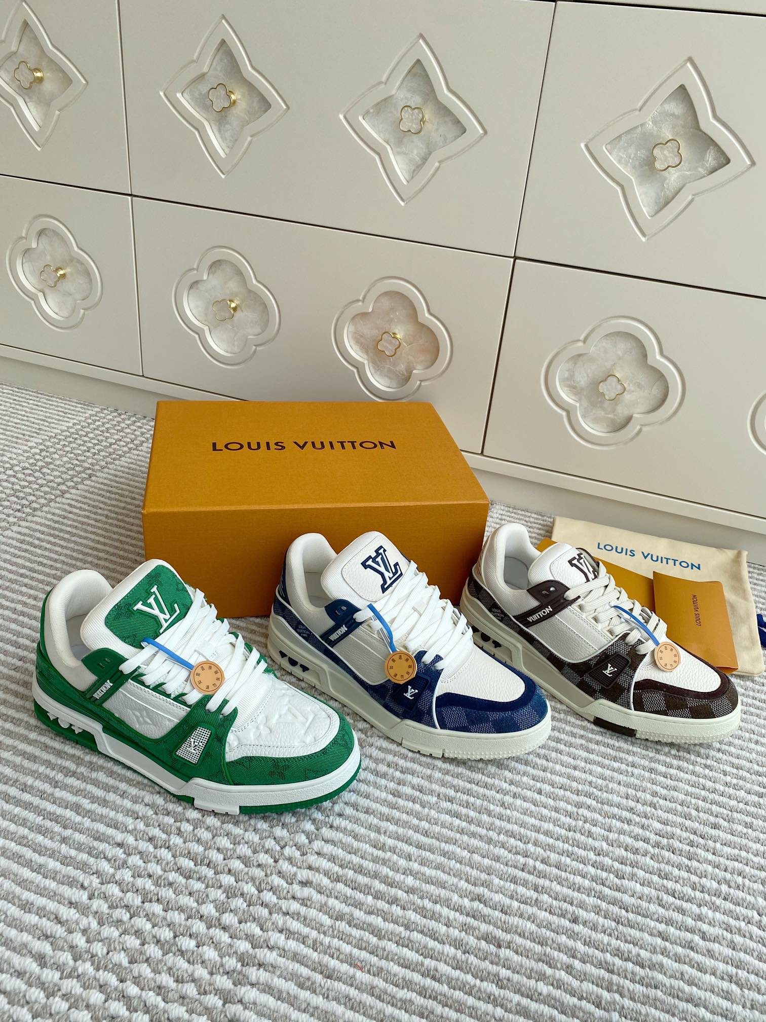 这款鞋子是AAAAA 1:1 质量 (非常棒). 使用了和原版一模一样的材料. 商标部分也保持了和路易威登/Louis Vuitton一样. 图片拍摄是实物鞋子拍摄, 您所收到的实物保证和我们图片一模一样.
