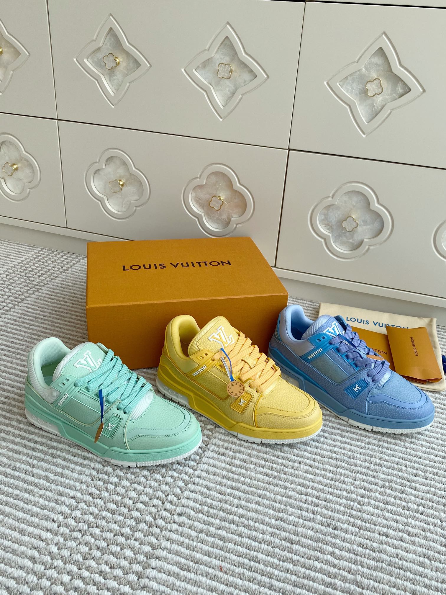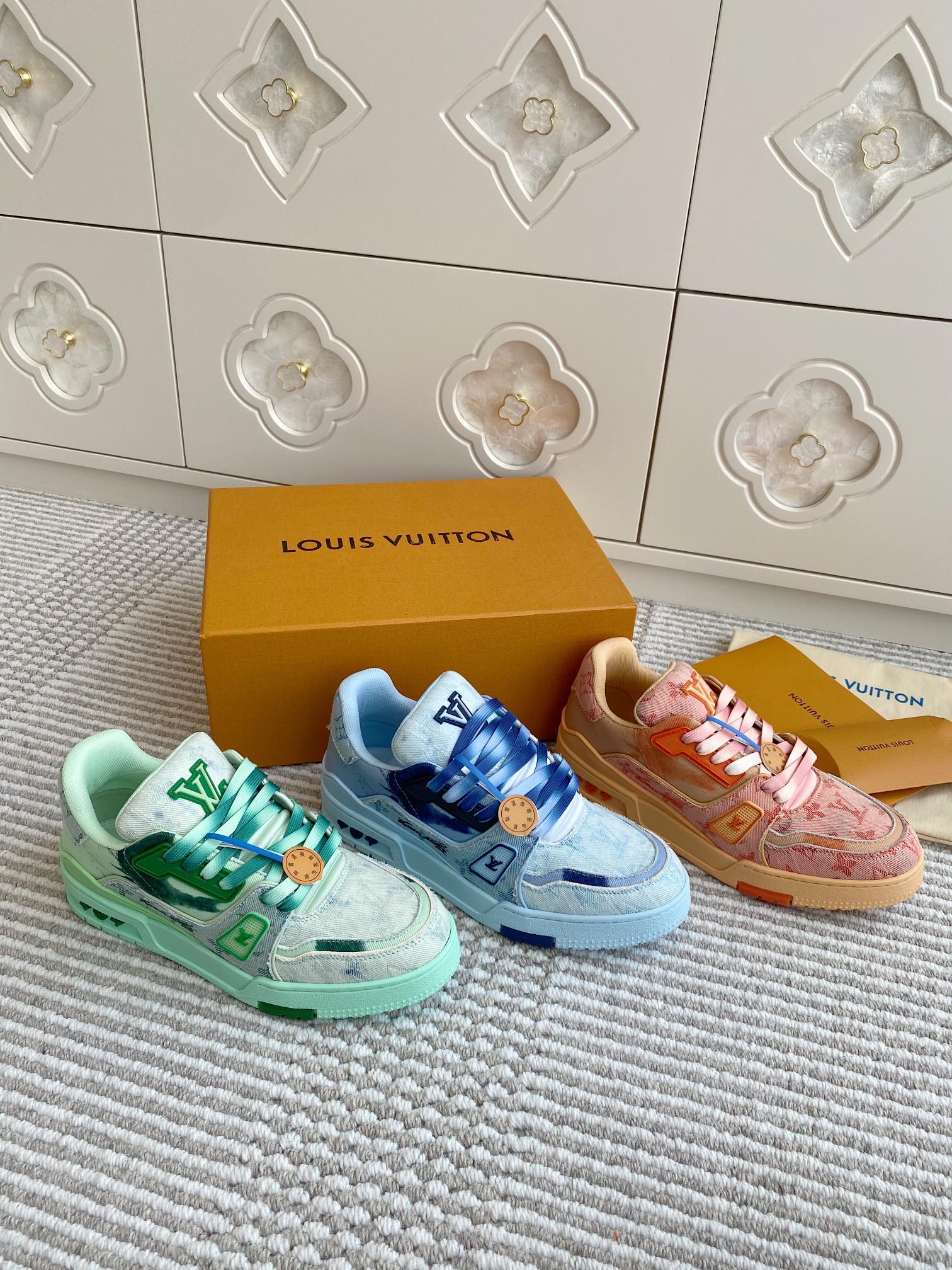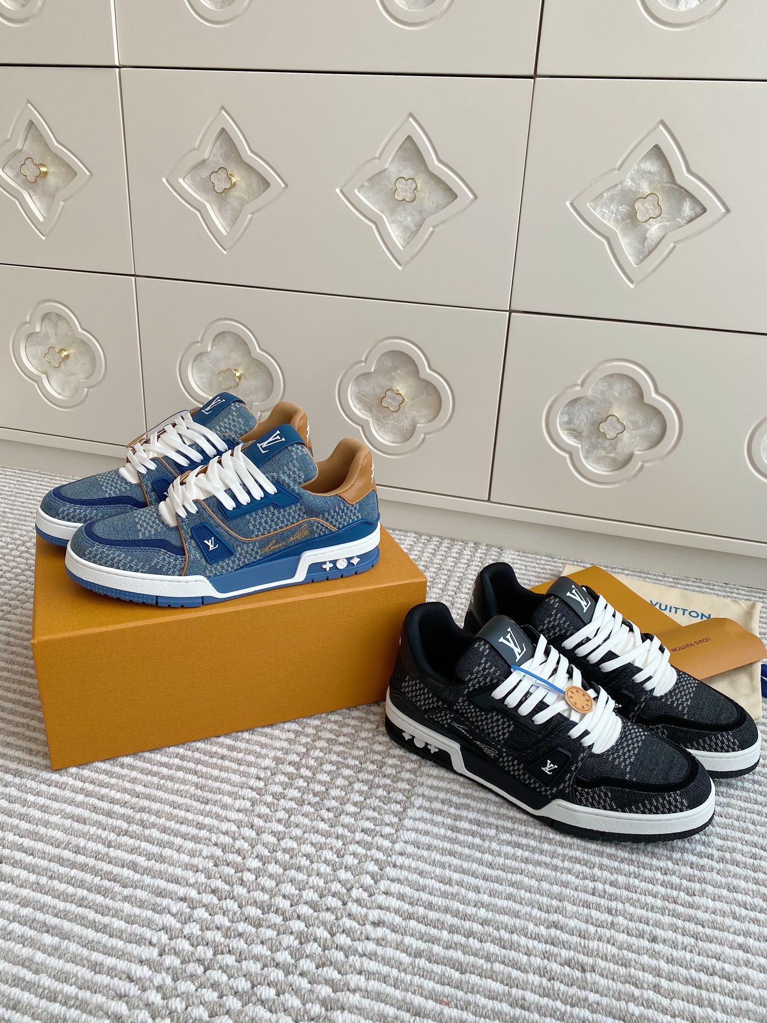 这款鞋子是AAAAA 1:1 质量 (非常棒). 使用了和原版一模一样的材料. 商标部分也保持了和路易威登/Louis Vuitton一样. 图片拍摄是实物鞋子拍摄, 您所收到的实物保证和我们图片一模一样.