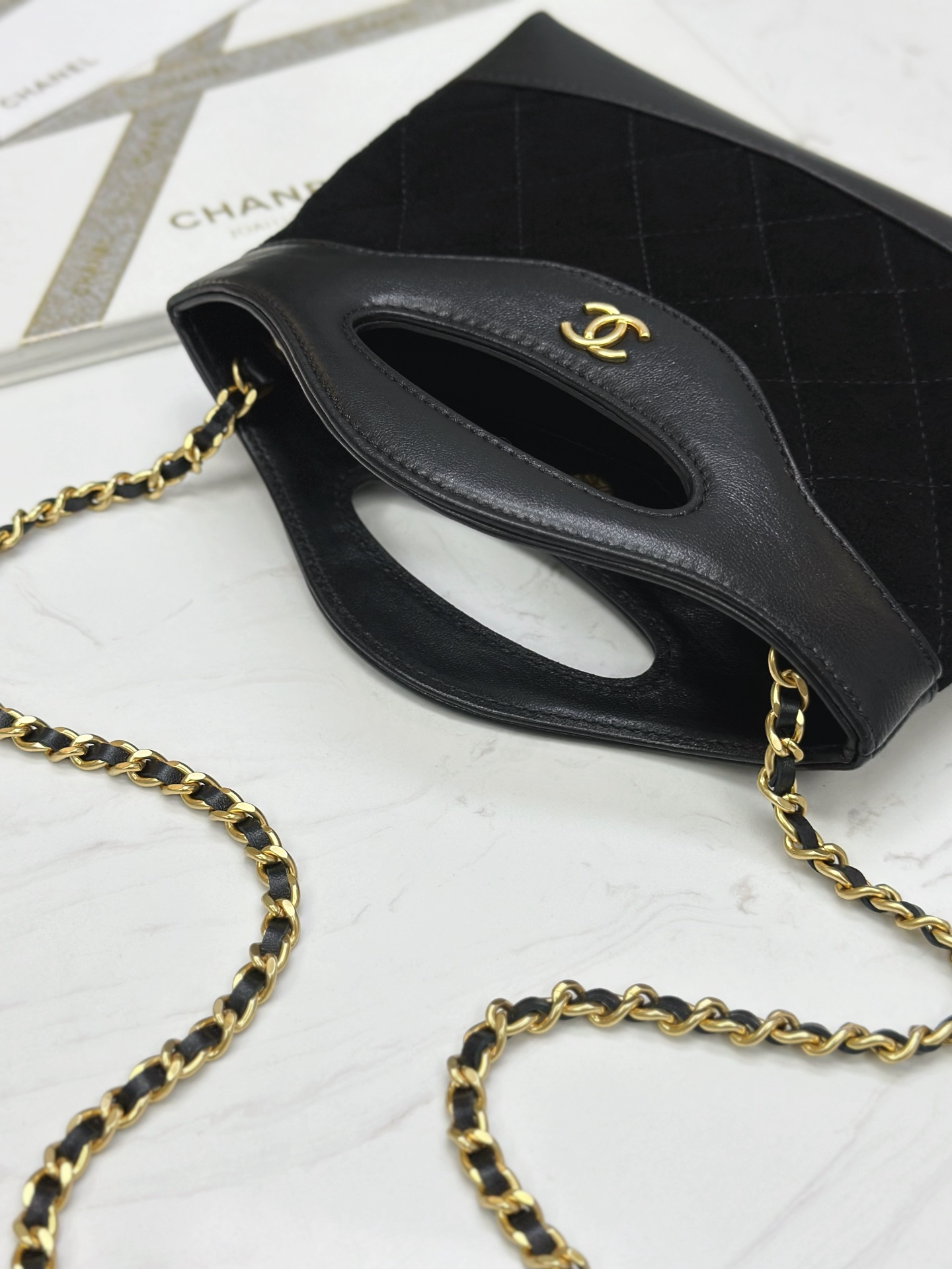这款包包是AAAAA 1:1 质量 (非常棒). 使用了和原版一模一样的材料. 商标部分也保持了和香奈儿/Chanel一样. 图片拍摄是实物包包拍摄, 您所收到的实物保证和我们图片一模一样.