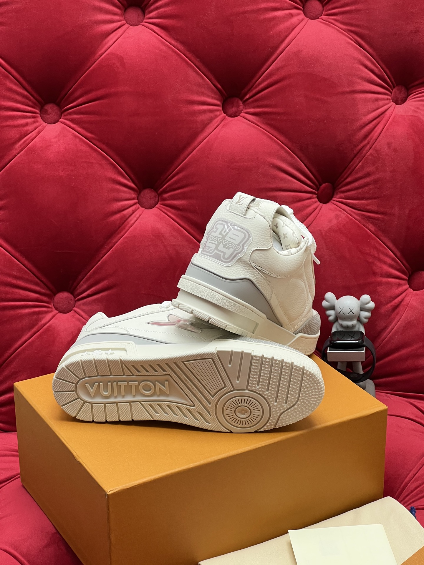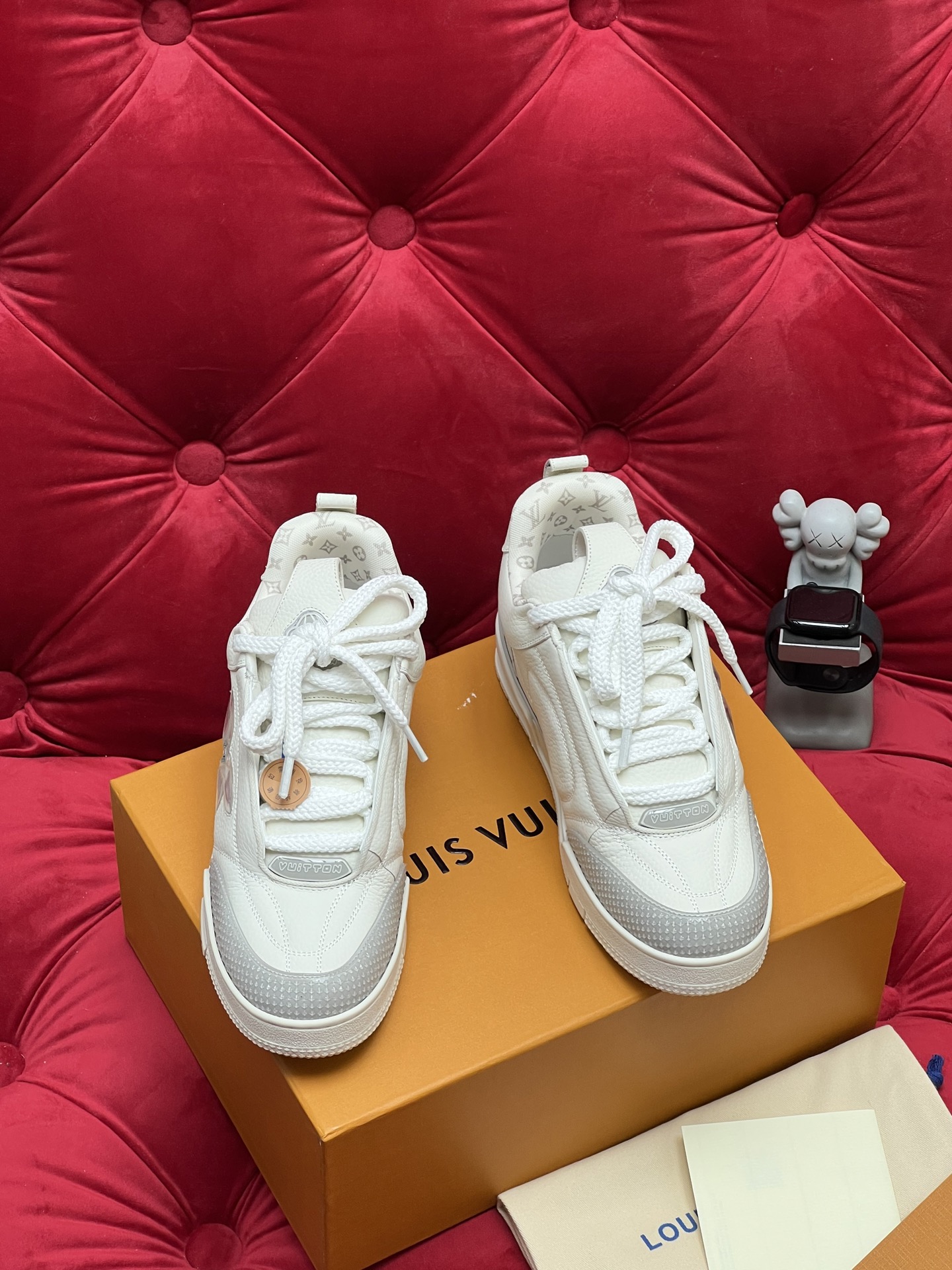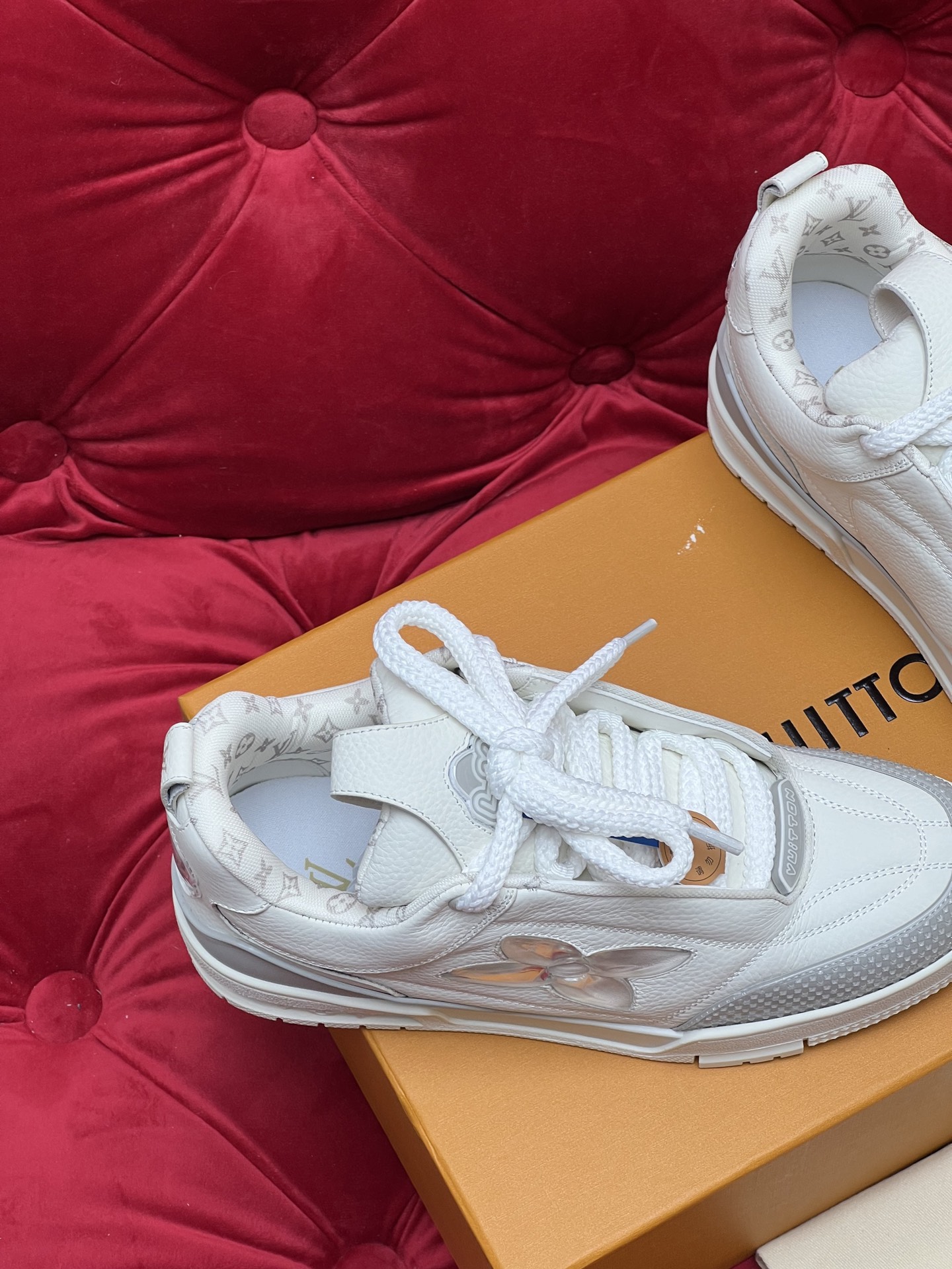 这款鞋子是AAAAA 1:1 质量 (非常棒). 使用了和原版一模一样的材料. 商标部分也保持了和路易威登/Louis Vuitton一样. 图片拍摄是实物鞋子拍摄, 您所收到的实物保证和我们图片一模一样.