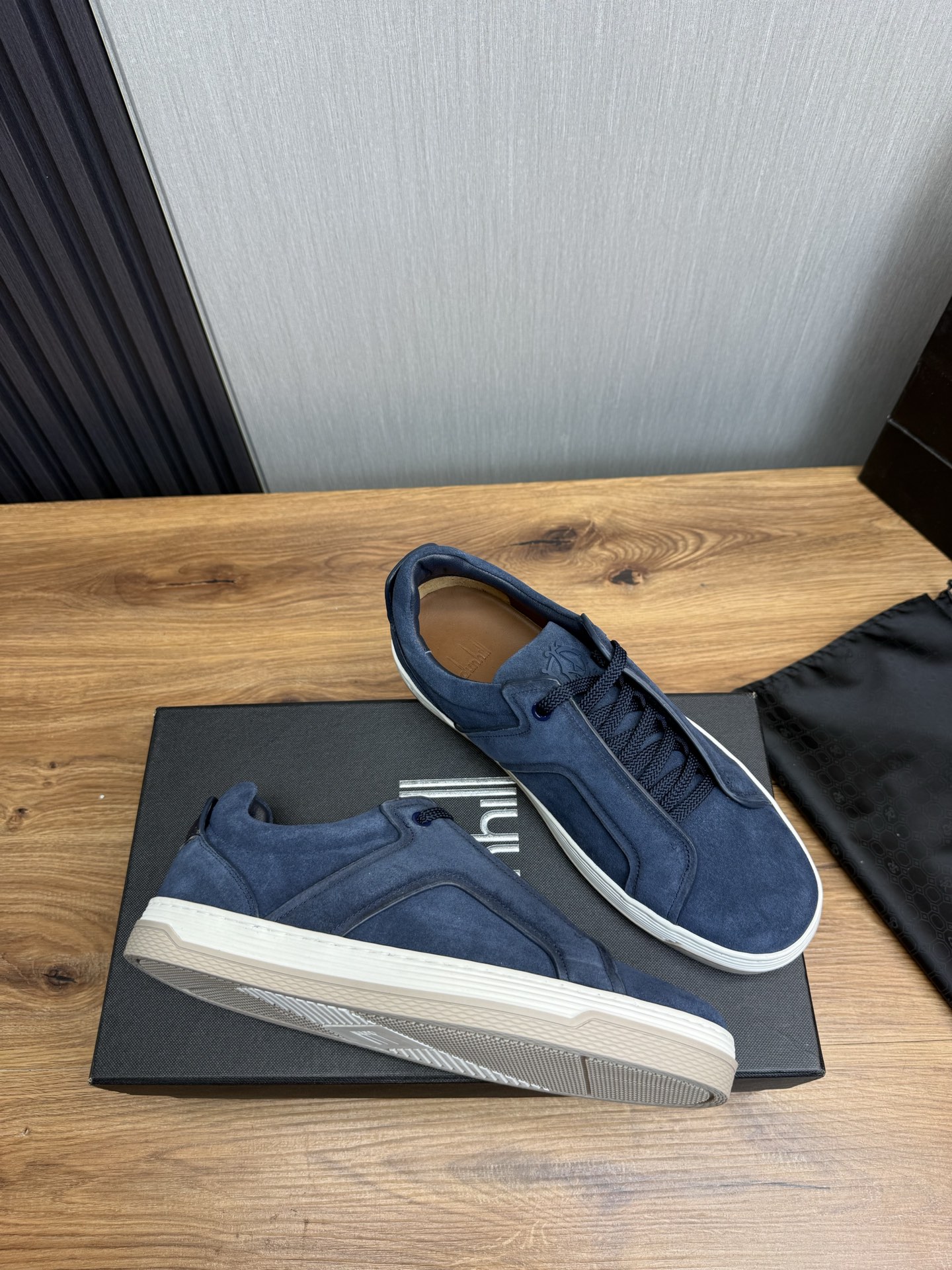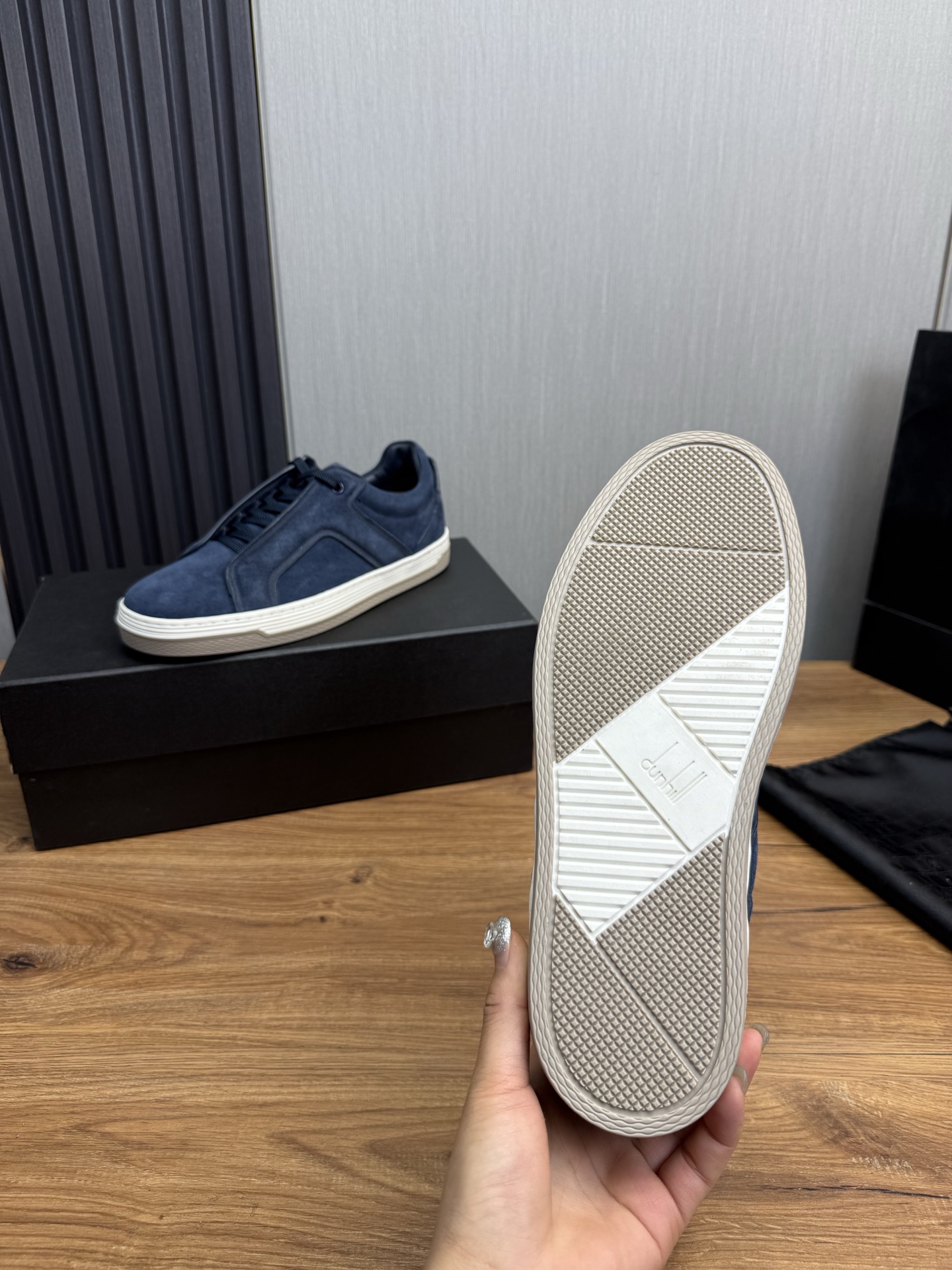 这款鞋子是AAAAA 1:1 质量 (非常棒). 使用了和原版一模一样的材料. 商标部分也保持了和dunhill一样. 图片拍摄是实物鞋子拍摄, 您所收到的实物保证和我们图片一模一样.