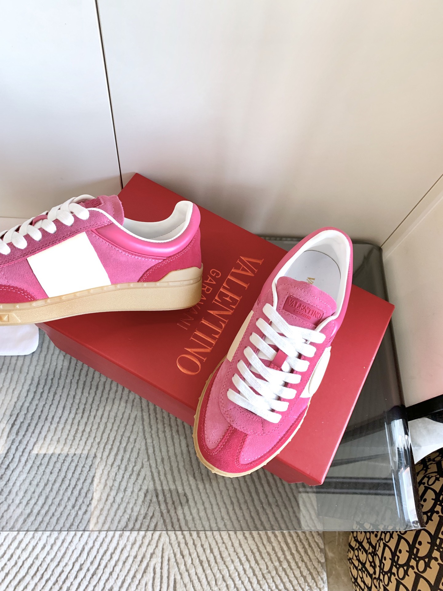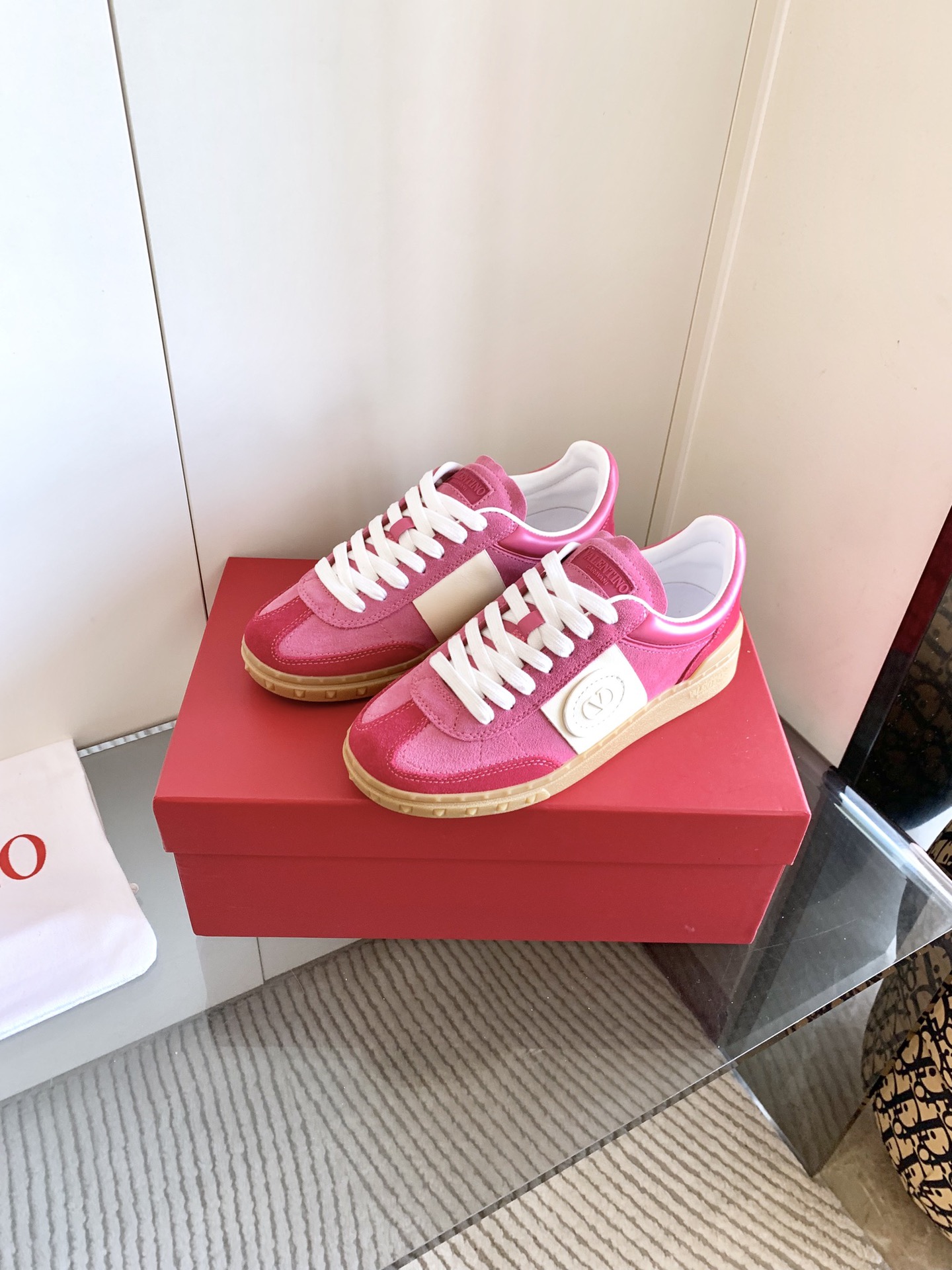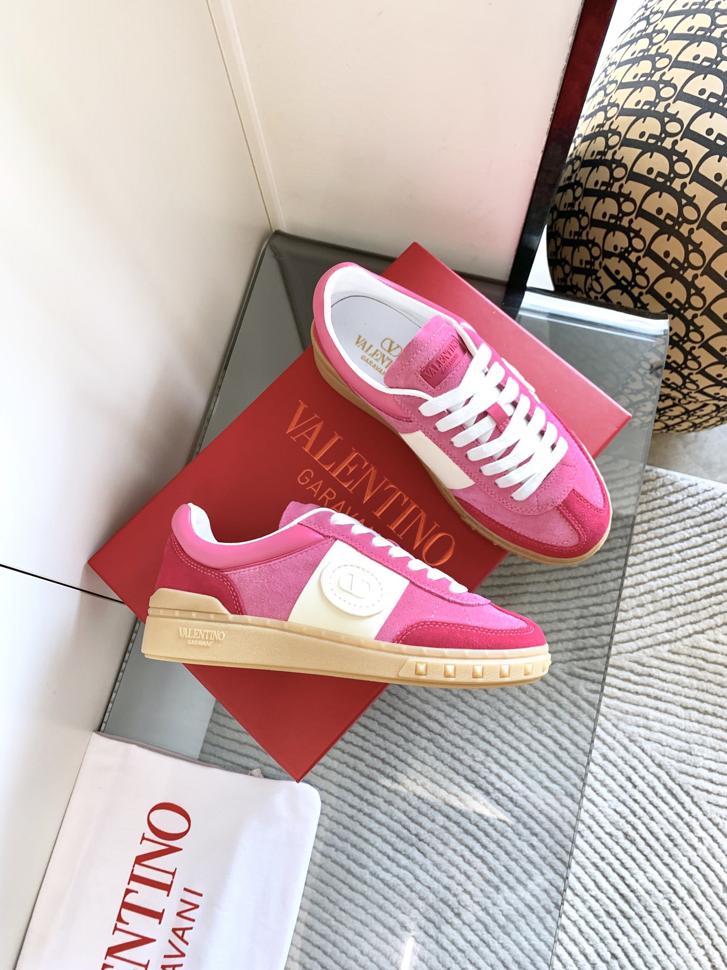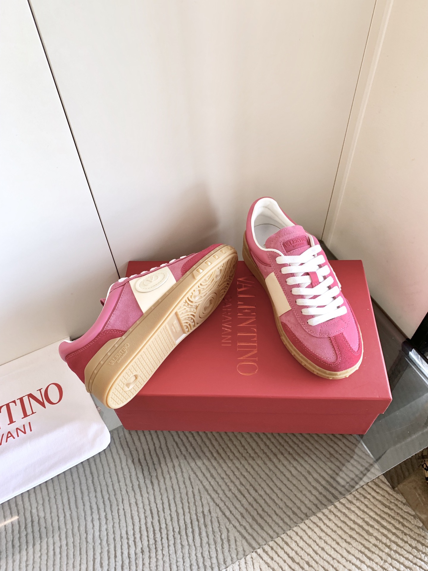 这款鞋子是AAAAA 1:1 质量 (非常棒). 使用了和原版一模一样的材料. 商标部分也保持了和华伦天奴/Valentino一样. 图片拍摄是实物鞋子拍摄, 您所收到的实物保证和我们图片一模一样.