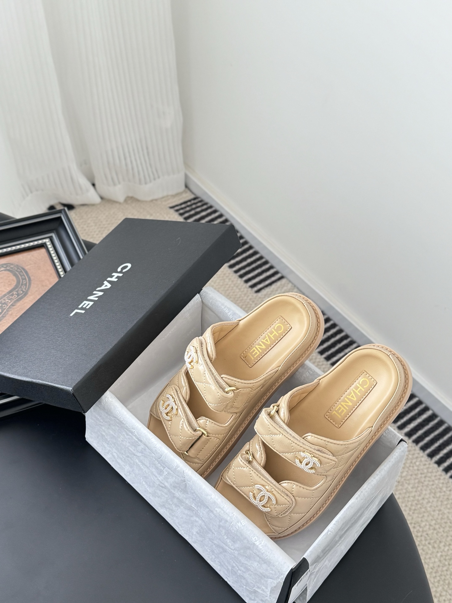 这款鞋子是AAAAA 1:1 质量 (非常棒). 使用了和原版一模一样的材料. 商标部分也保持了和香奈儿/Chanel一样. 图片拍摄是实物鞋子拍摄, 您所收到的实物保证和我们图片一模一样.