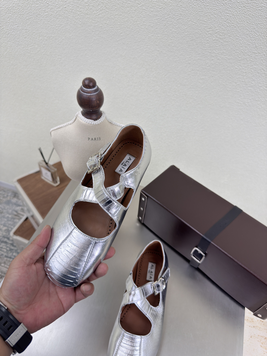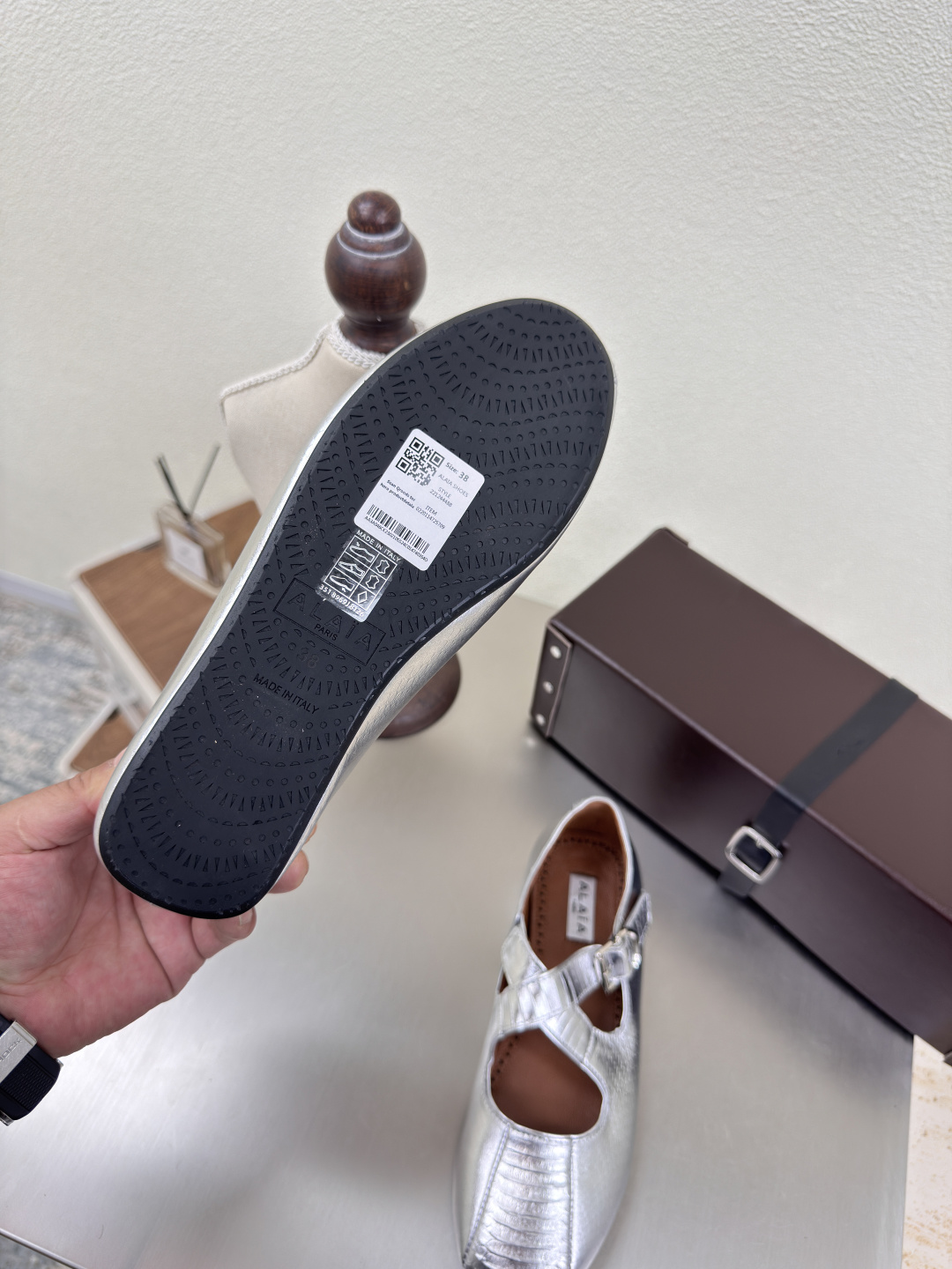 这款鞋子是AAAAA 1:1 质量 (非常棒). 使用了和原版一模一样的材料. 商标部分也保持了和Alaia一样. 图片拍摄是实物鞋子拍摄, 您所收到的实物保证和我们图片一模一样.