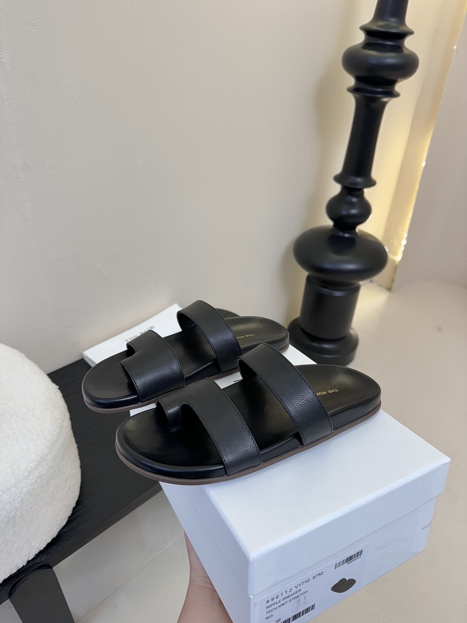 这款鞋子是AAAAA 1:1 质量 (非常棒). 使用了和原版一模一样的材料. 商标部分也保持了和The Row一样. 图片拍摄是实物鞋子拍摄, 您所收到的实物保证和我们图片一模一样.