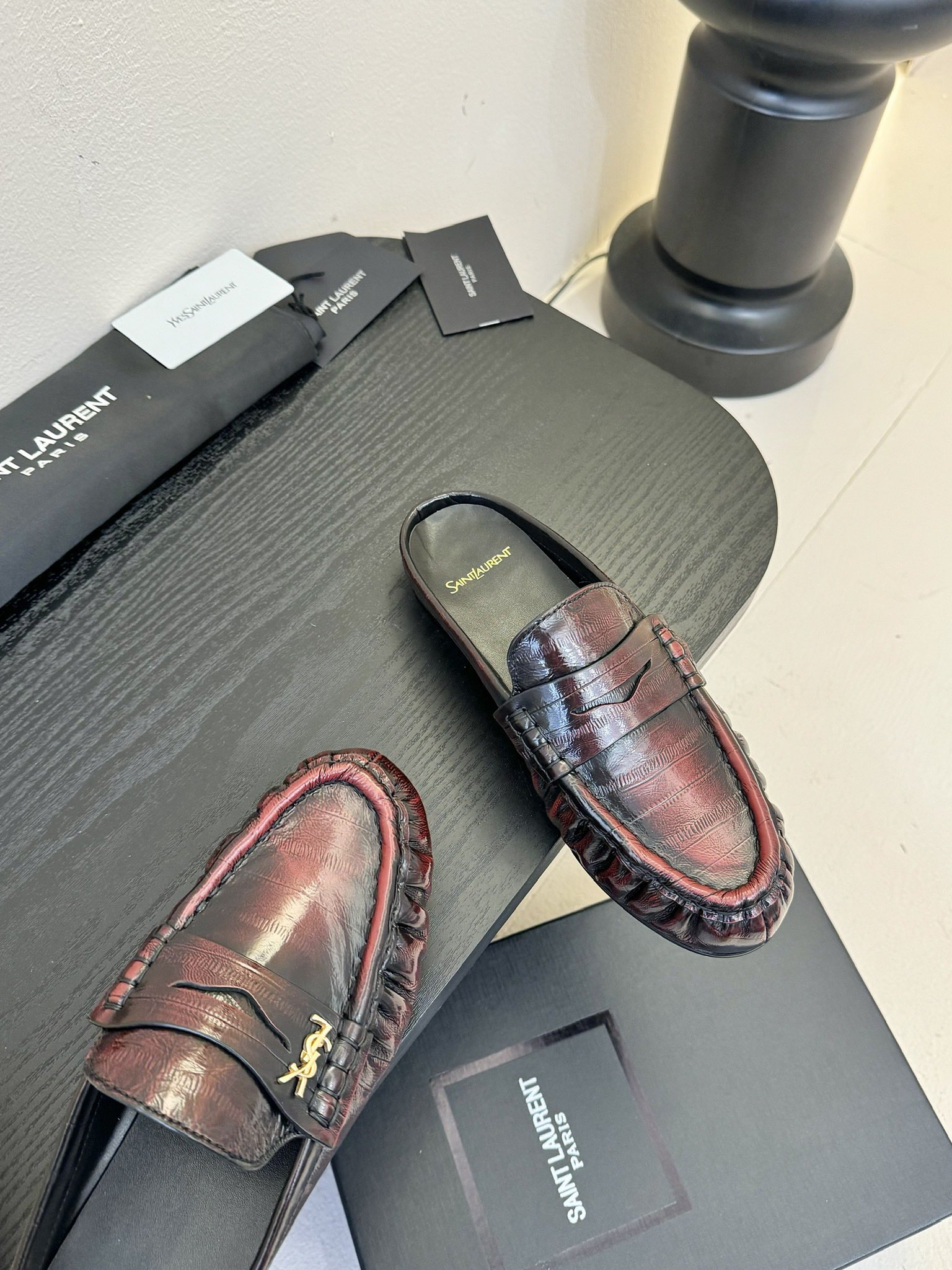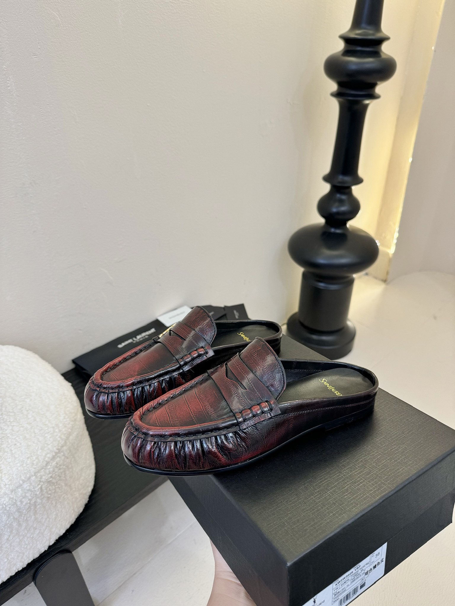 这款鞋子是AAAAA 1:1 质量 (非常棒). 使用了和原版一模一样的材料. 商标部分也保持了和圣罗兰/Saint Laurent一样. 图片拍摄是实物鞋子拍摄, 您所收到的实物保证和我们图片一模一样.
