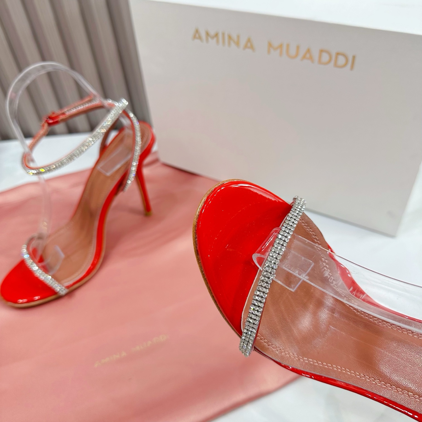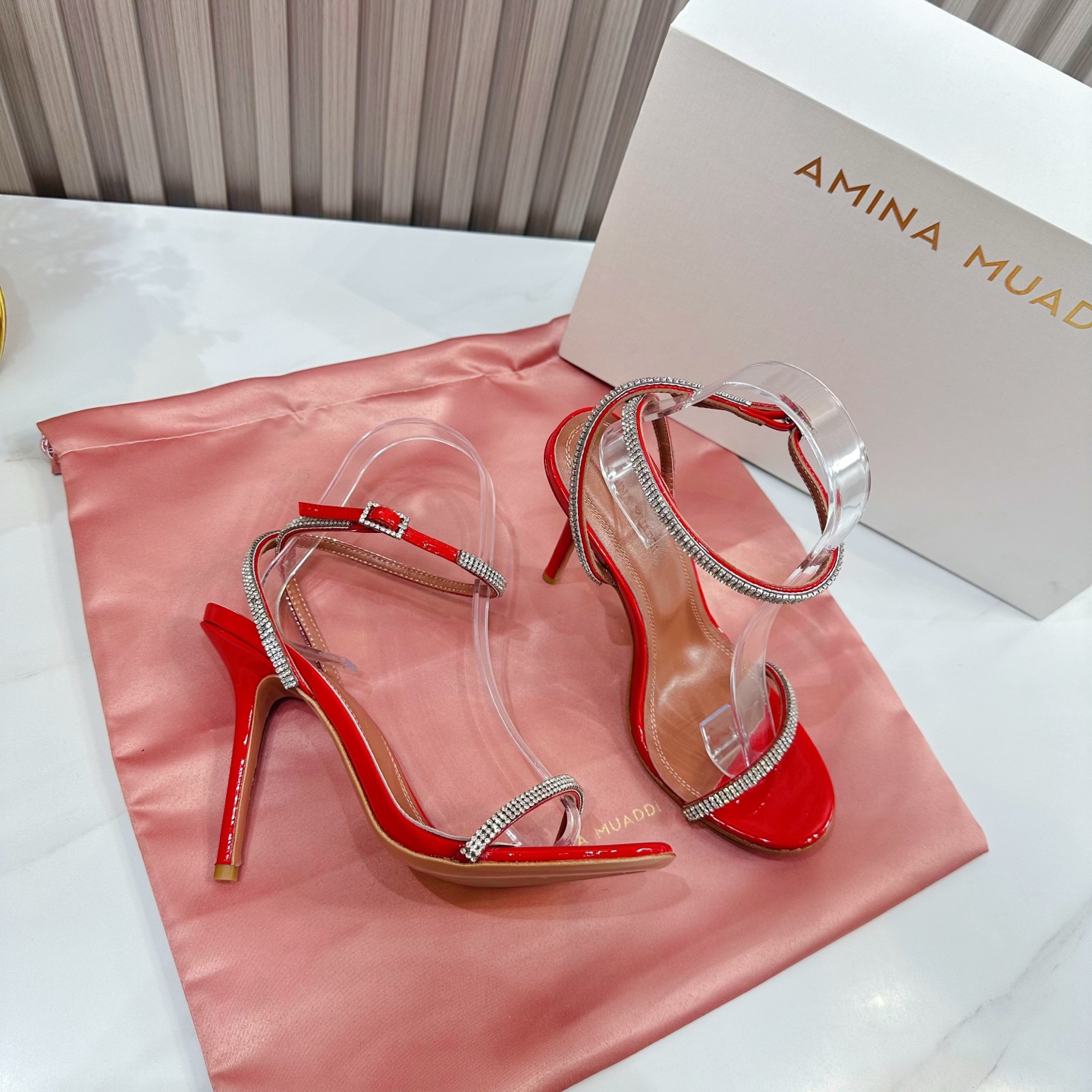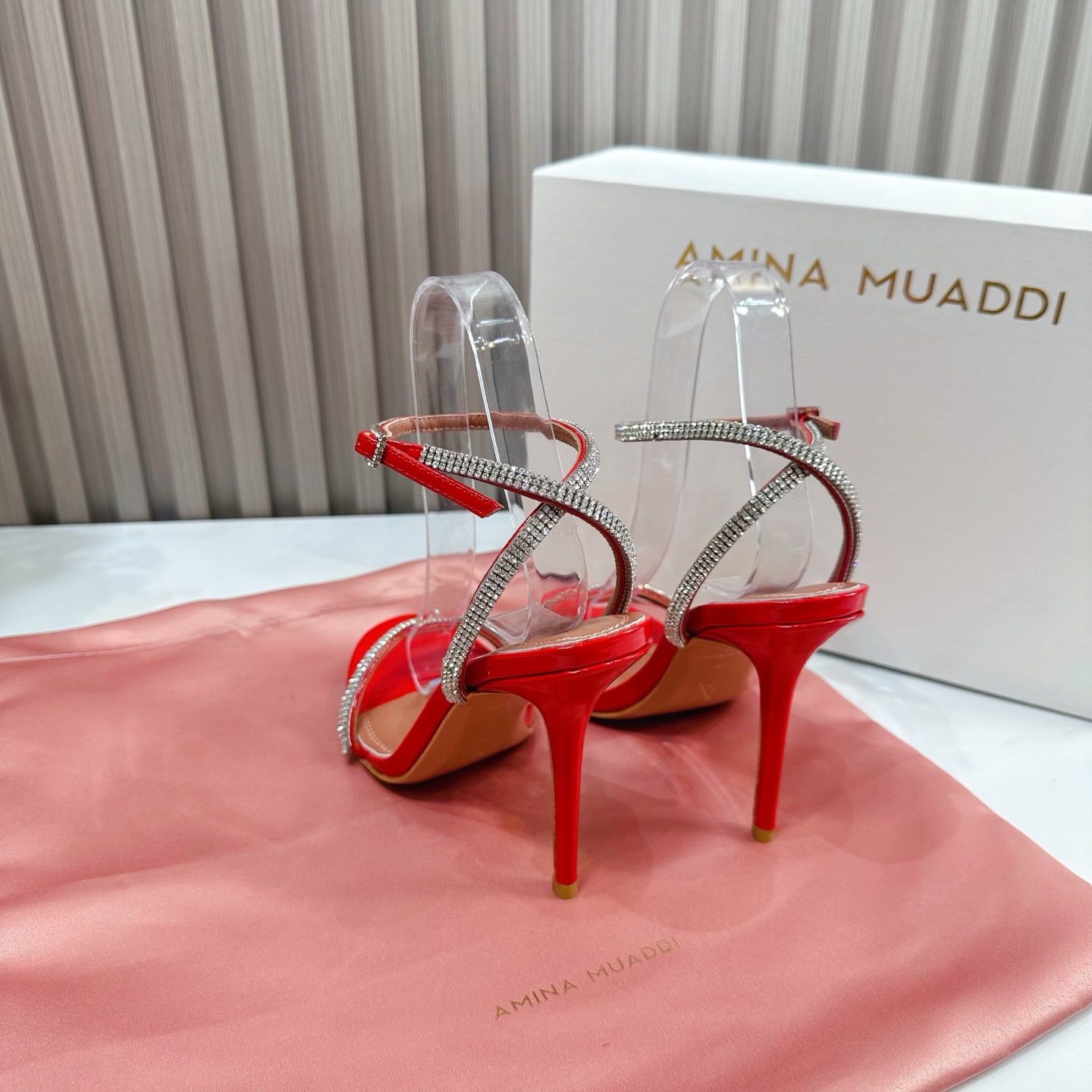 这款鞋子是AAAAA 1:1 质量 (非常棒). 使用了和原版一模一样的材料. 商标部分也保持了和Amina Muaddi一样. 图片拍摄是实物鞋子拍摄, 您所收到的实物保证和我们图片一模一样.