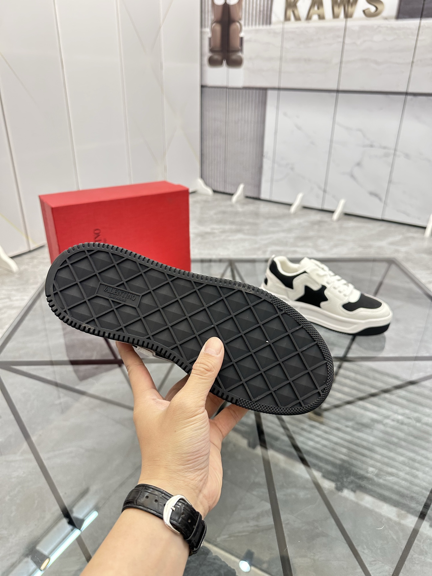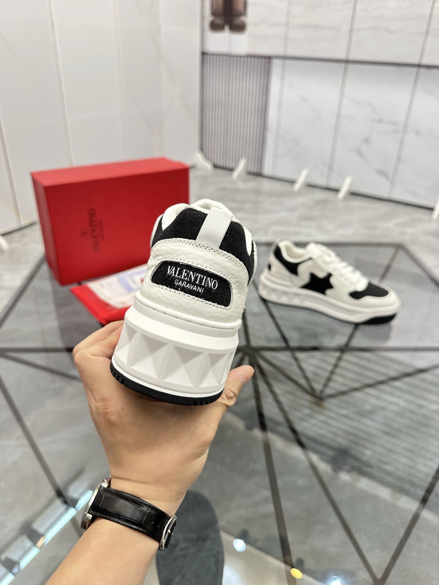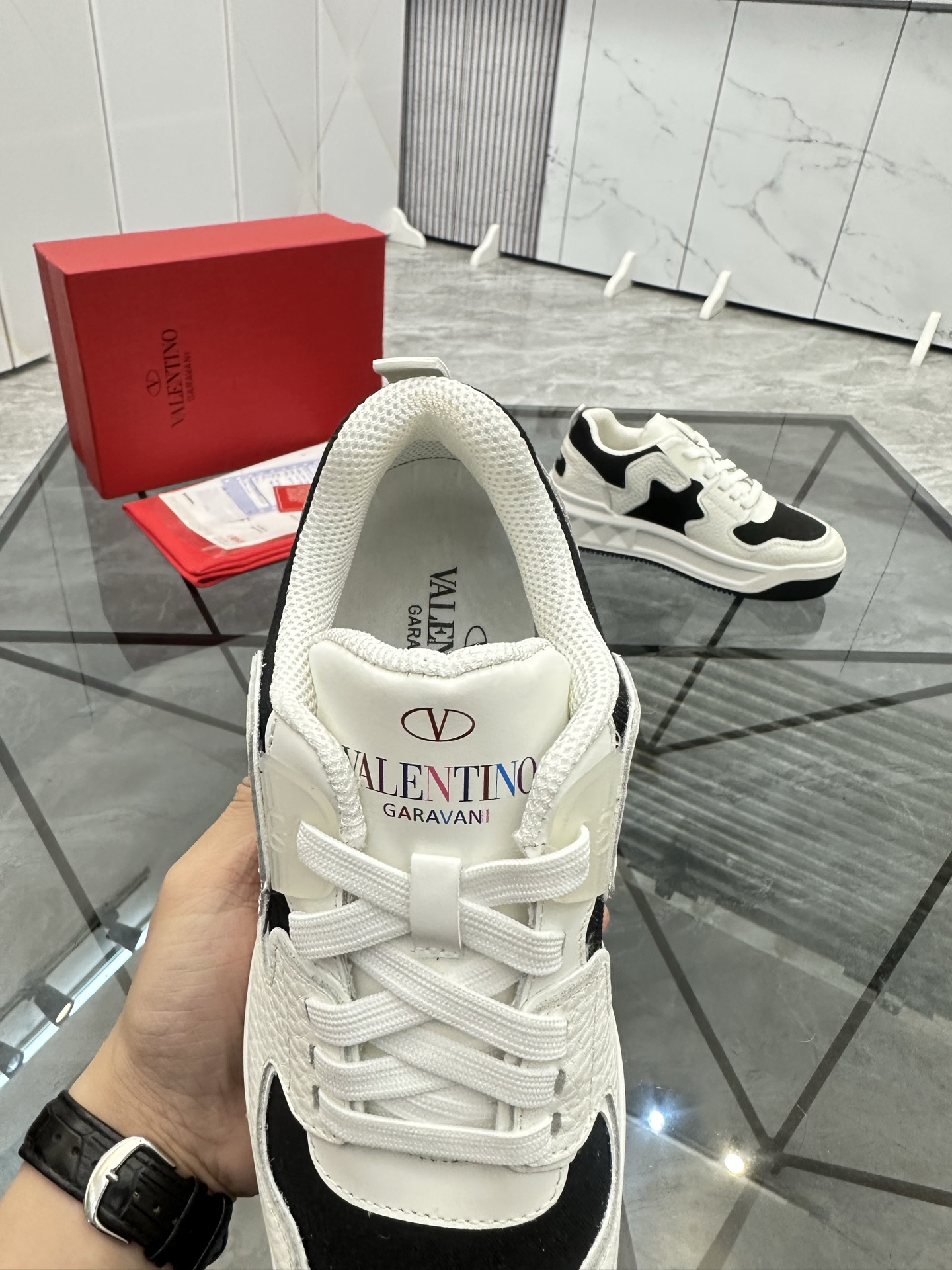 这款鞋子是AAAAA 1:1 质量 (非常棒). 使用了和原版一模一样的材料. 商标部分也保持了和华伦天奴/Valentino一样. 图片拍摄是实物鞋子拍摄, 您所收到的实物保证和我们图片一模一样.
