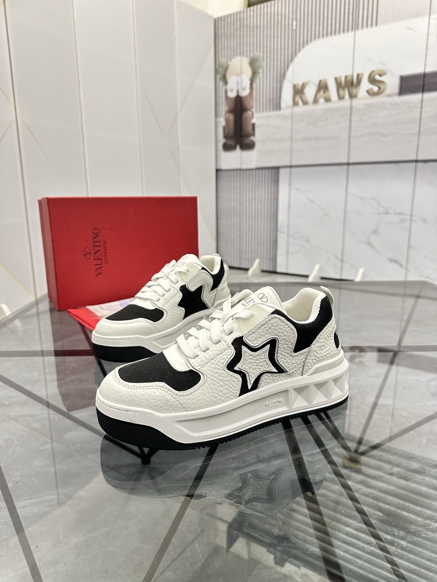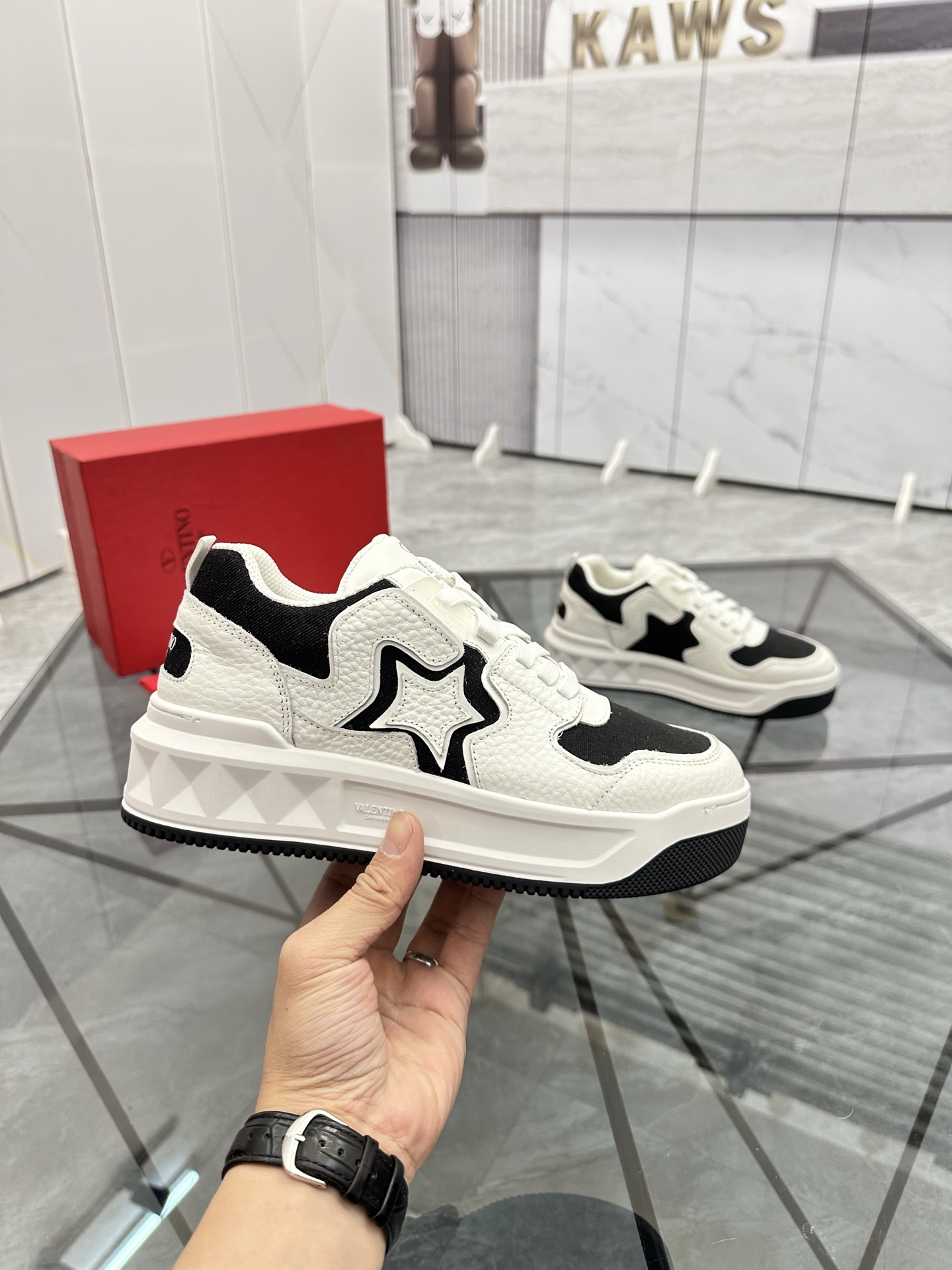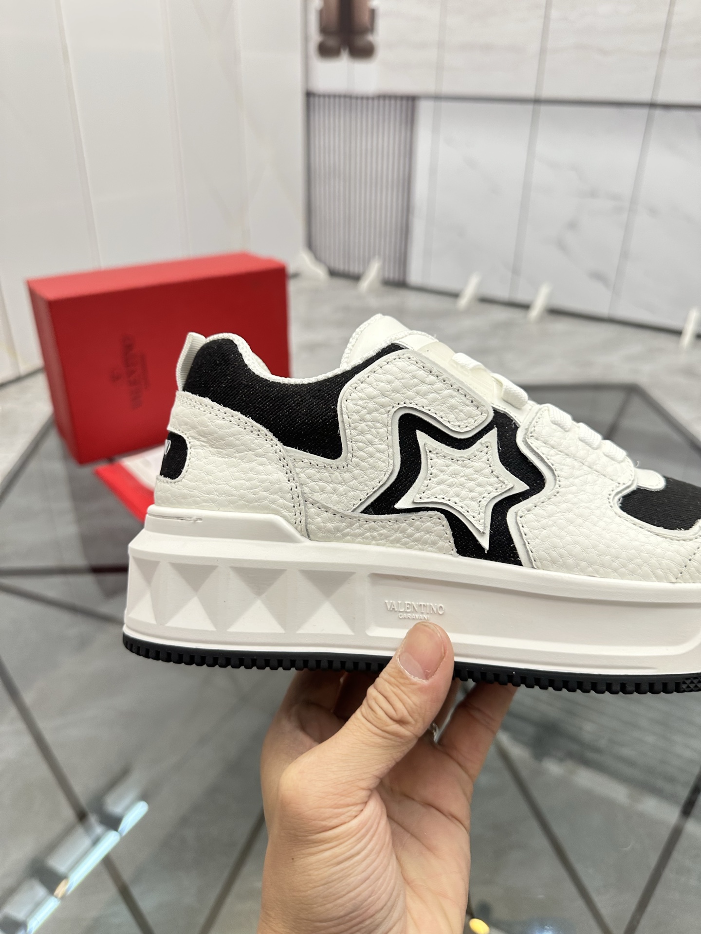这款鞋子是AAAAA 1:1 质量 (非常棒). 使用了和原版一模一样的材料. 商标部分也保持了和华伦天奴/Valentino一样. 图片拍摄是实物鞋子拍摄, 您所收到的实物保证和我们图片一模一样.