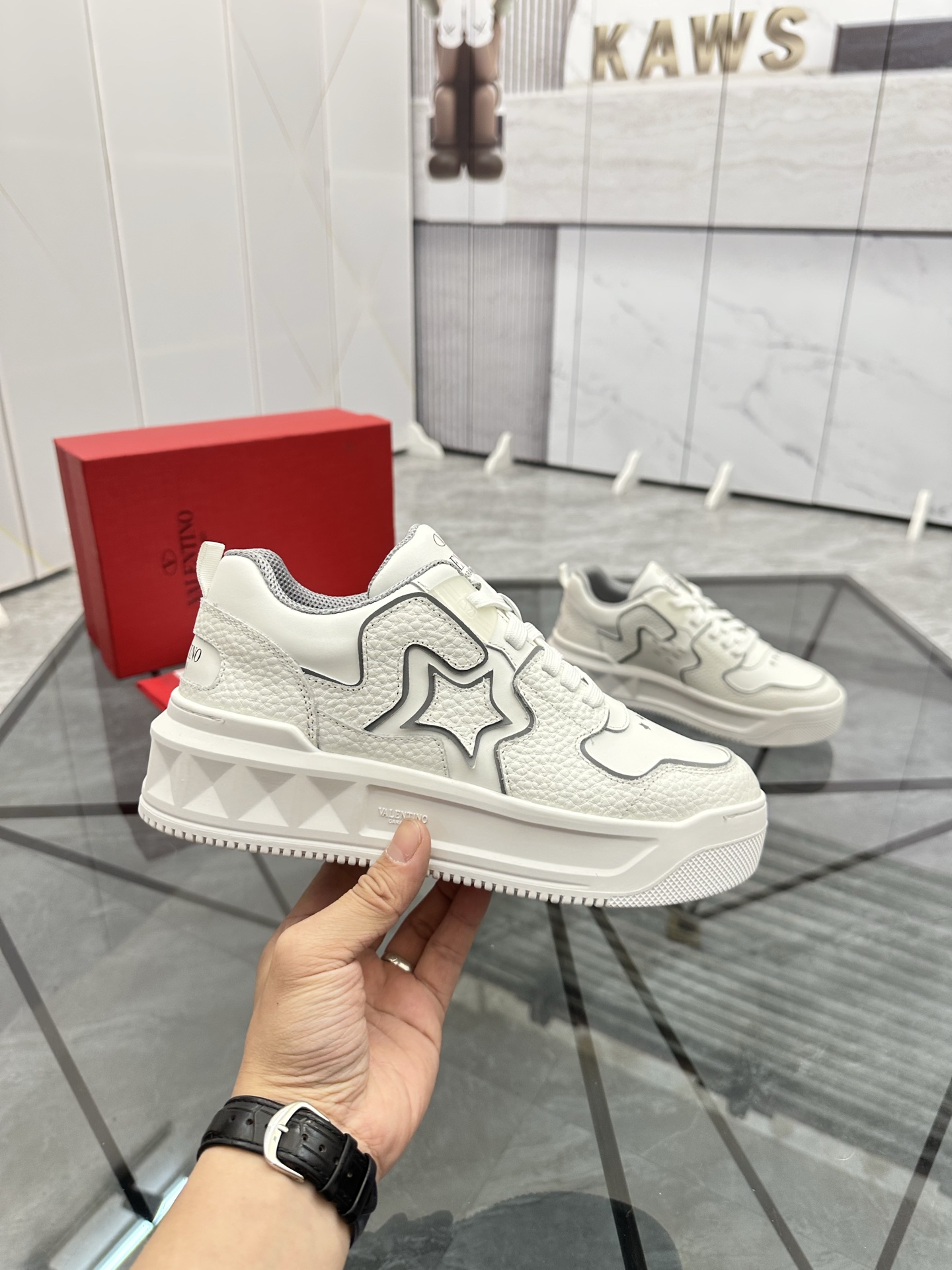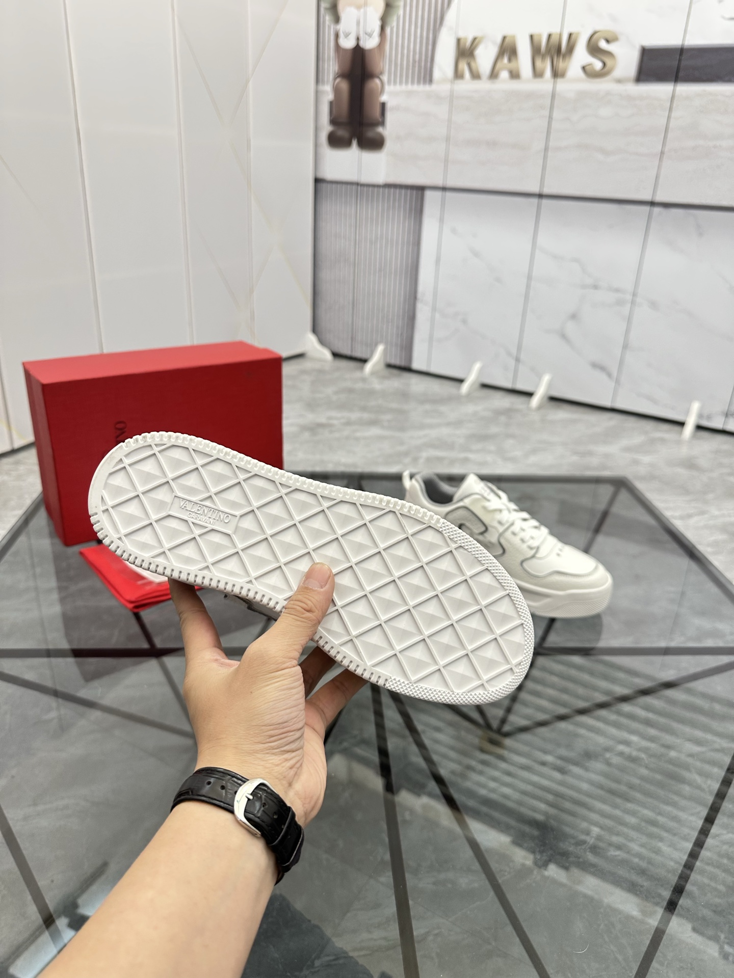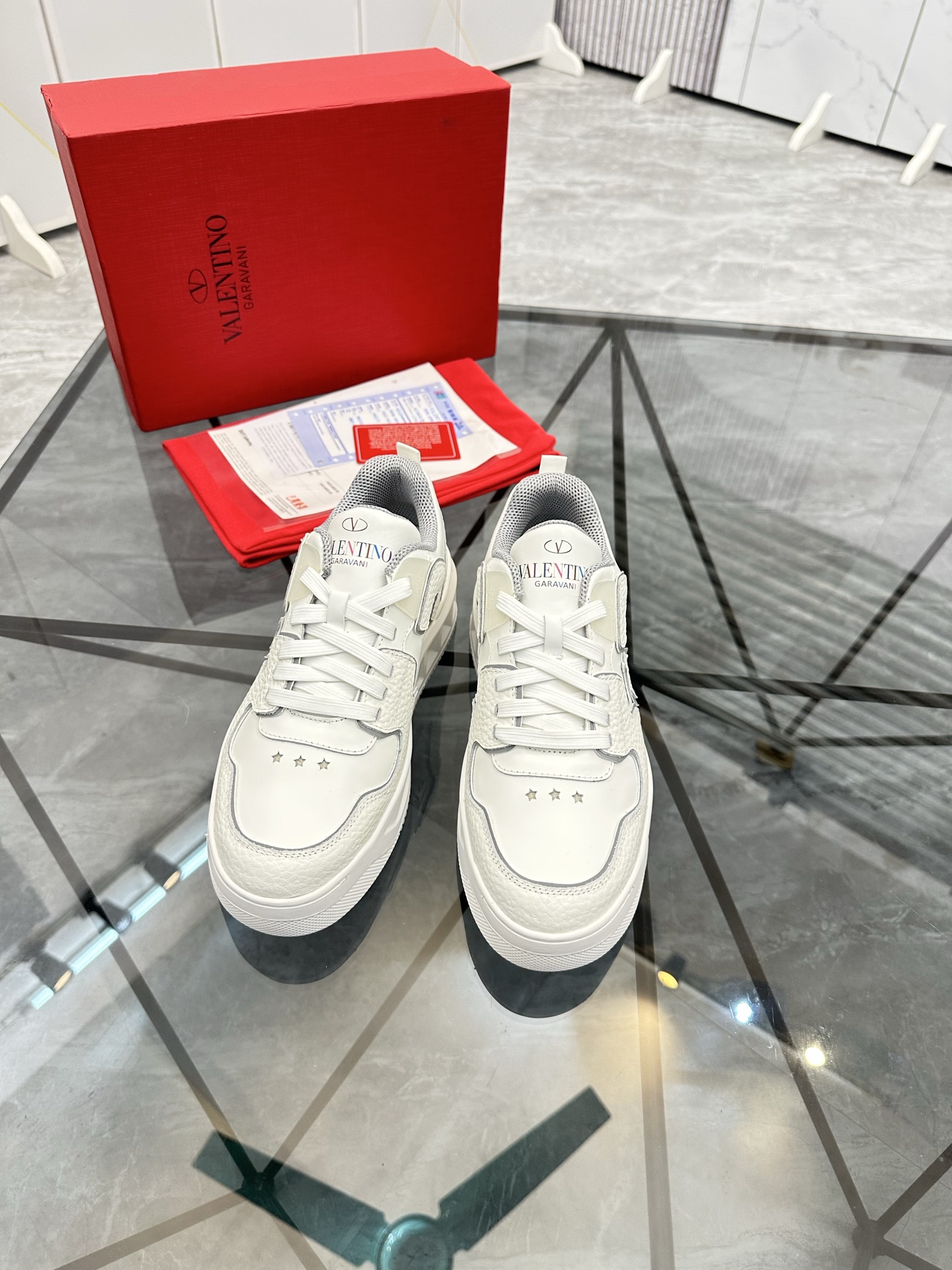 这款鞋子是AAAAA 1:1 质量 (非常棒). 使用了和原版一模一样的材料. 商标部分也保持了和华伦天奴/Valentino一样. 图片拍摄是实物鞋子拍摄, 您所收到的实物保证和我们图片一模一样.