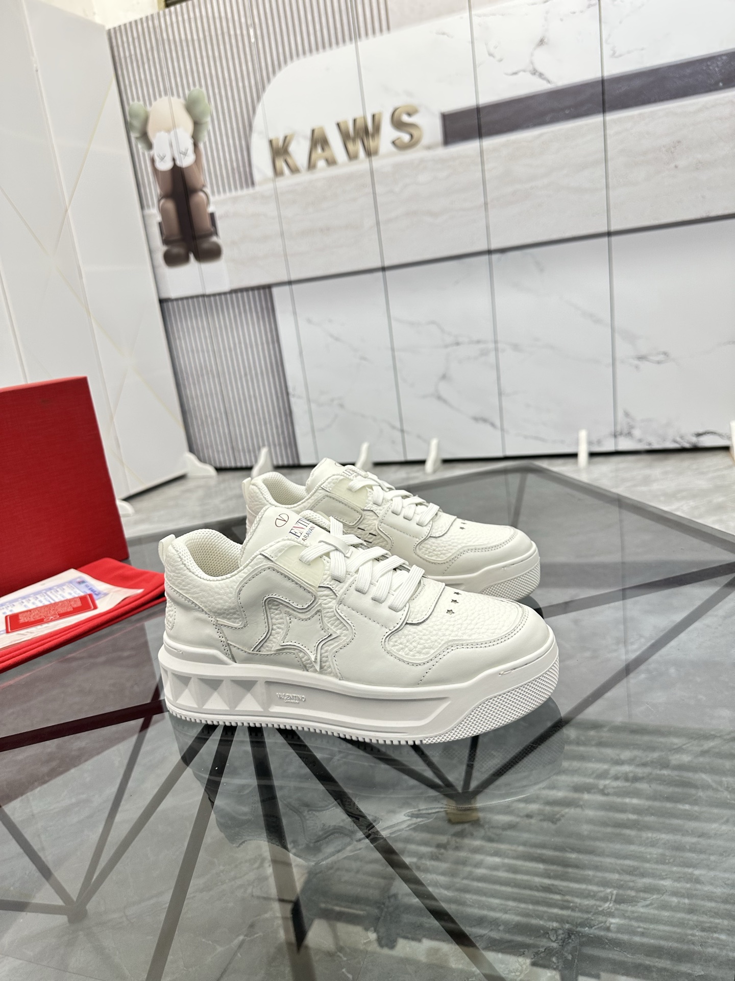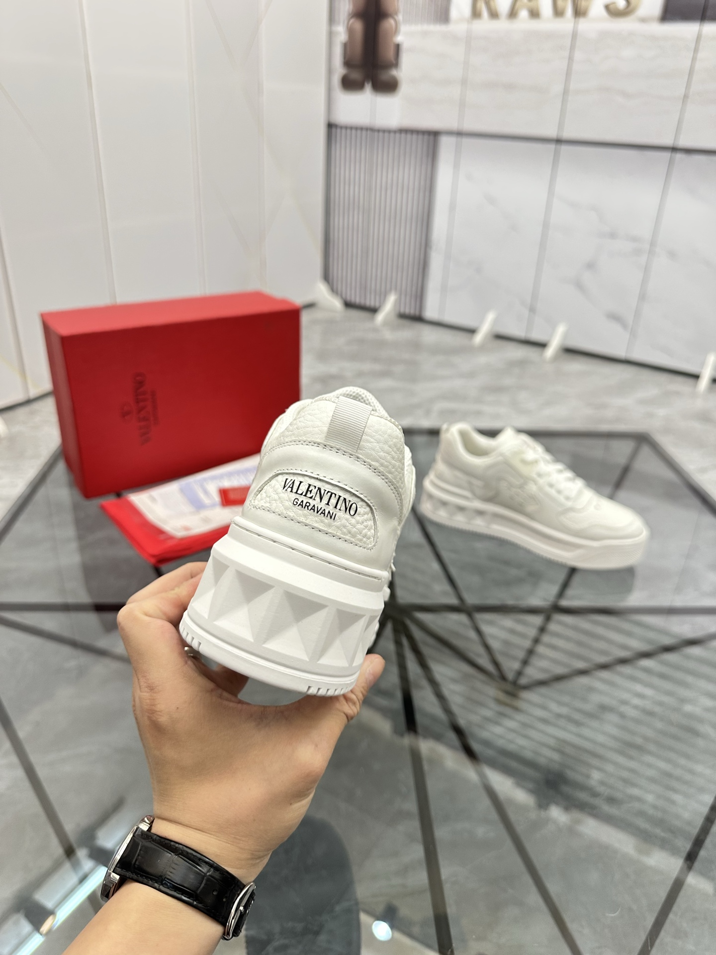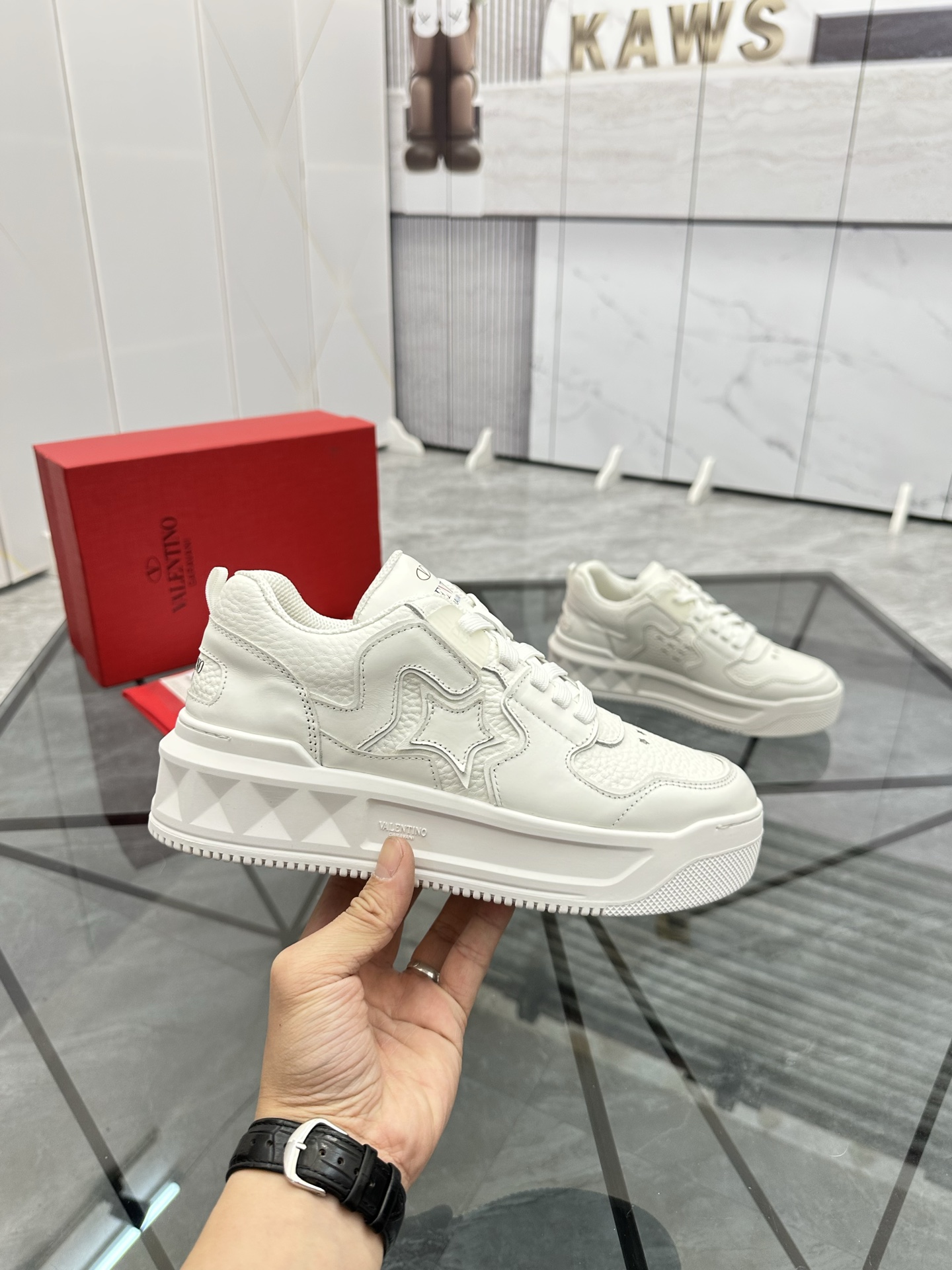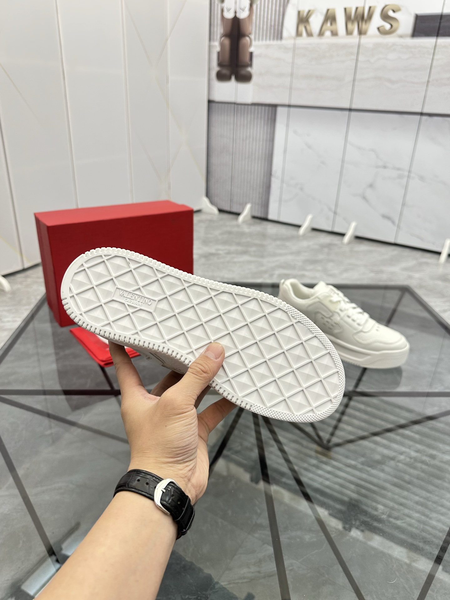 这款鞋子是AAAAA 1:1 质量 (非常棒). 使用了和原版一模一样的材料. 商标部分也保持了和华伦天奴/Valentino一样. 图片拍摄是实物鞋子拍摄, 您所收到的实物保证和我们图片一模一样.