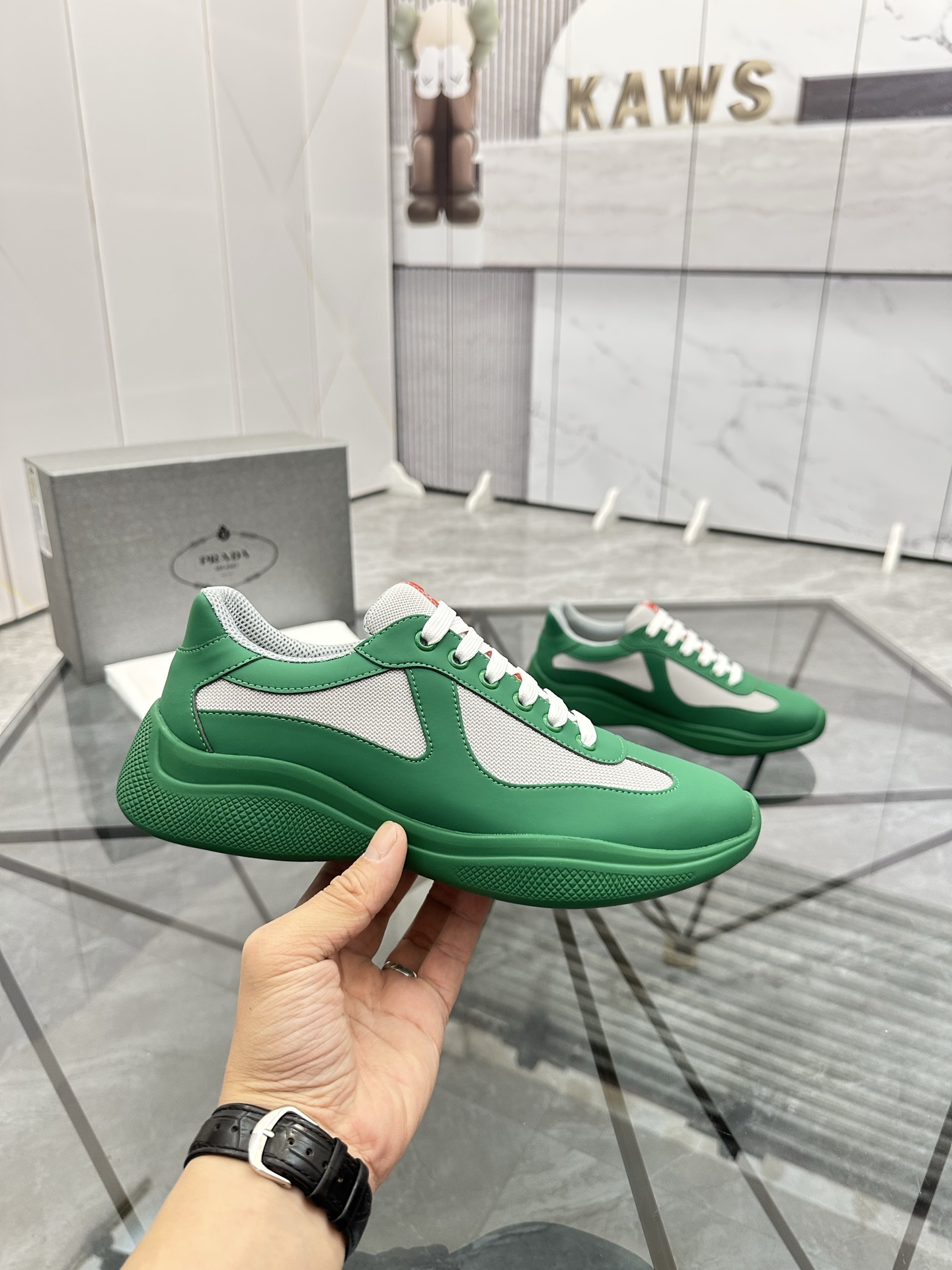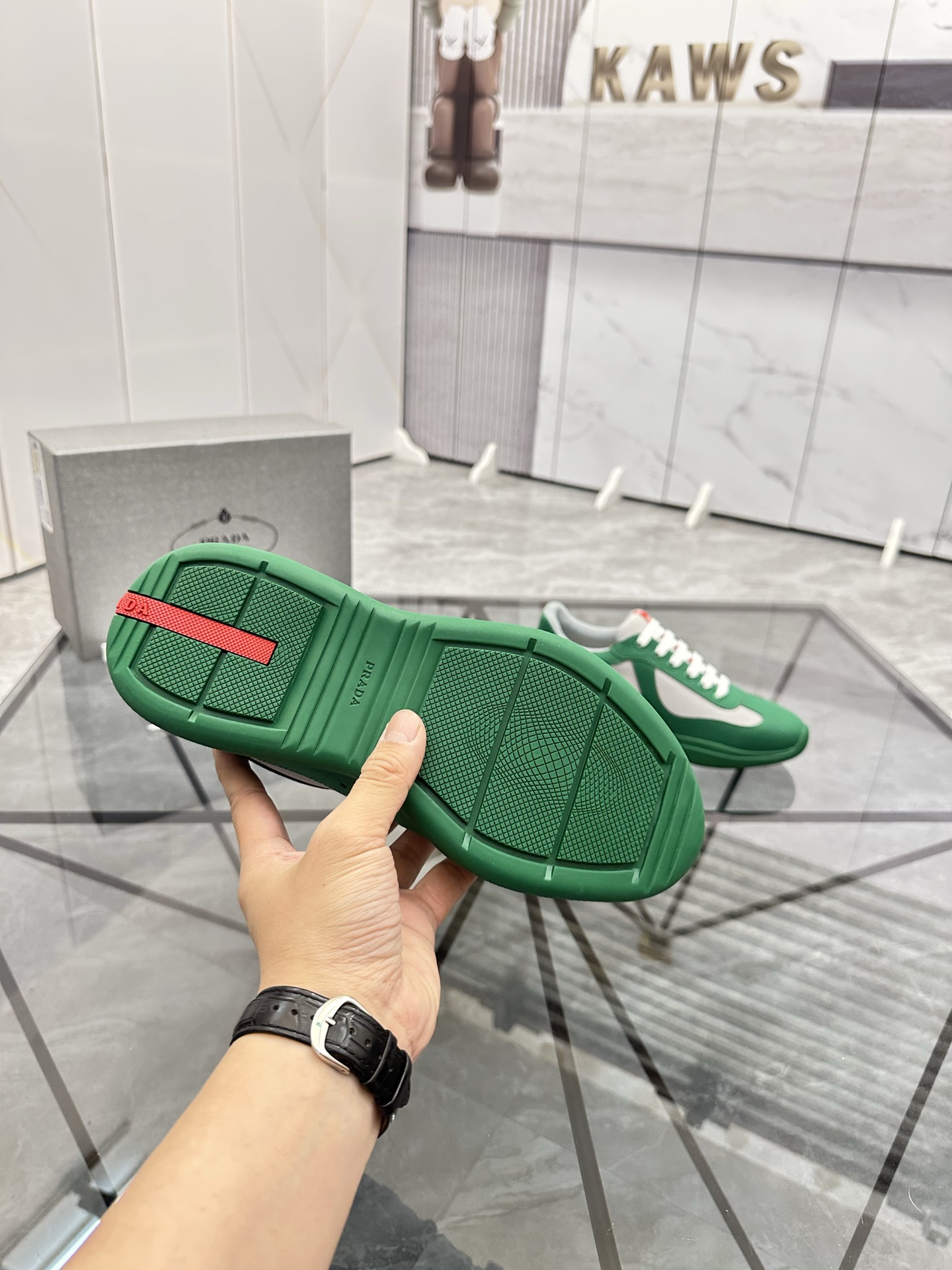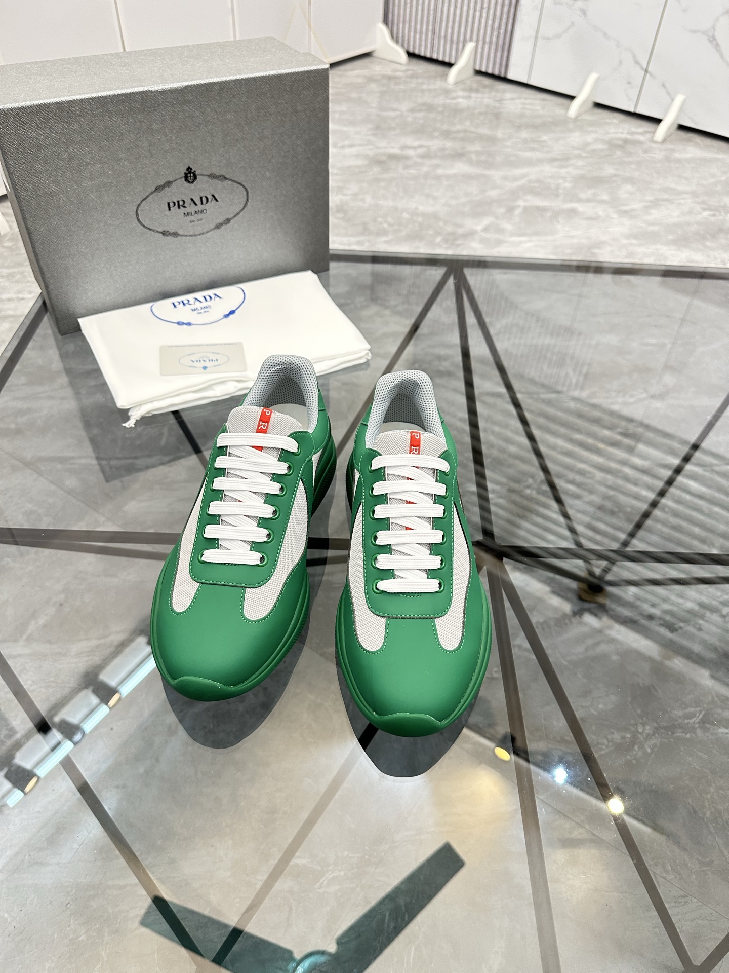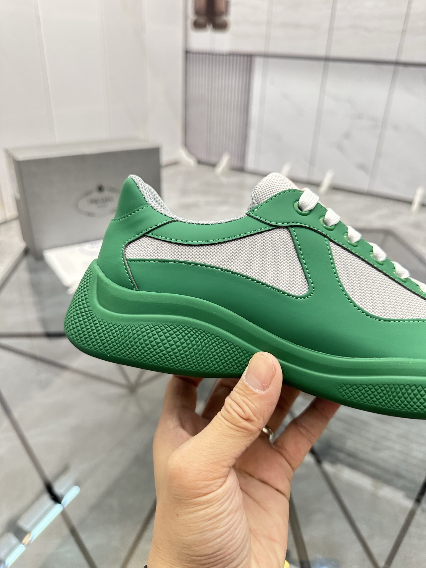 这款鞋子是AAAAA 1:1 质量 (非常棒). 使用了和原版一模一样的材料. 商标部分也保持了和普拉达/Prada一样. 图片拍摄是实物鞋子拍摄, 您所收到的实物保证和我们图片一模一样.