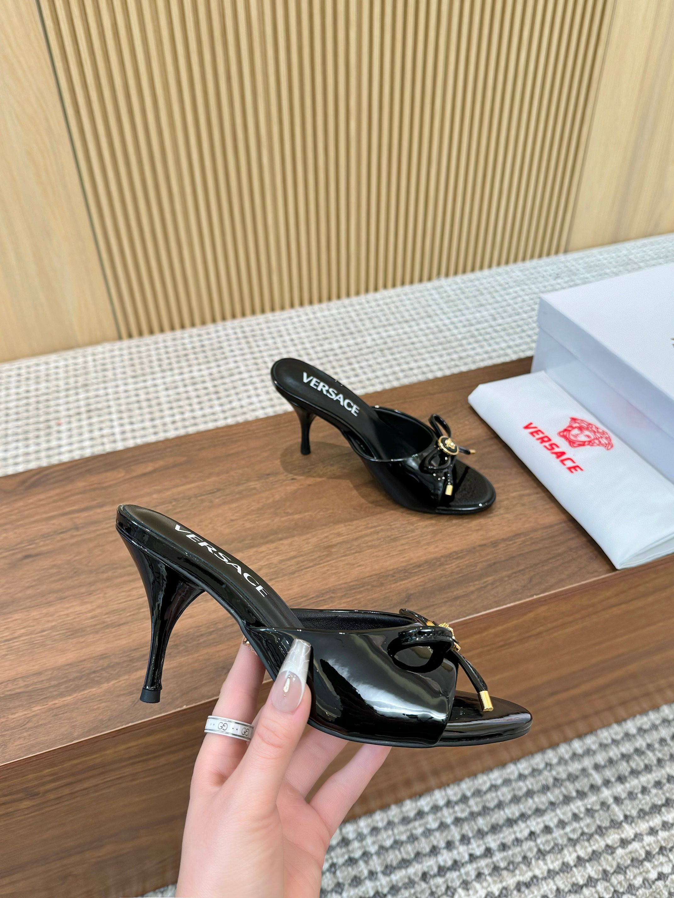 这款鞋子是AAAAA 1:1 质量 (非常棒). 使用了和原版一模一样的材料. 商标部分也保持了和范思哲/Versace一样. 图片拍摄是实物鞋子拍摄, 您所收到的实物保证和我们图片一模一样.