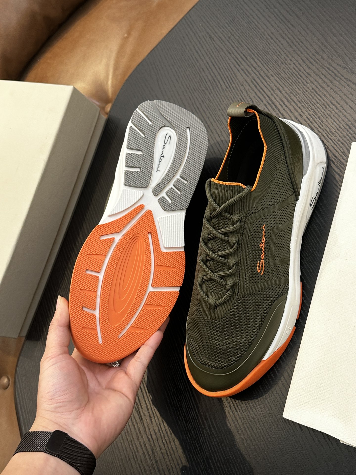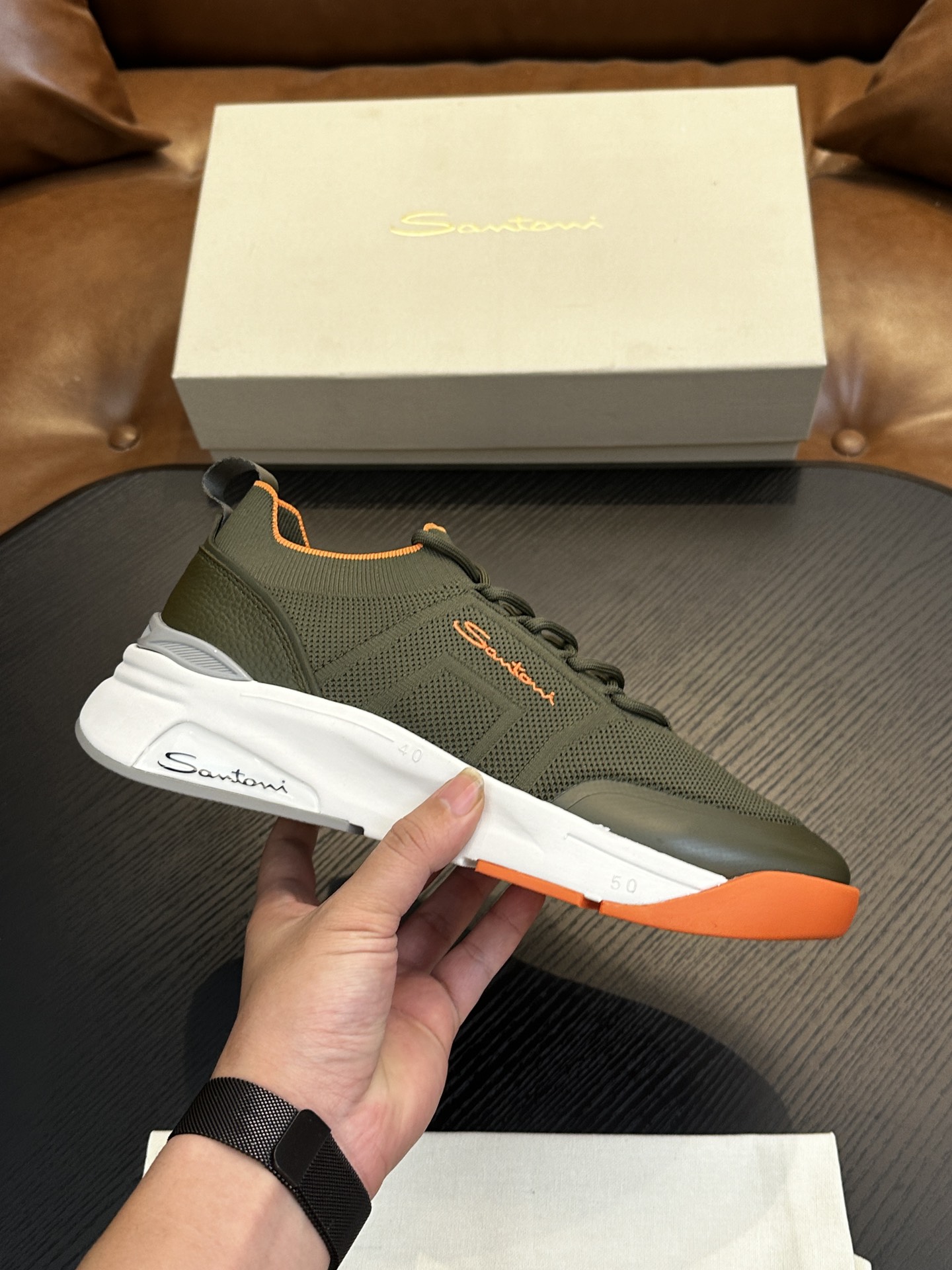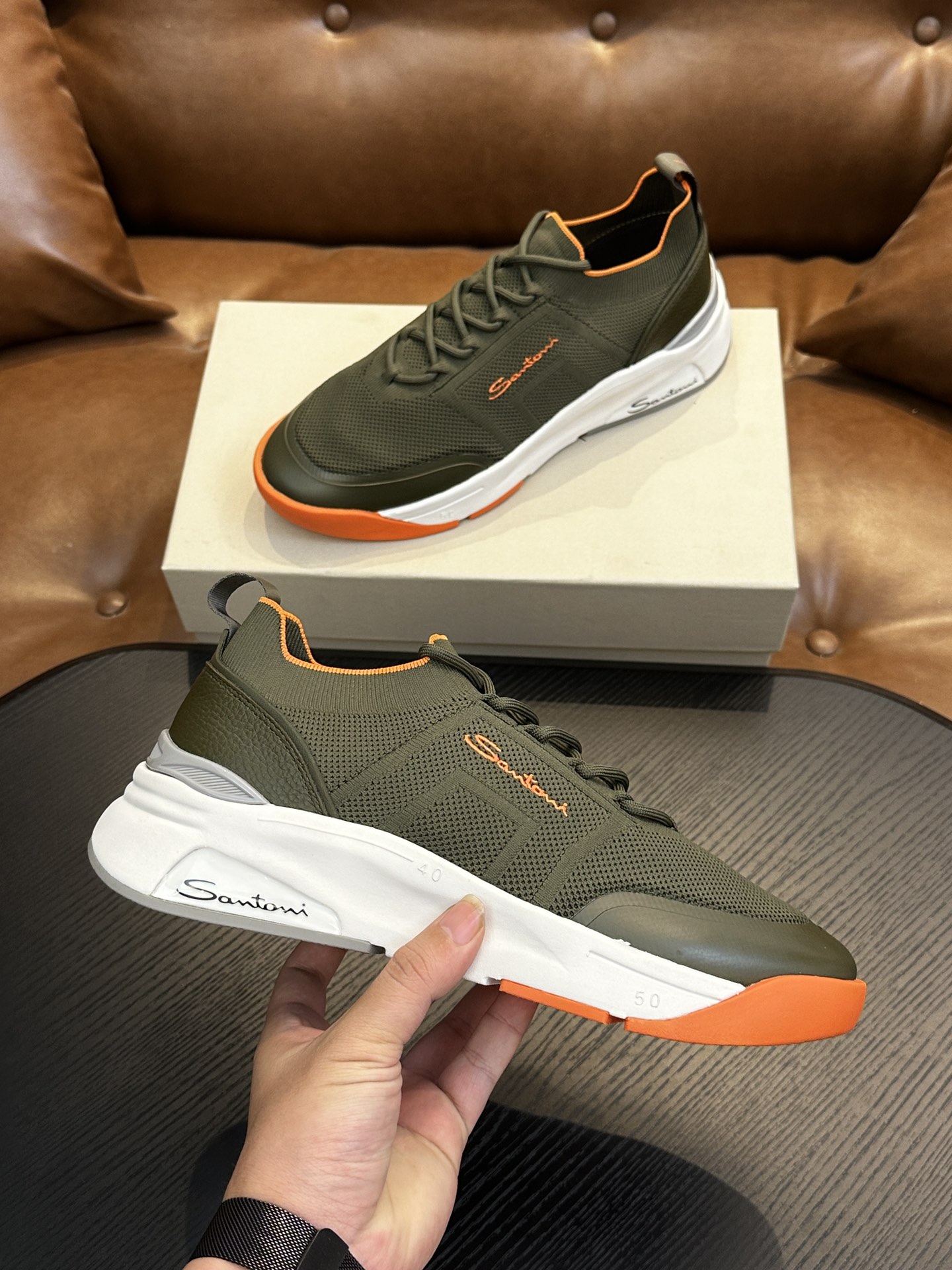 这款鞋子是AAAAA 1:1 质量 (非常棒). 使用了和原版一模一样的材料. 商标部分也保持了和Santoni一样. 图片拍摄是实物鞋子拍摄, 您所收到的实物保证和我们图片一模一样.