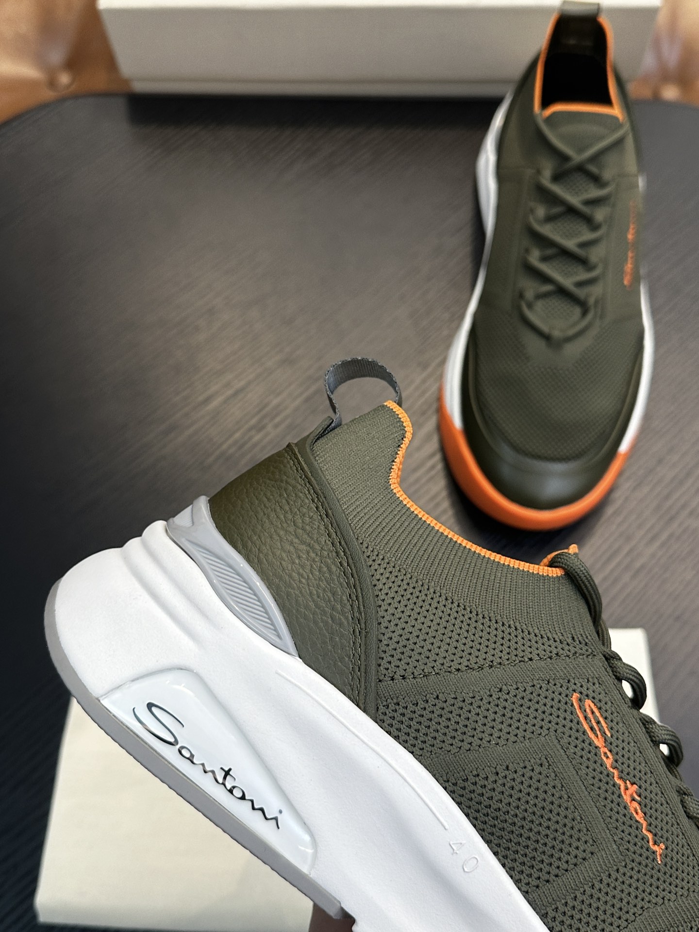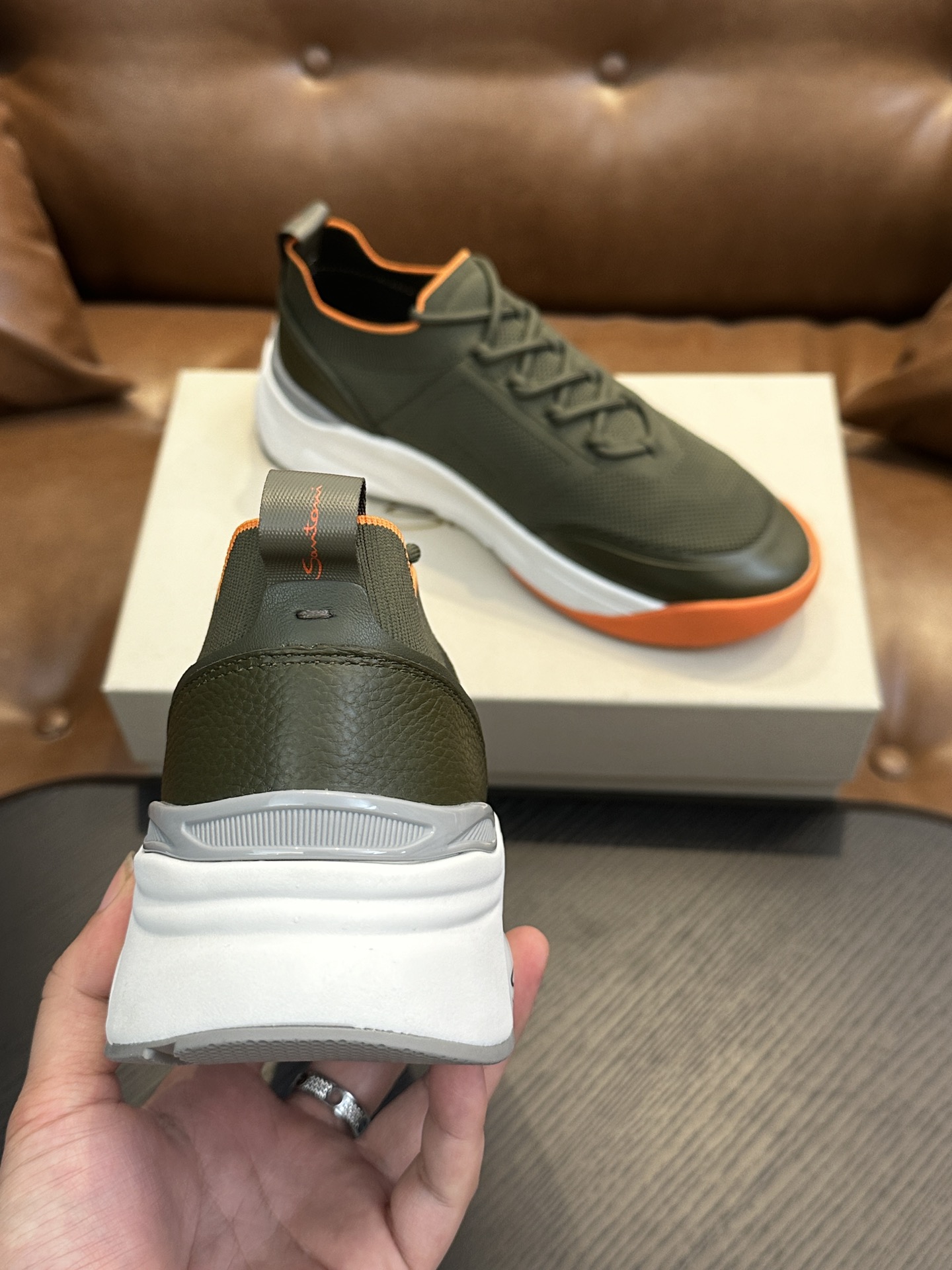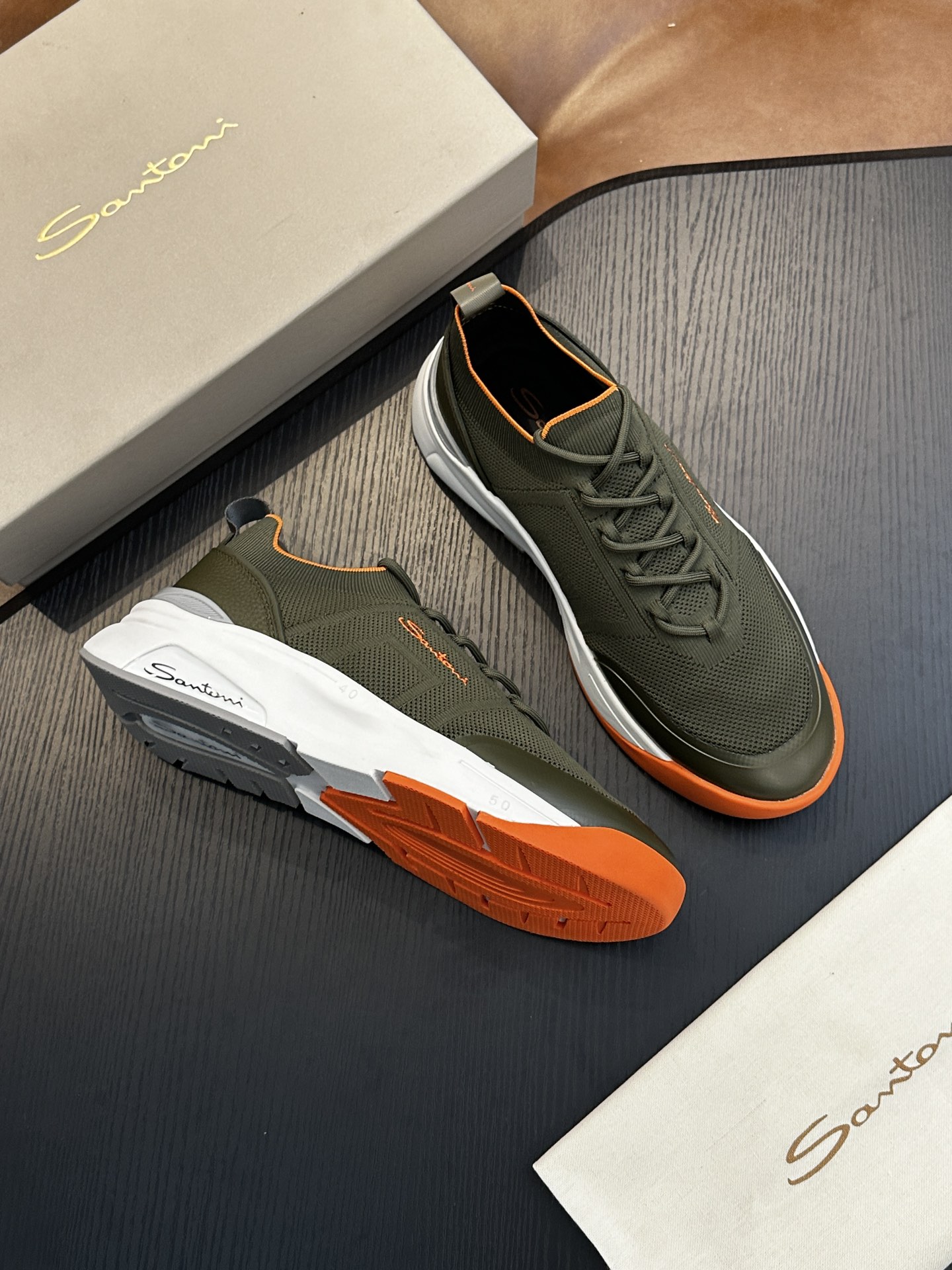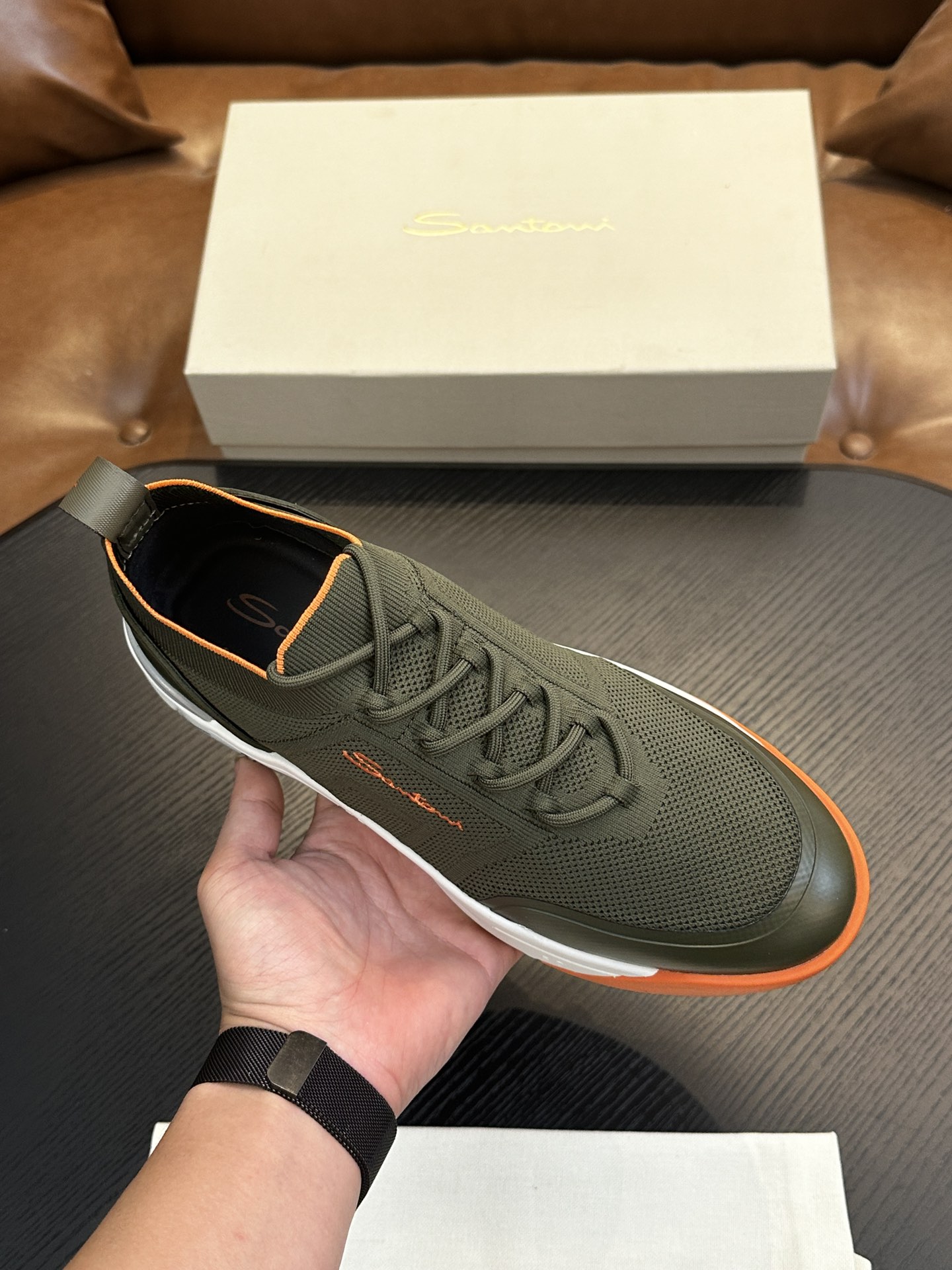 这款鞋子是AAAAA 1:1 质量 (非常棒). 使用了和原版一模一样的材料. 商标部分也保持了和Santoni一样. 图片拍摄是实物鞋子拍摄, 您所收到的实物保证和我们图片一模一样.