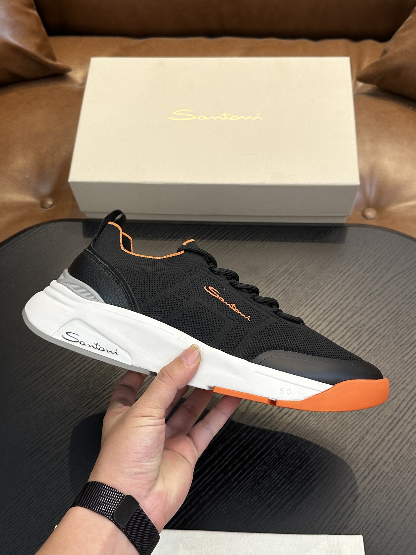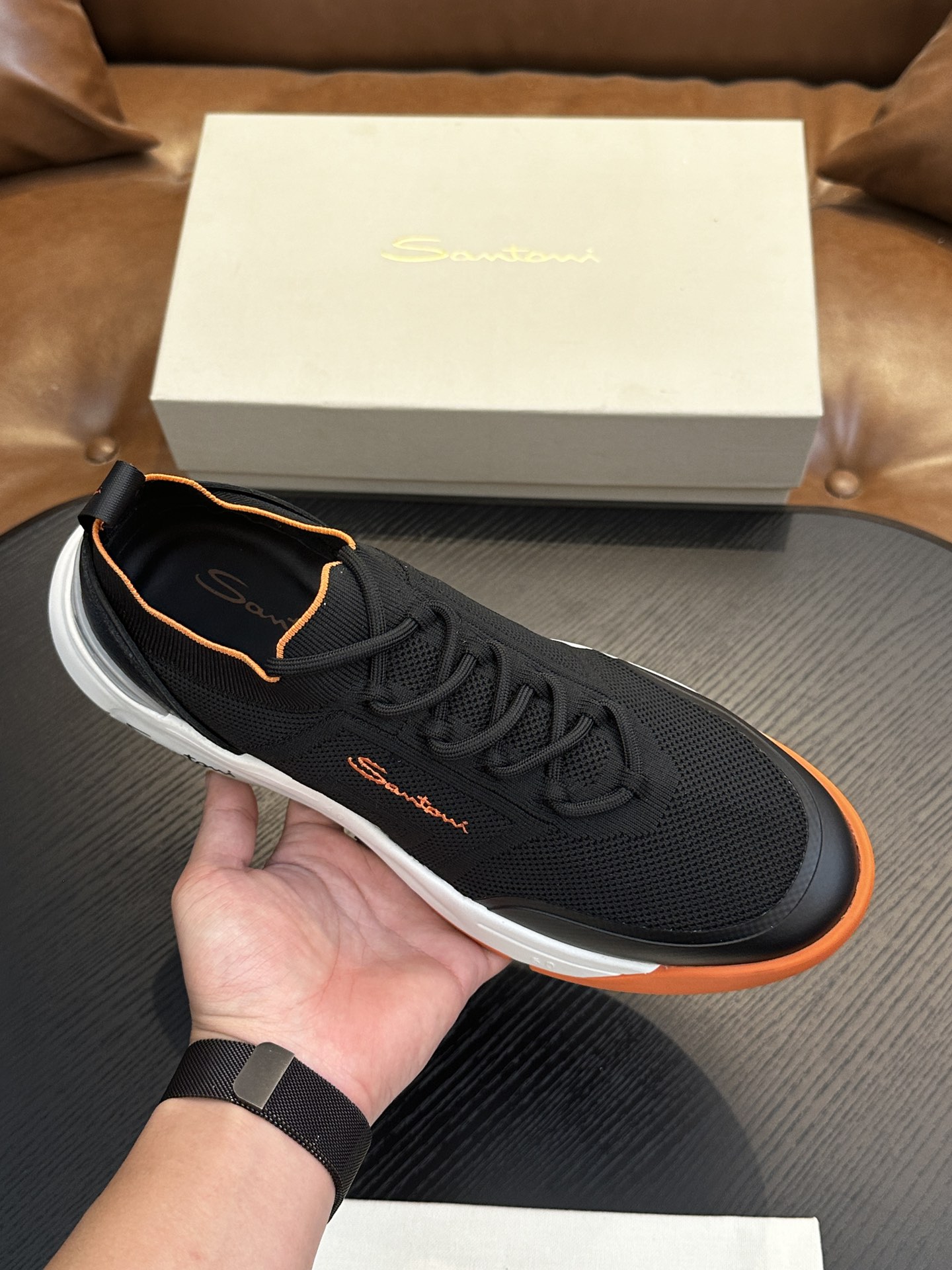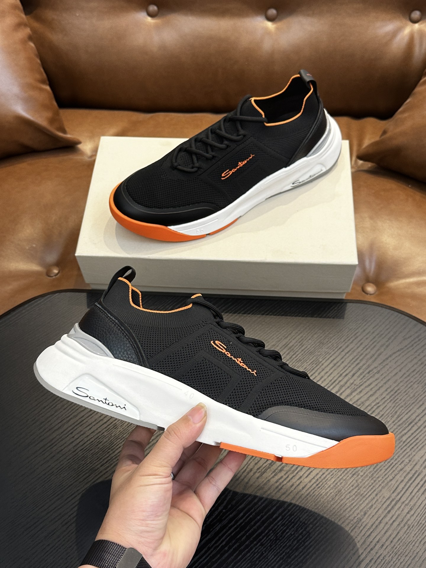 这款鞋子是AAAAA 1:1 质量 (非常棒). 使用了和原版一模一样的材料. 商标部分也保持了和Santoni一样. 图片拍摄是实物鞋子拍摄, 您所收到的实物保证和我们图片一模一样.