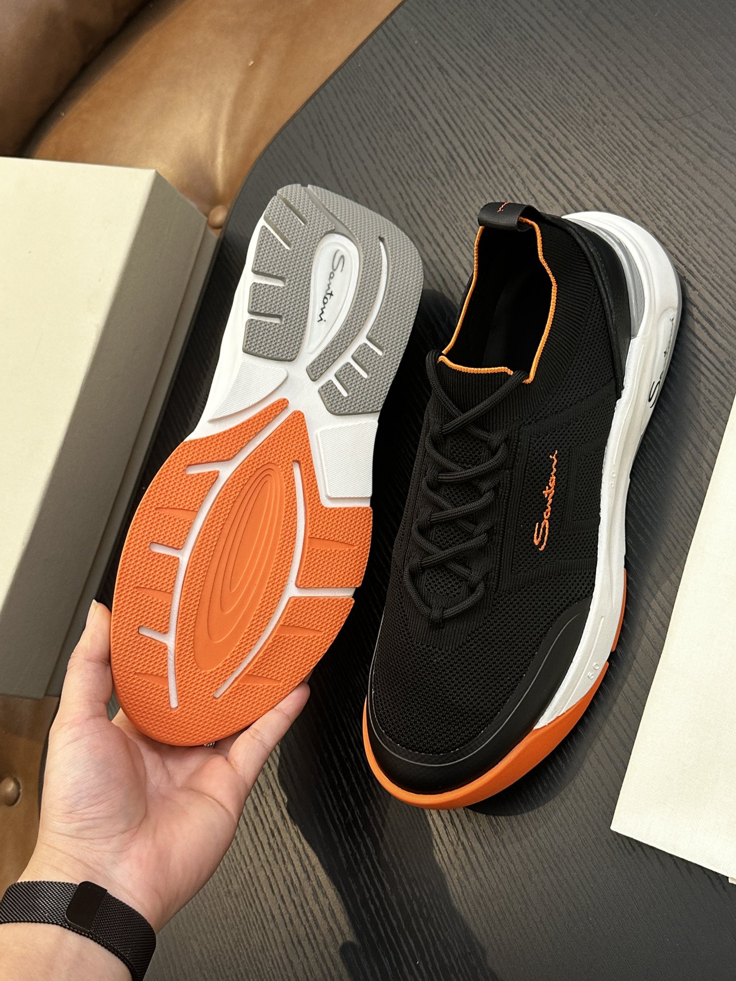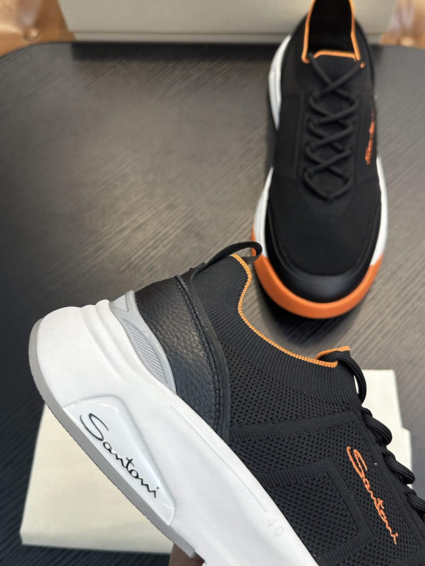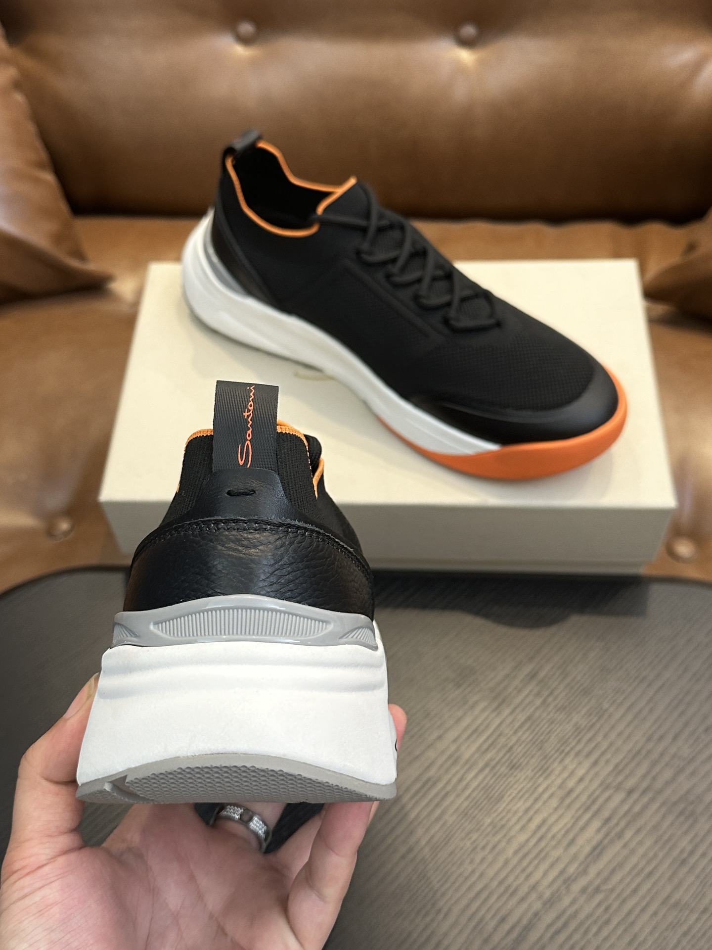 这款鞋子是AAAAA 1:1 质量 (非常棒). 使用了和原版一模一样的材料. 商标部分也保持了和Santoni一样. 图片拍摄是实物鞋子拍摄, 您所收到的实物保证和我们图片一模一样.
