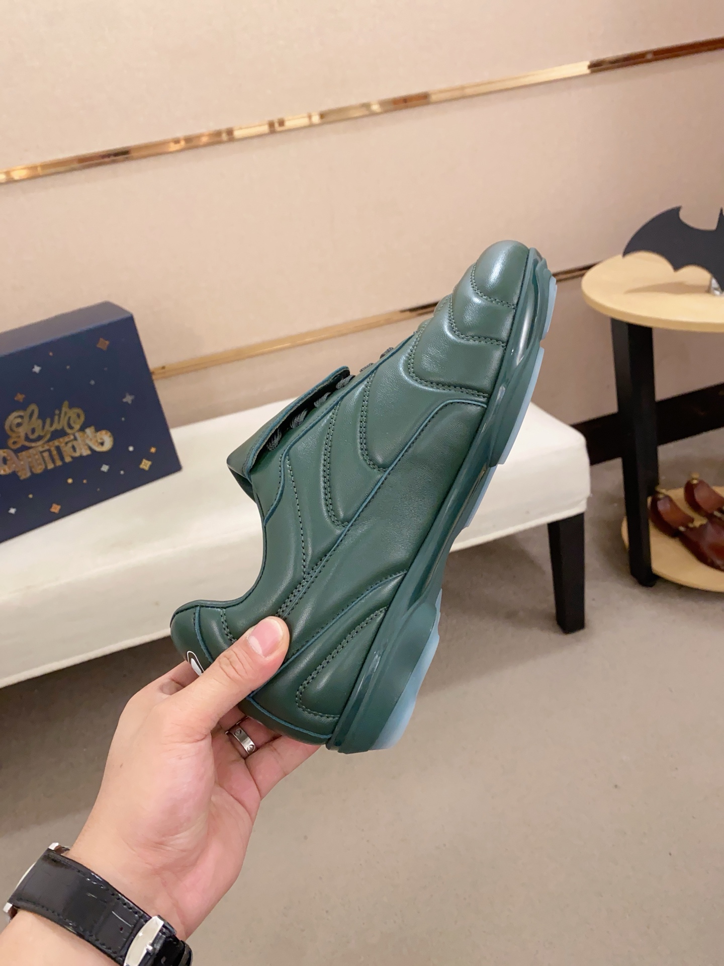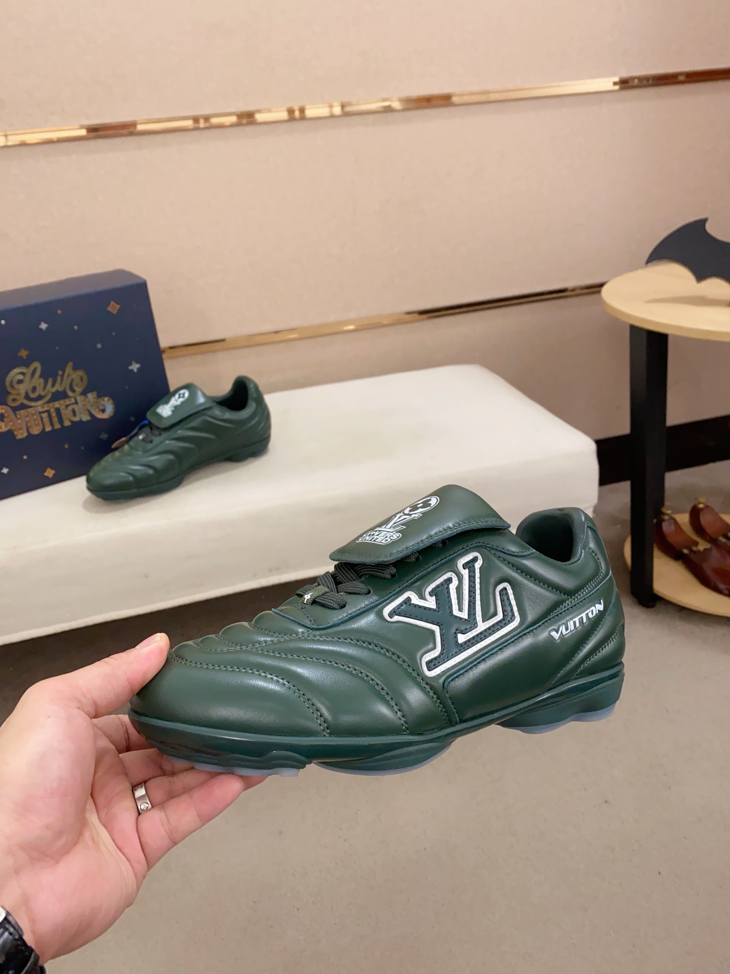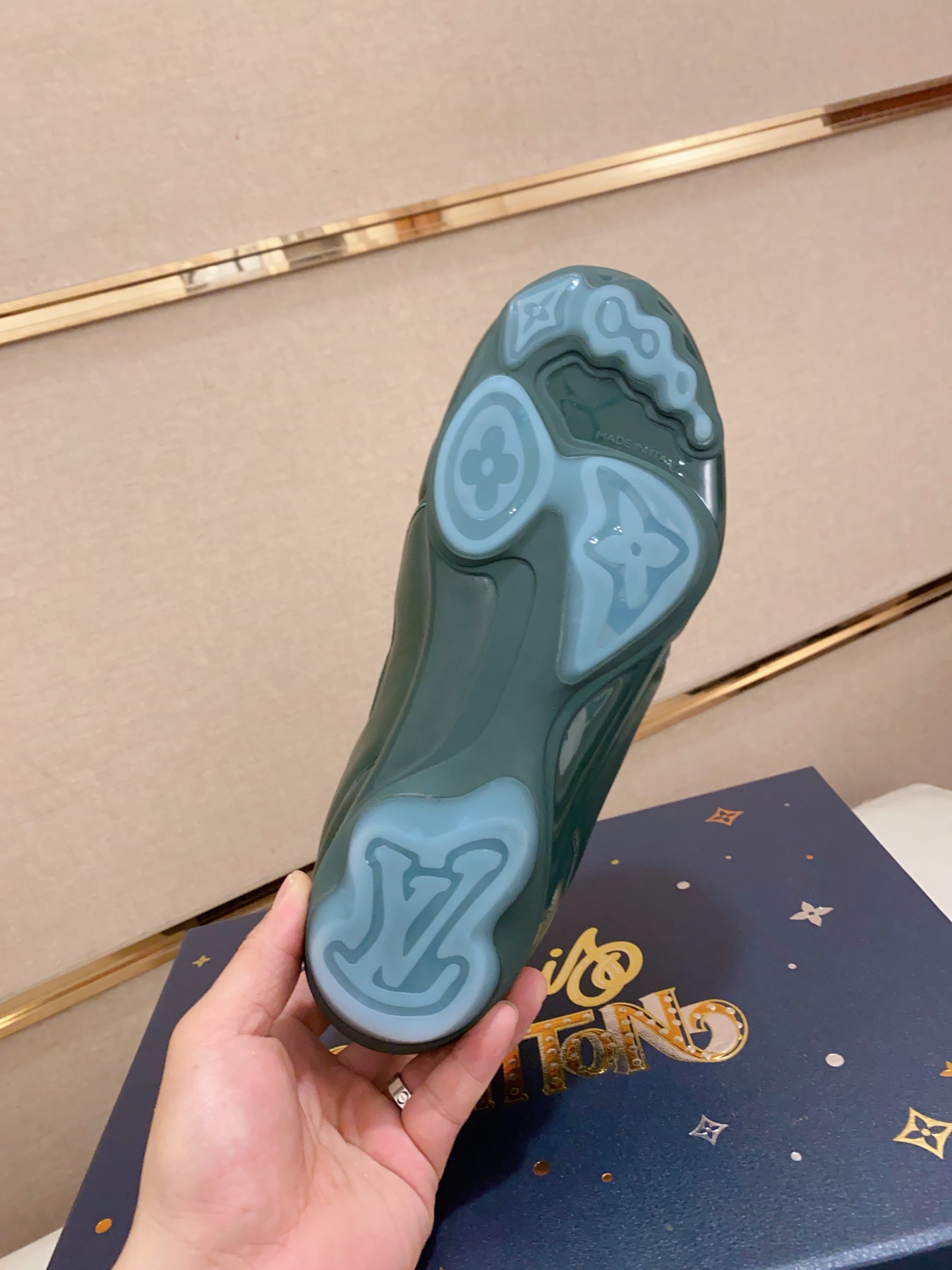 这款鞋子是AAAAA 1:1 质量 (非常棒). 使用了和原版一模一样的材料. 商标部分也保持了和路易威登/Louis Vuitton一样. 图片拍摄是实物鞋子拍摄, 您所收到的实物保证和我们图片一模一样.