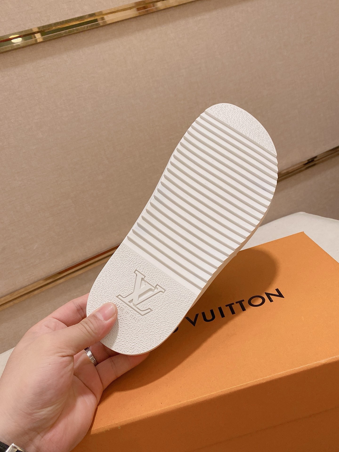 这款鞋子是AAAAA 1:1 质量 (非常棒). 使用了和原版一模一样的材料. 商标部分也保持了和路易威登/Louis Vuitton一样. 图片拍摄是实物鞋子拍摄, 您所收到的实物保证和我们图片一模一样.