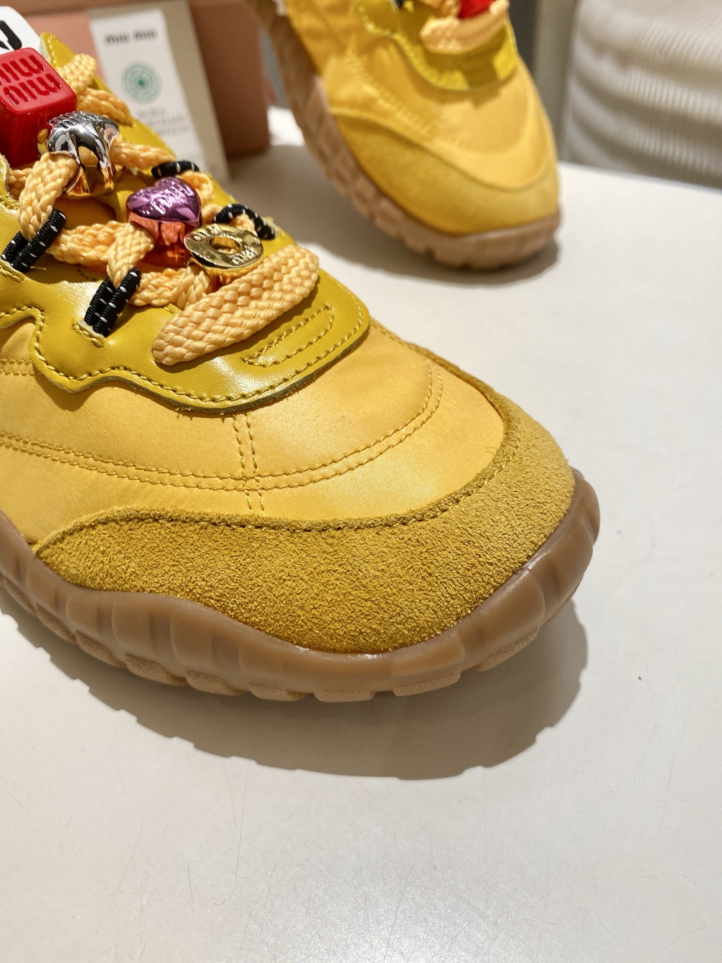 这款鞋子是AAAAA 1:1 质量 (非常棒). 使用了和原版一模一样的材料. 商标部分也保持了和缪缪/Miu Miu一样. 图片拍摄是实物鞋子拍摄, 您所收到的实物保证和我们图片一模一样.