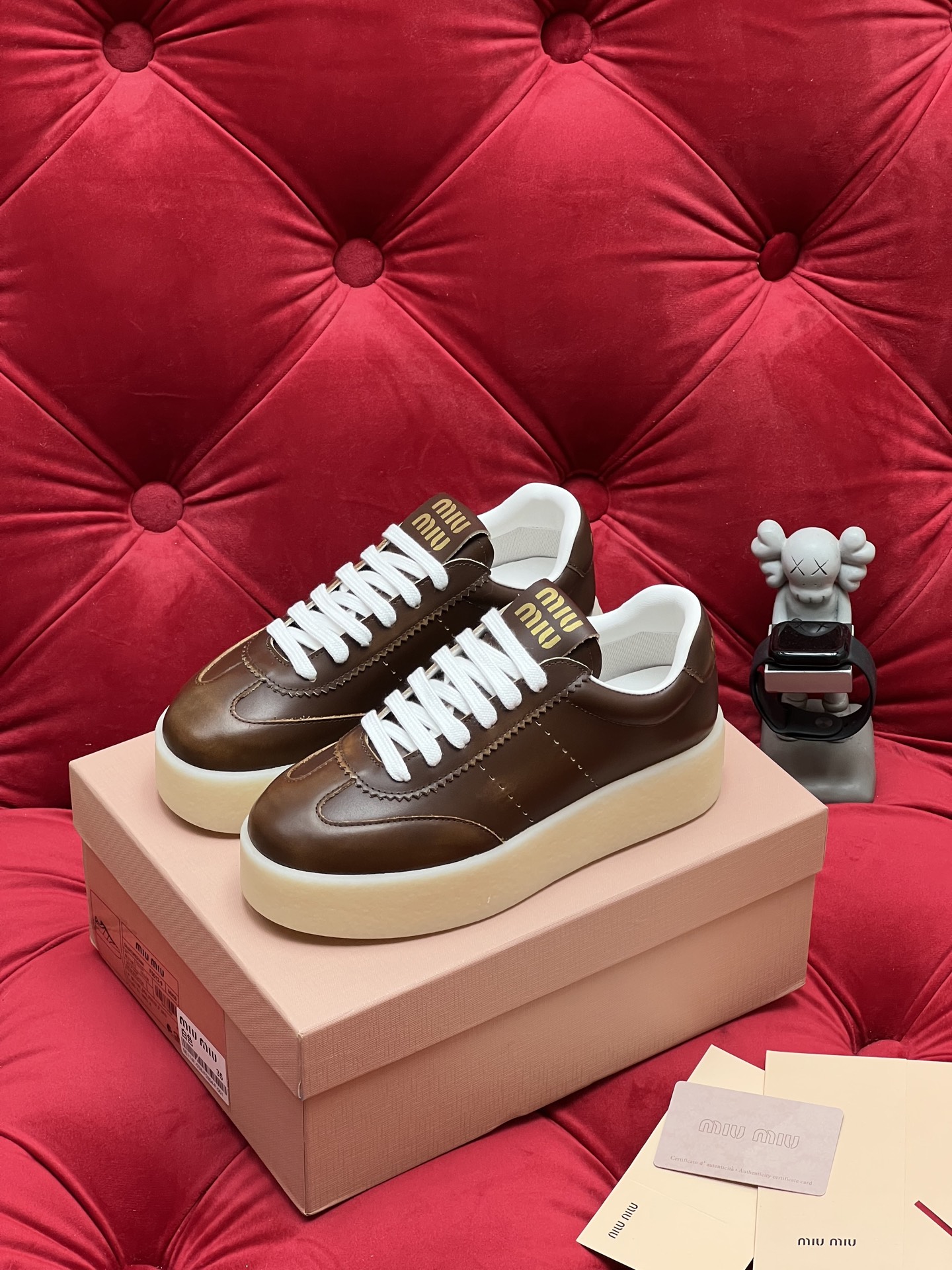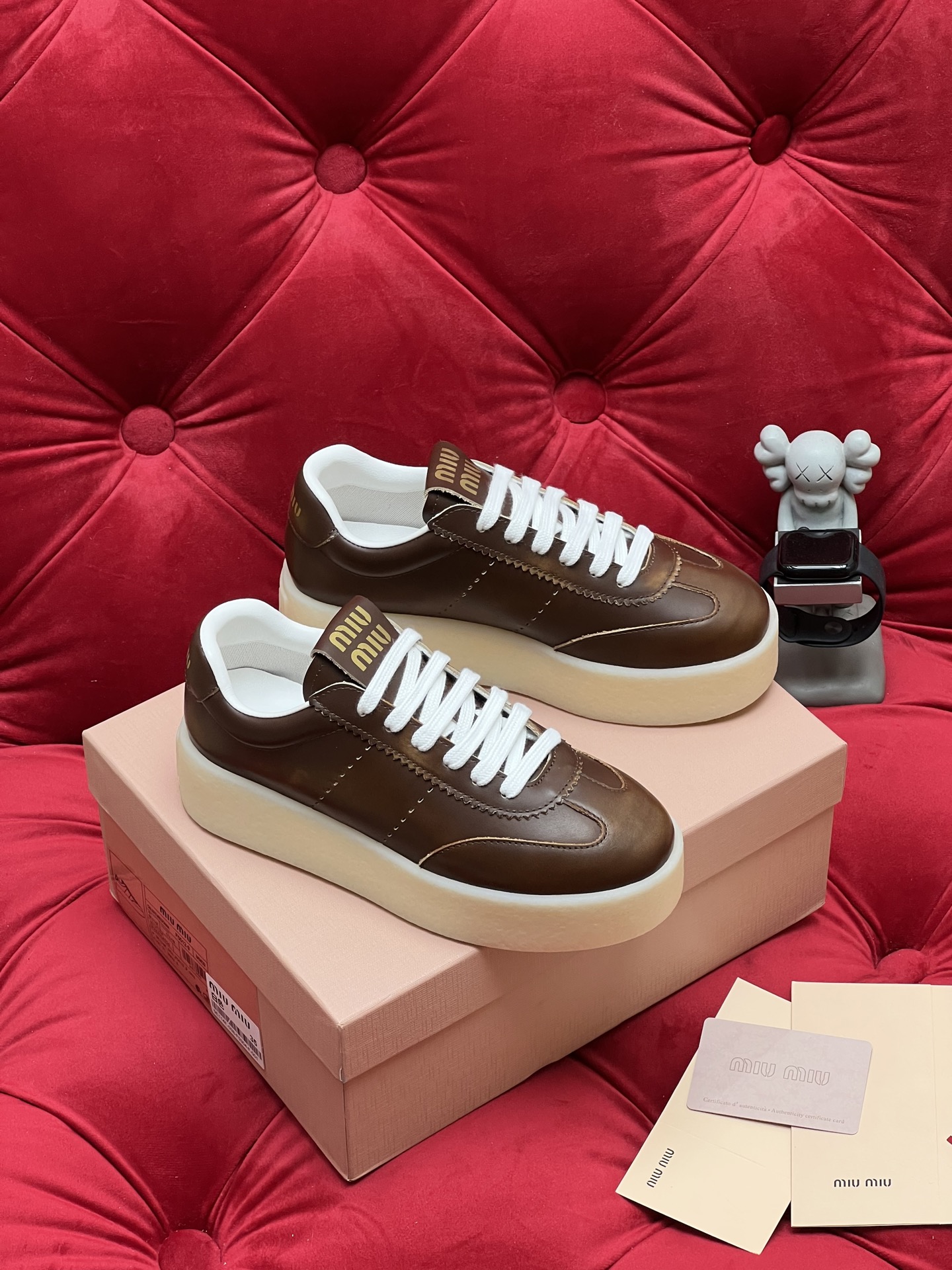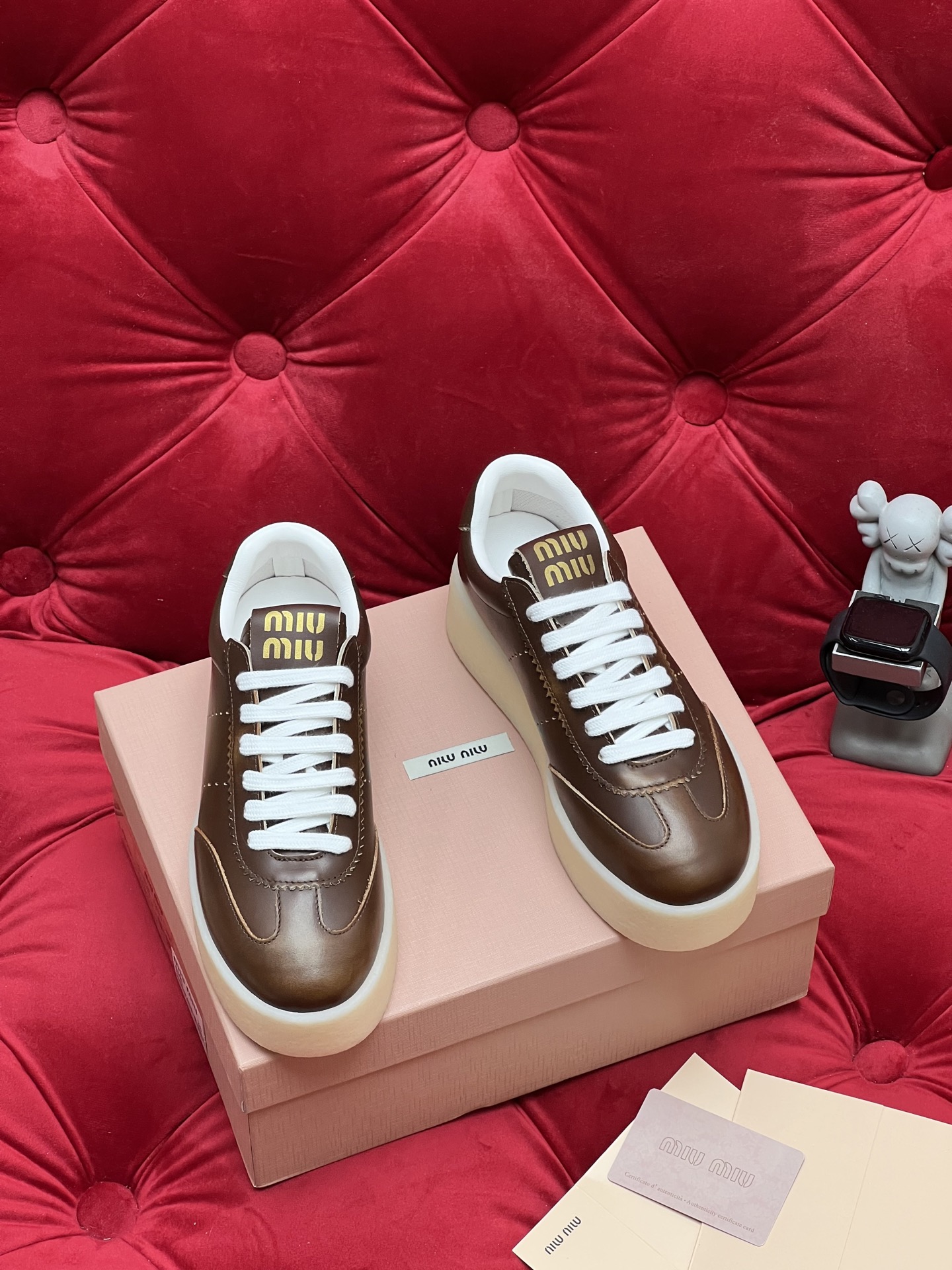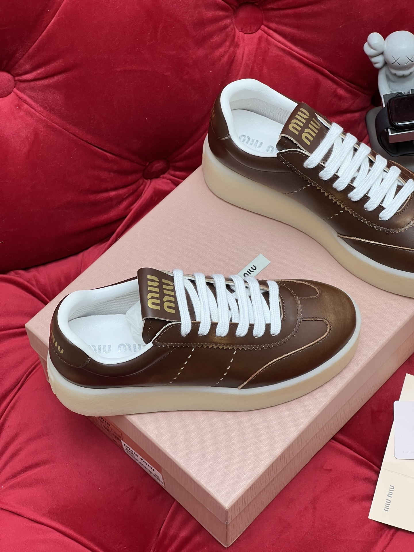 这款鞋子是AAAAA 1:1 质量 (非常棒). 使用了和原版一模一样的材料. 商标部分也保持了和缪缪/Miu Miu一样. 图片拍摄是实物鞋子拍摄, 您所收到的实物保证和我们图片一模一样.