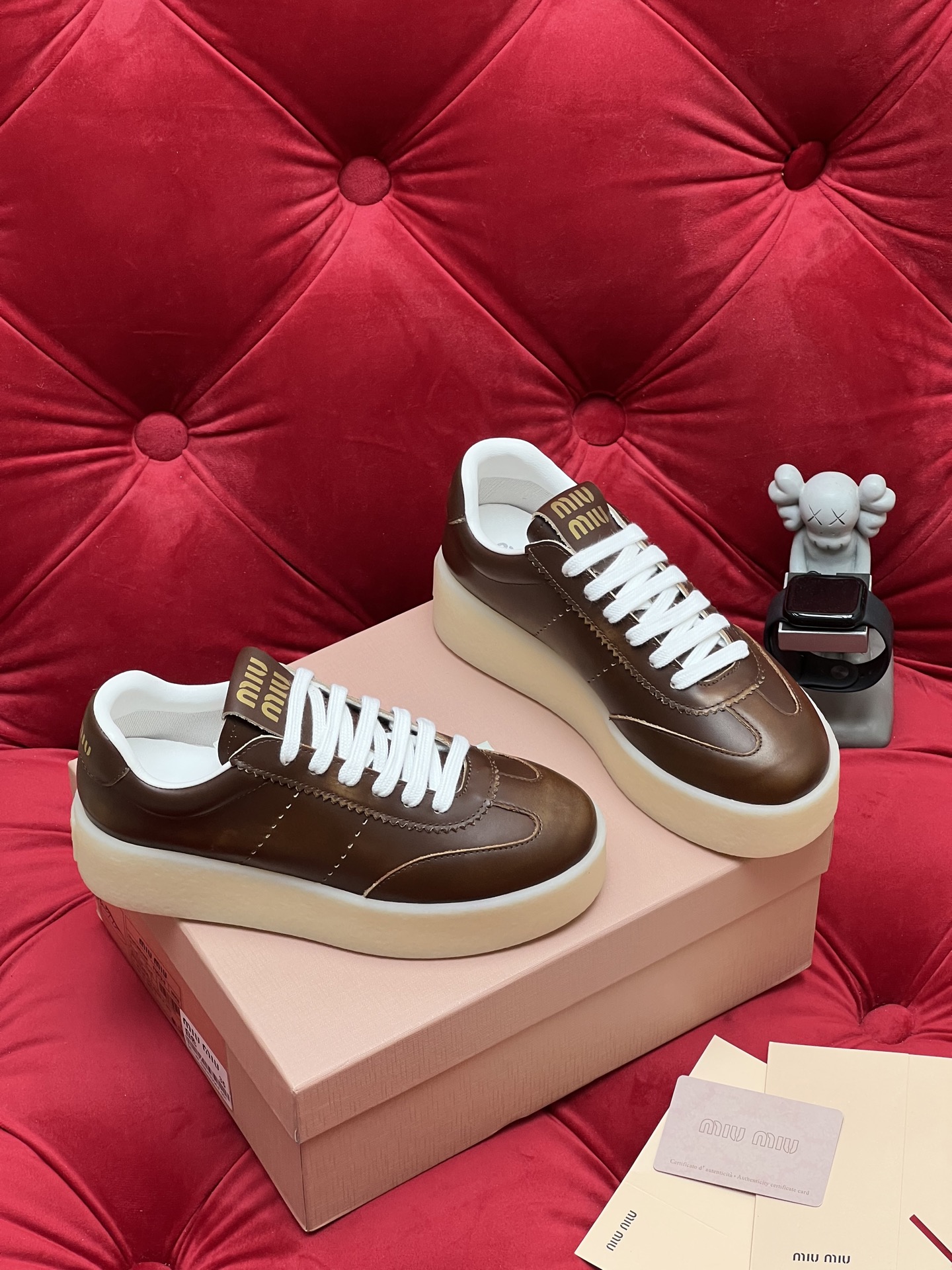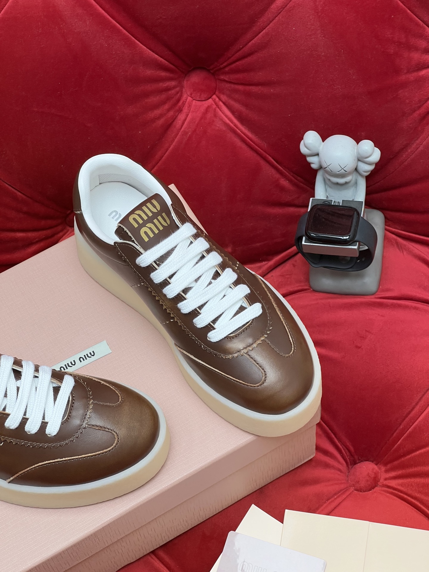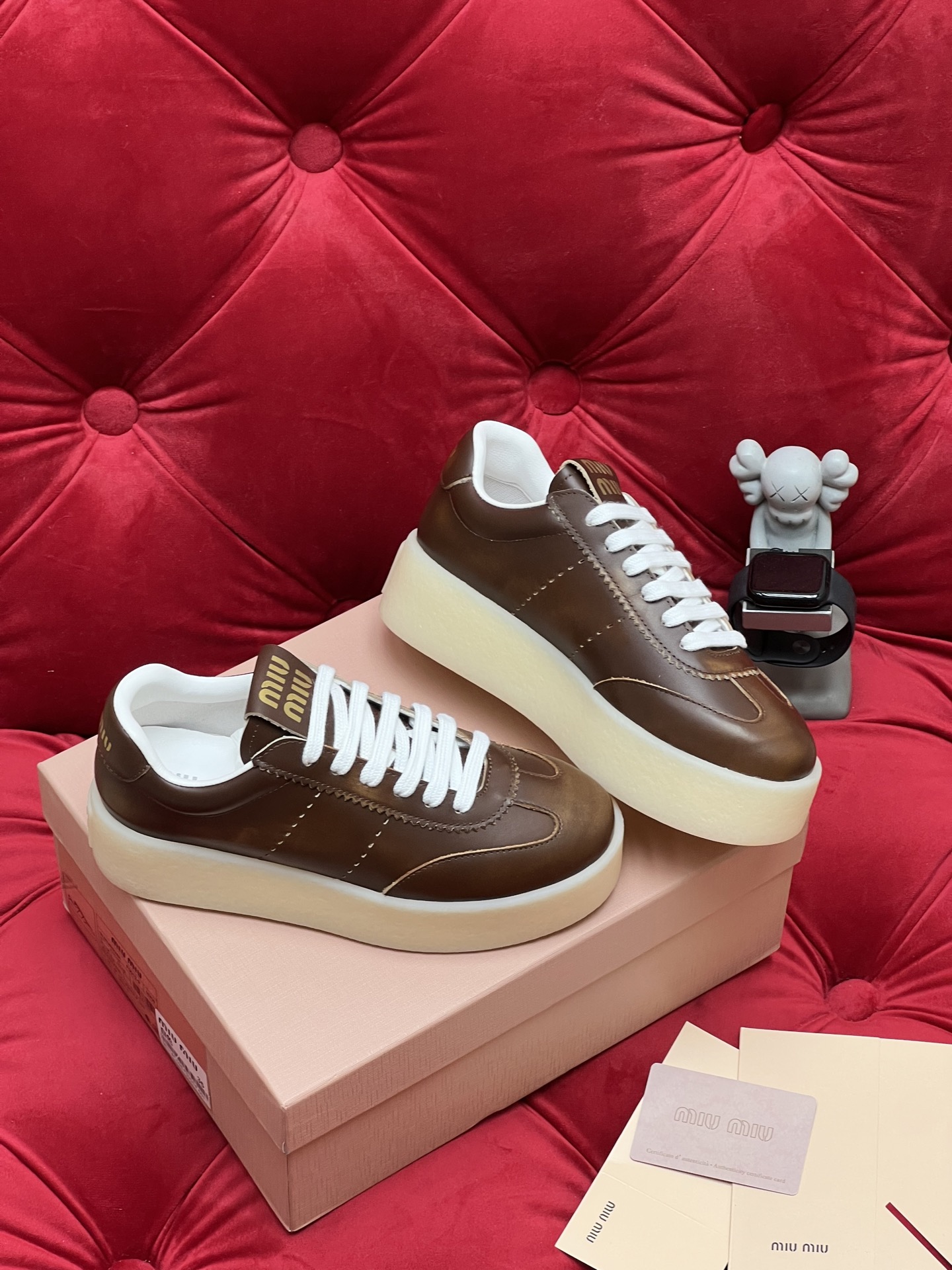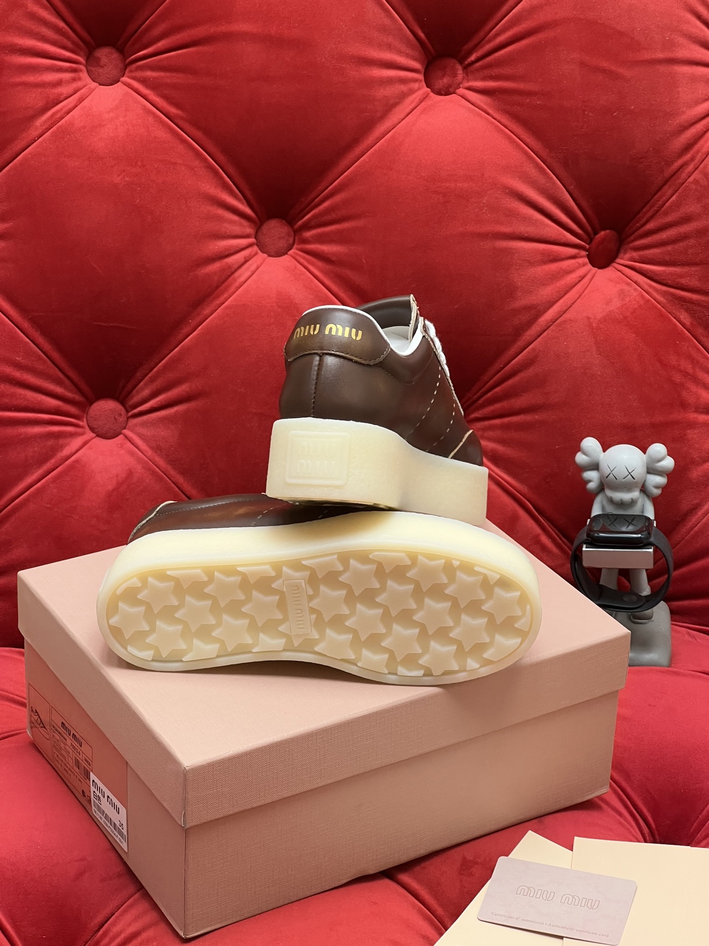 这款鞋子是AAAAA 1:1 质量 (非常棒). 使用了和原版一模一样的材料. 商标部分也保持了和缪缪/Miu Miu一样. 图片拍摄是实物鞋子拍摄, 您所收到的实物保证和我们图片一模一样.