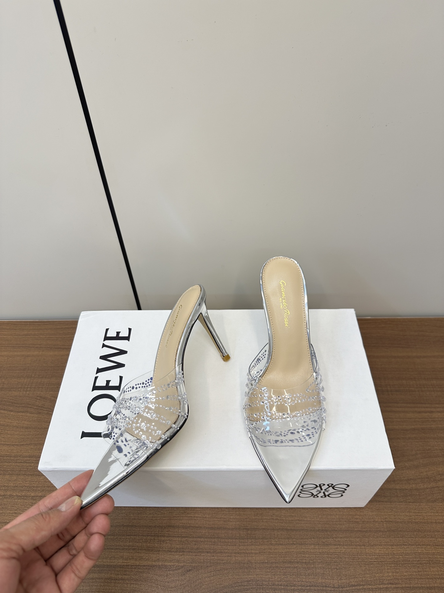 这款鞋子是AAAAA 1:1 质量 (非常棒). 使用了和原版一模一样的材料. 商标部分也保持了和Gianvito Rossi一样. 图片拍摄是实物鞋子拍摄, 您所收到的实物保证和我们图片一模一样.