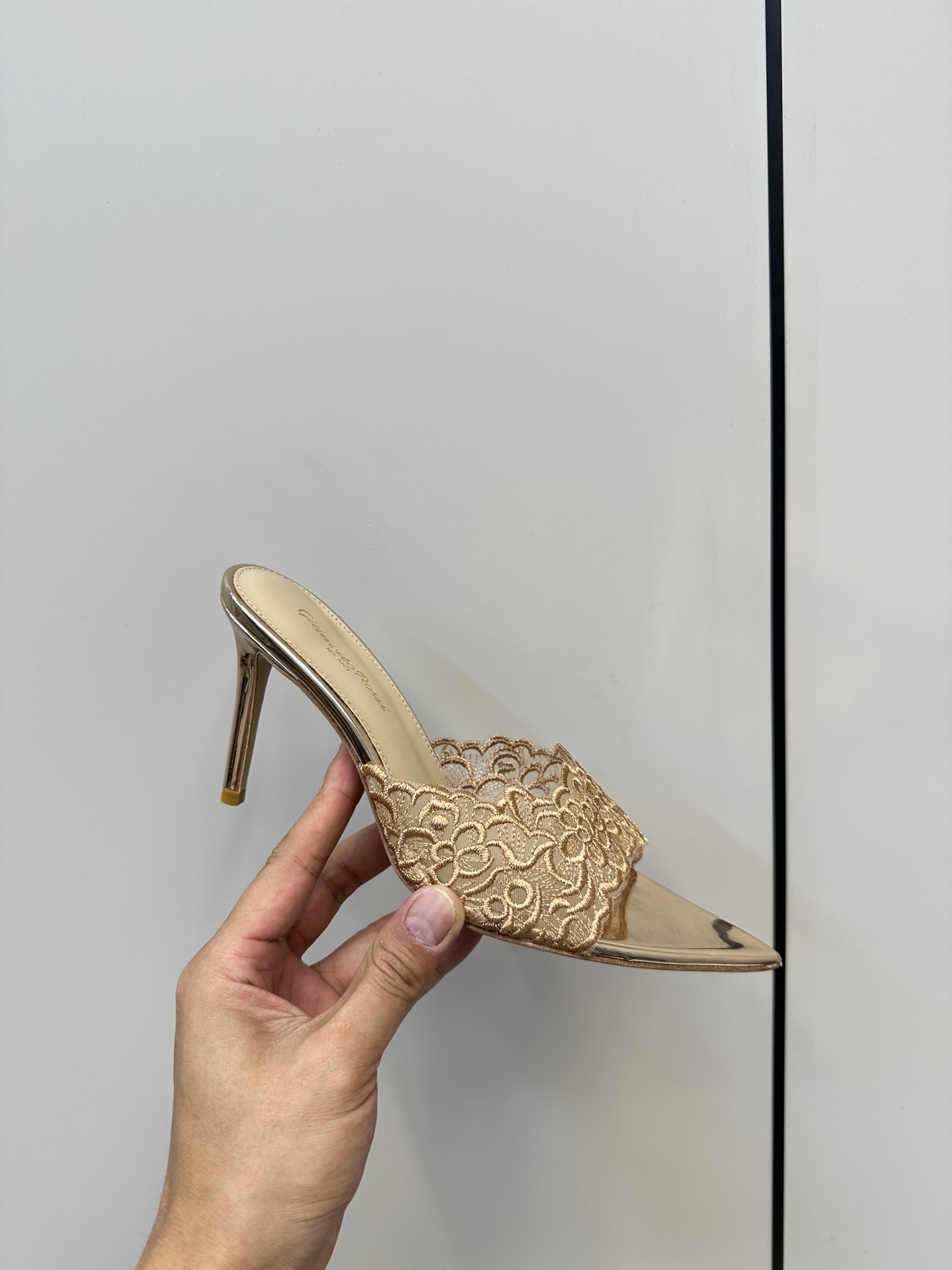 这款鞋子是AAAAA 1:1 质量 (非常棒). 使用了和原版一模一样的材料. 商标部分也保持了和Gianvito Rossi一样. 图片拍摄是实物鞋子拍摄, 您所收到的实物保证和我们图片一模一样.