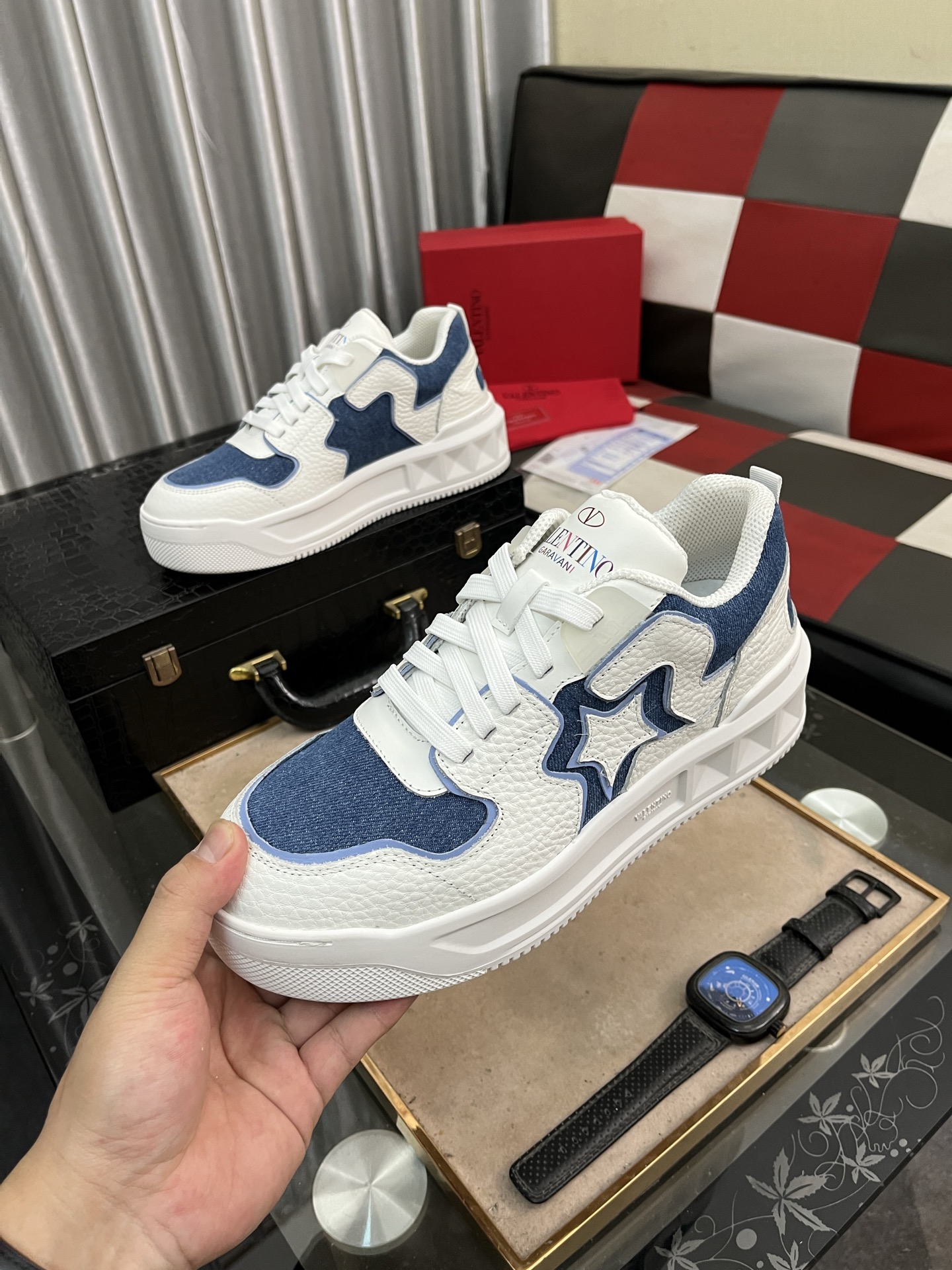 这款鞋子是AAAAA 1:1 质量 (非常棒). 使用了和原版一模一样的材料. 商标部分也保持了和华伦天奴/Valentino一样. 图片拍摄是实物鞋子拍摄, 您所收到的实物保证和我们图片一模一样.