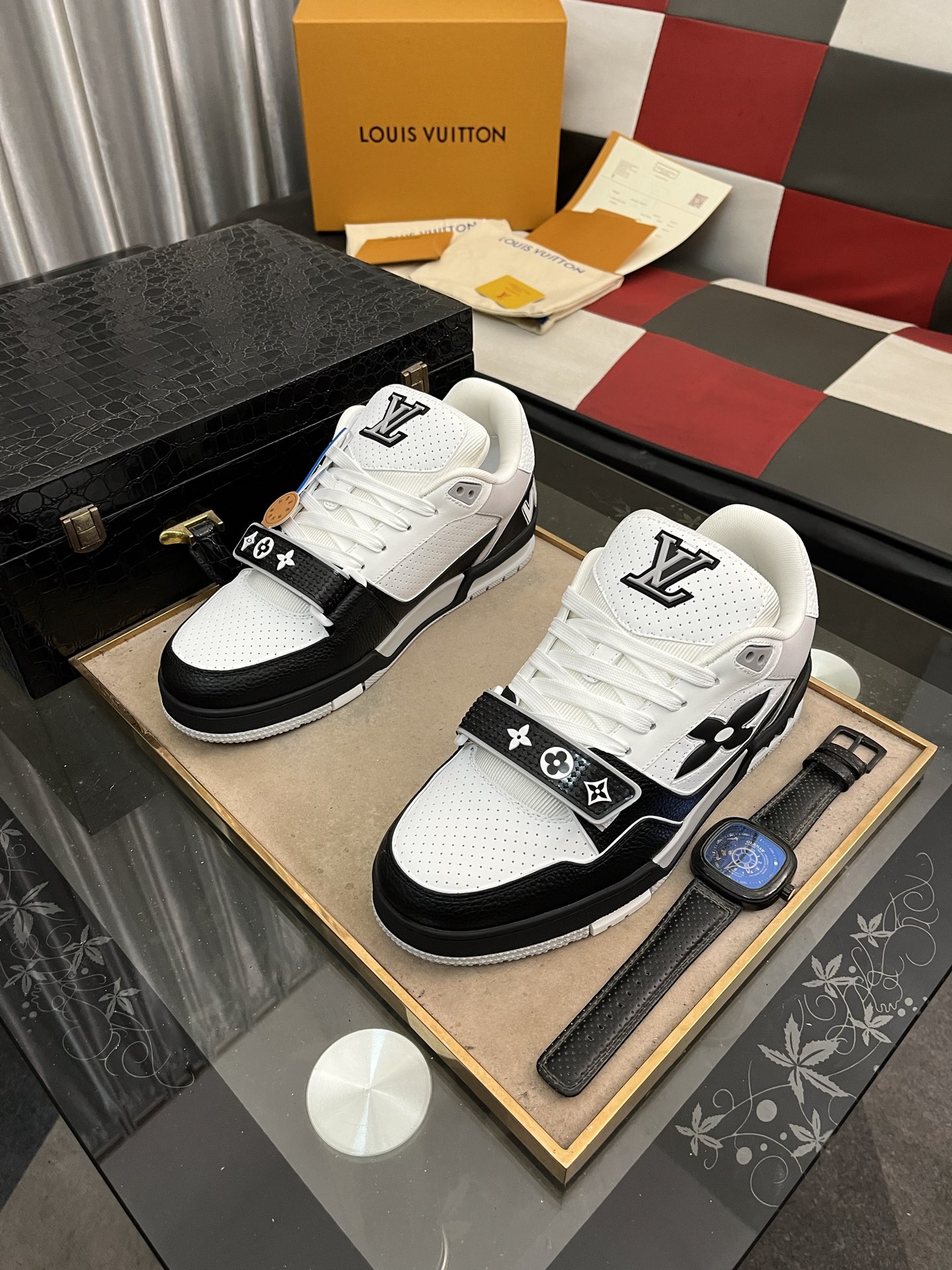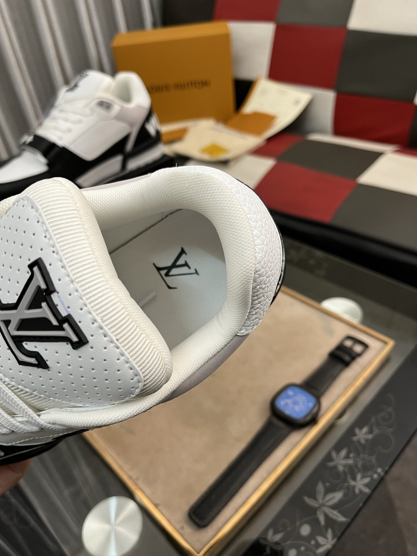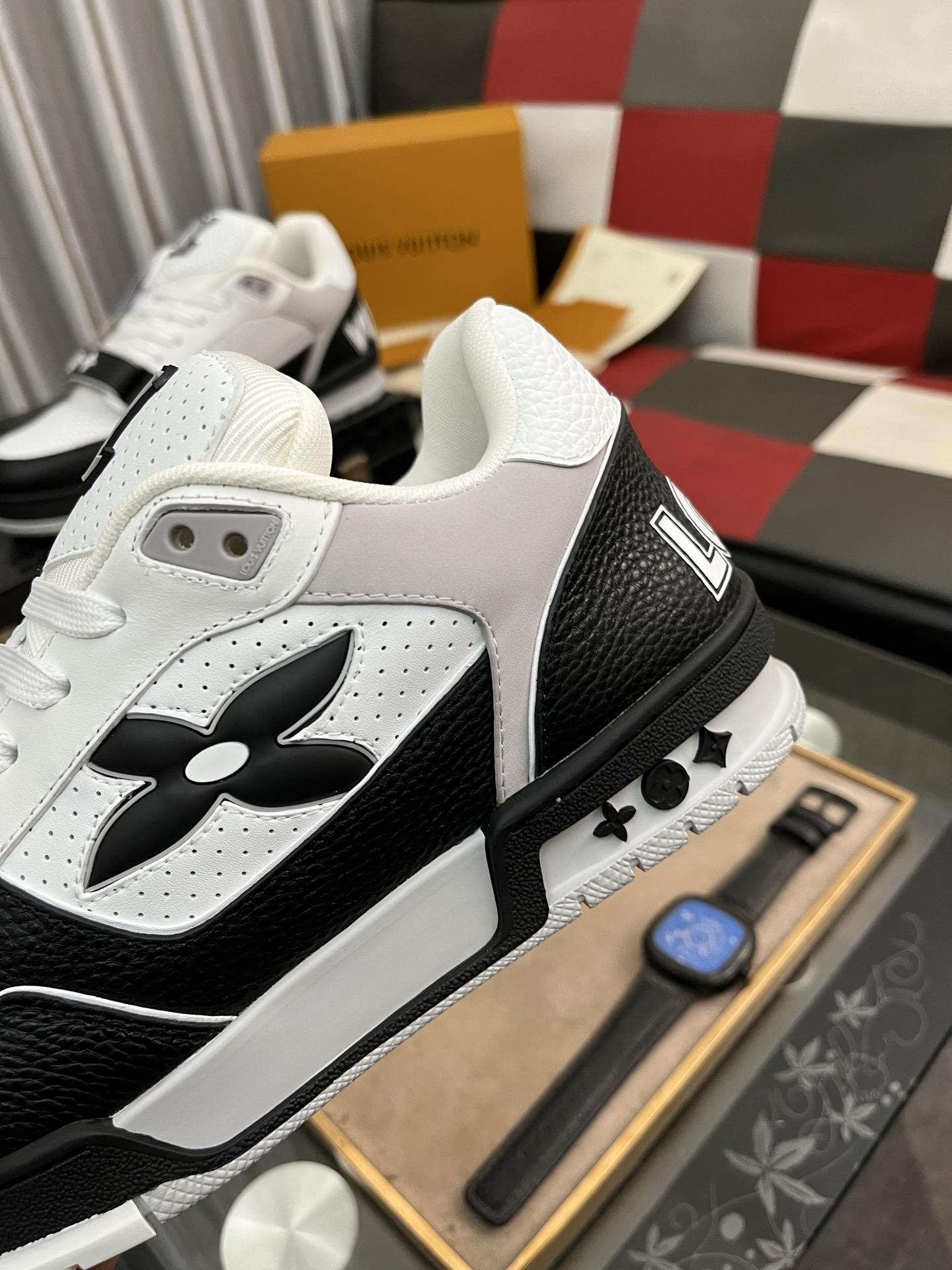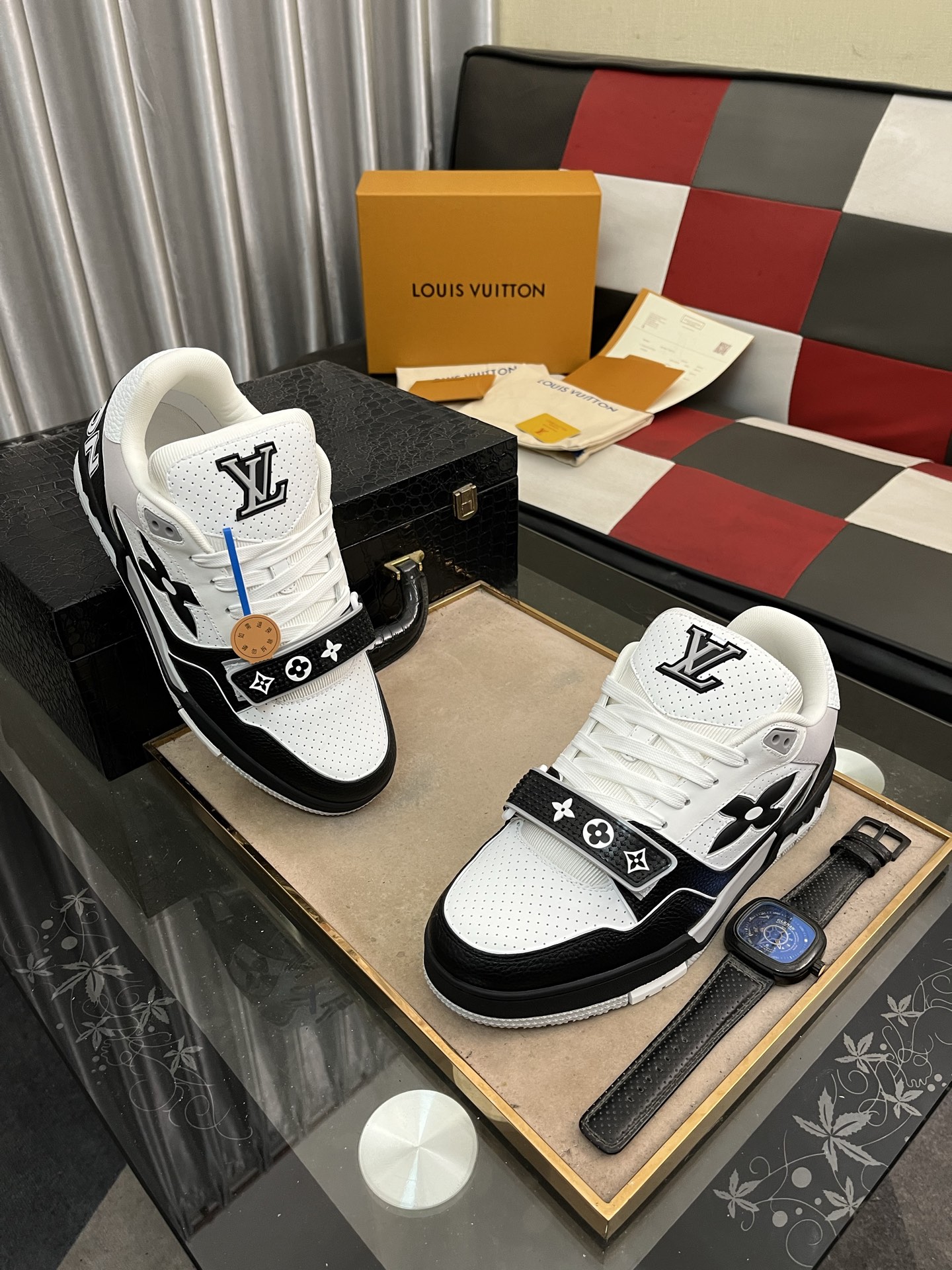 这款鞋子是AAAAA 1:1 质量 (非常棒). 使用了和原版一模一样的材料. 商标部分也保持了和路易威登/Louis Vuitton一样. 图片拍摄是实物鞋子拍摄, 您所收到的实物保证和我们图片一模一样.