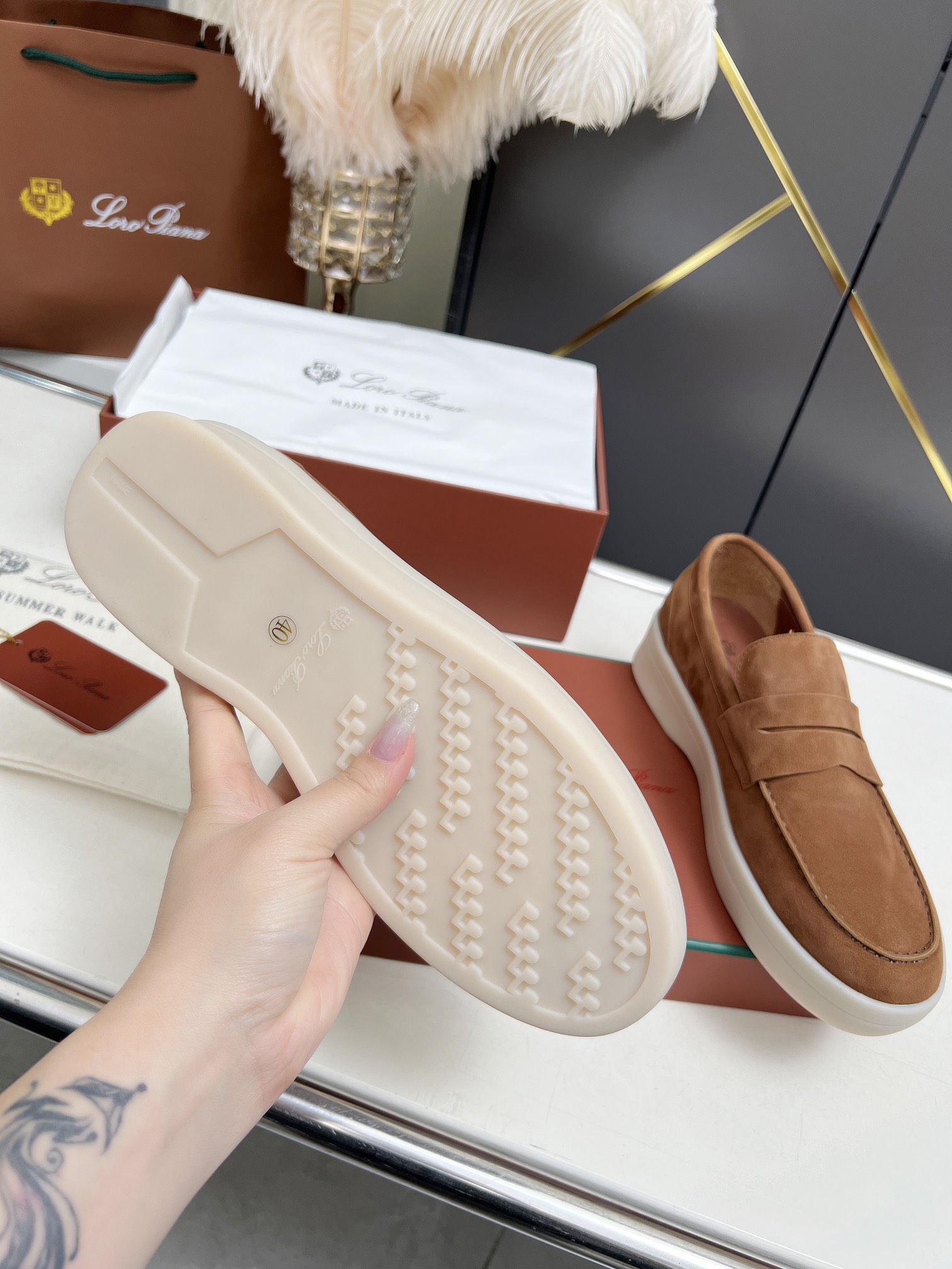 这款鞋子是AAAAA 1:1 质量 (非常棒). 使用了和原版一模一样的材料. 商标部分也保持了和洛罗皮亚纳/Loro Piana一样. 图片拍摄是实物鞋子拍摄, 您所收到的实物保证和我们图片一模一样.
