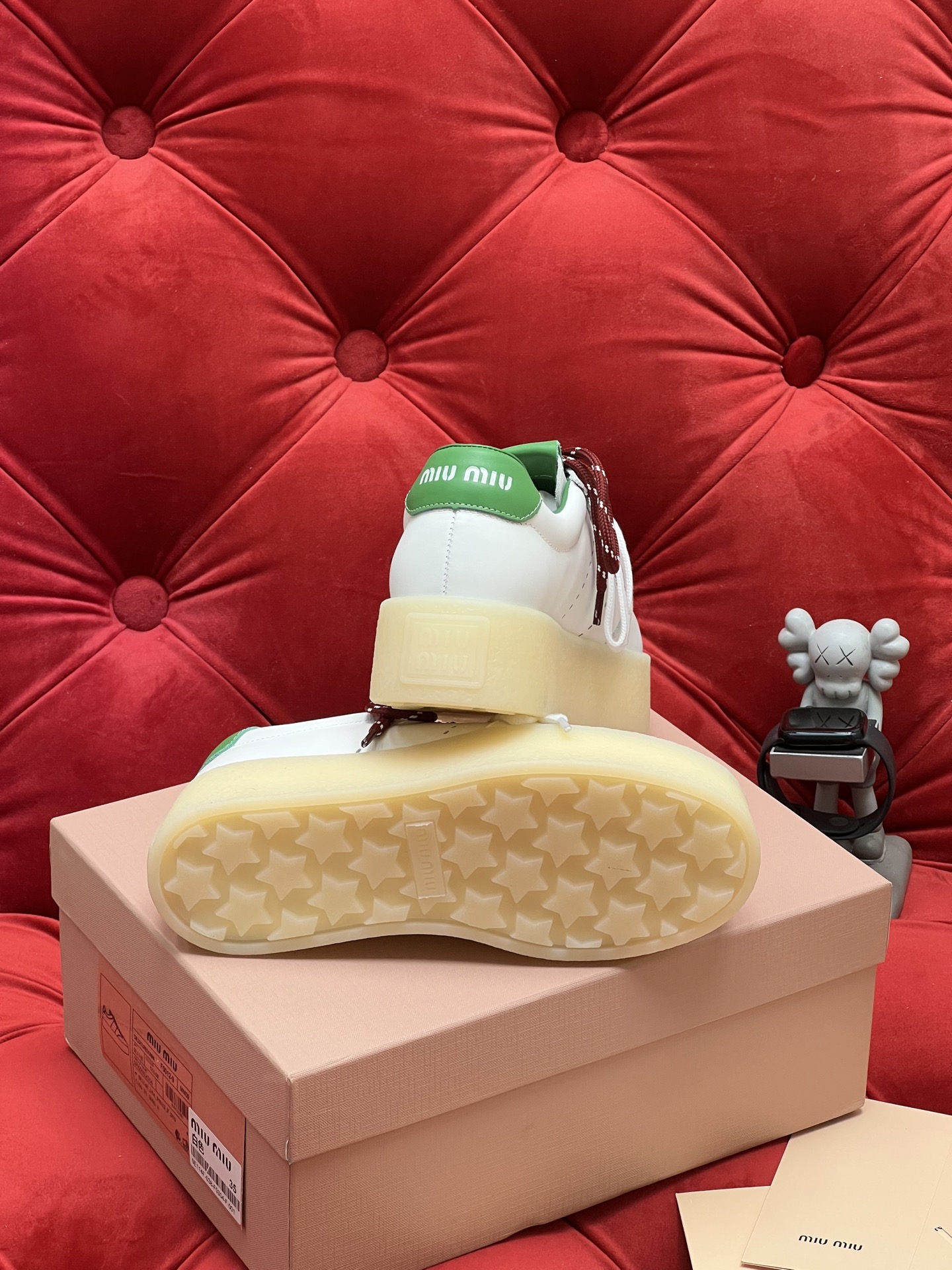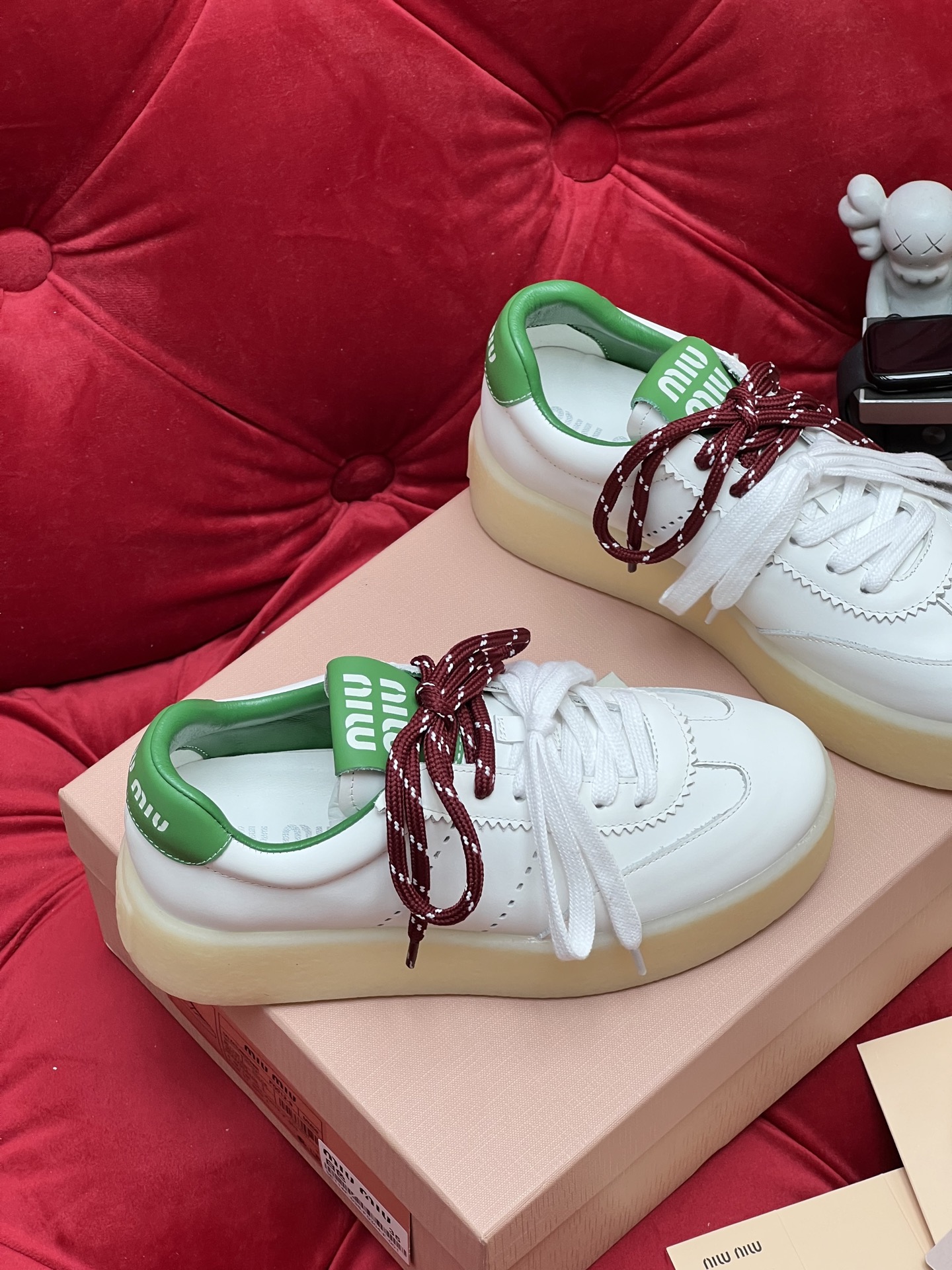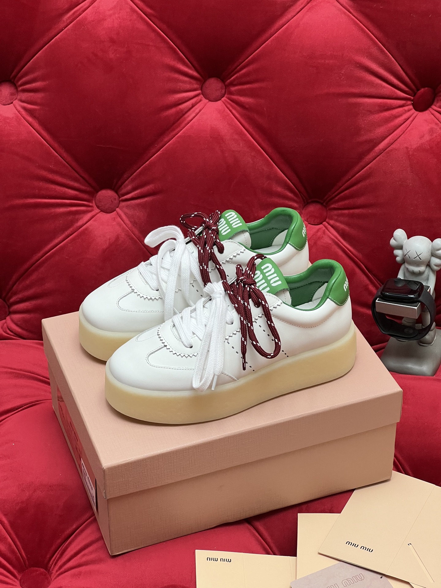 这款鞋子是AAAAA 1:1 质量 (非常棒). 使用了和原版一模一样的材料. 商标部分也保持了和缪缪/Miu Miu一样. 图片拍摄是实物鞋子拍摄, 您所收到的实物保证和我们图片一模一样.
