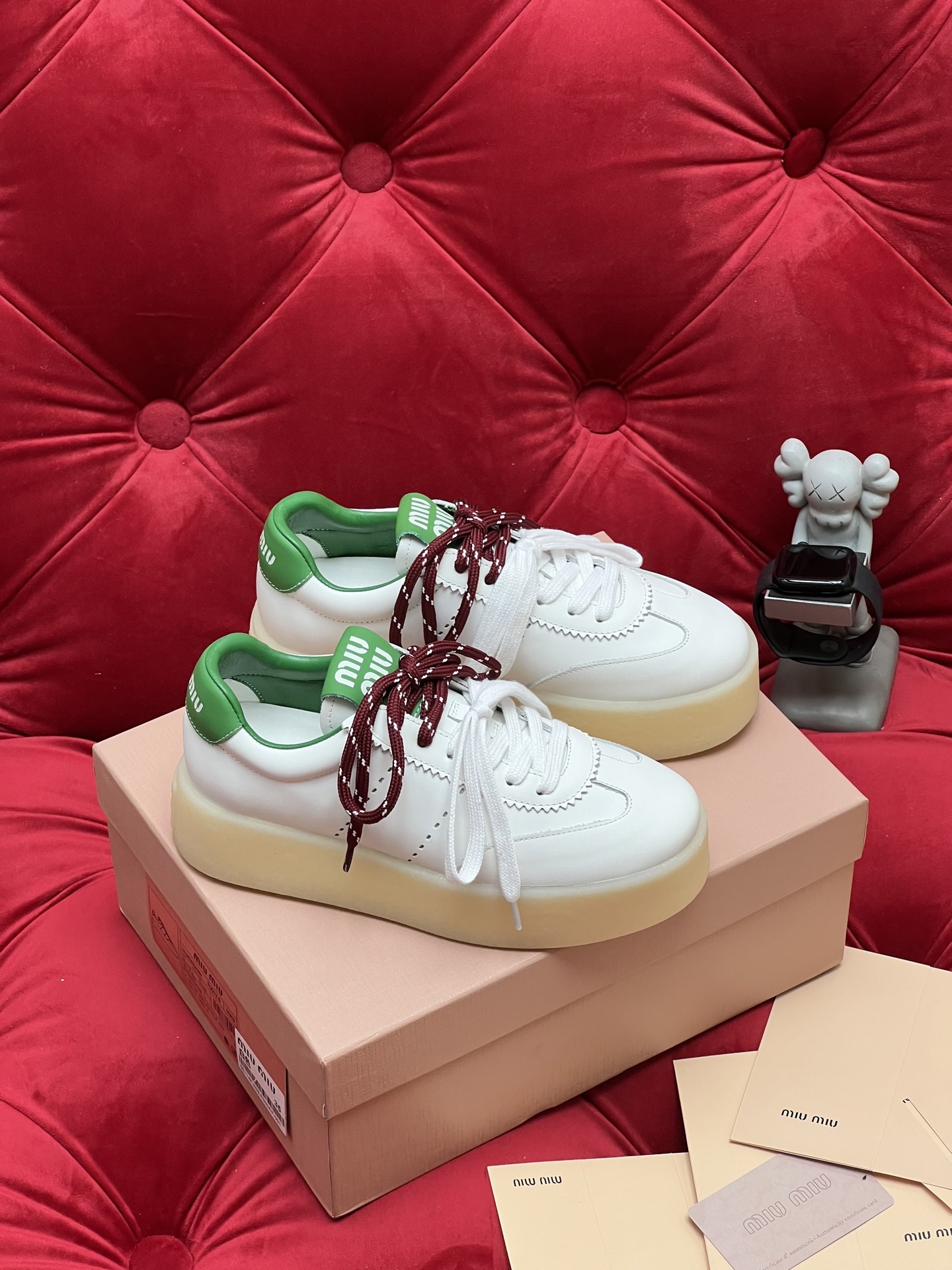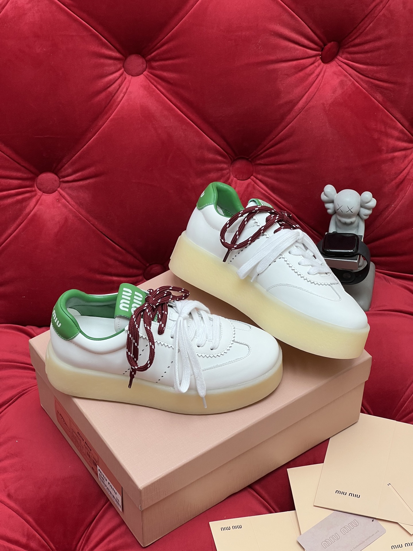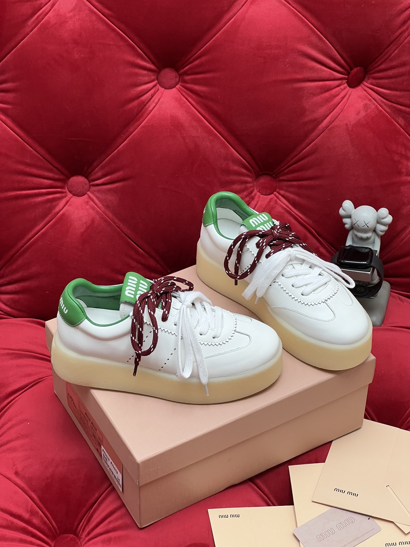 这款鞋子是AAAAA 1:1 质量 (非常棒). 使用了和原版一模一样的材料. 商标部分也保持了和缪缪/Miu Miu一样. 图片拍摄是实物鞋子拍摄, 您所收到的实物保证和我们图片一模一样.