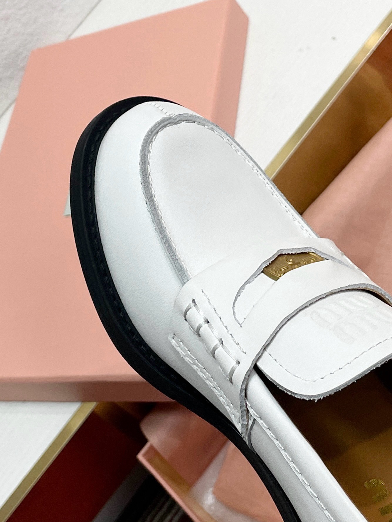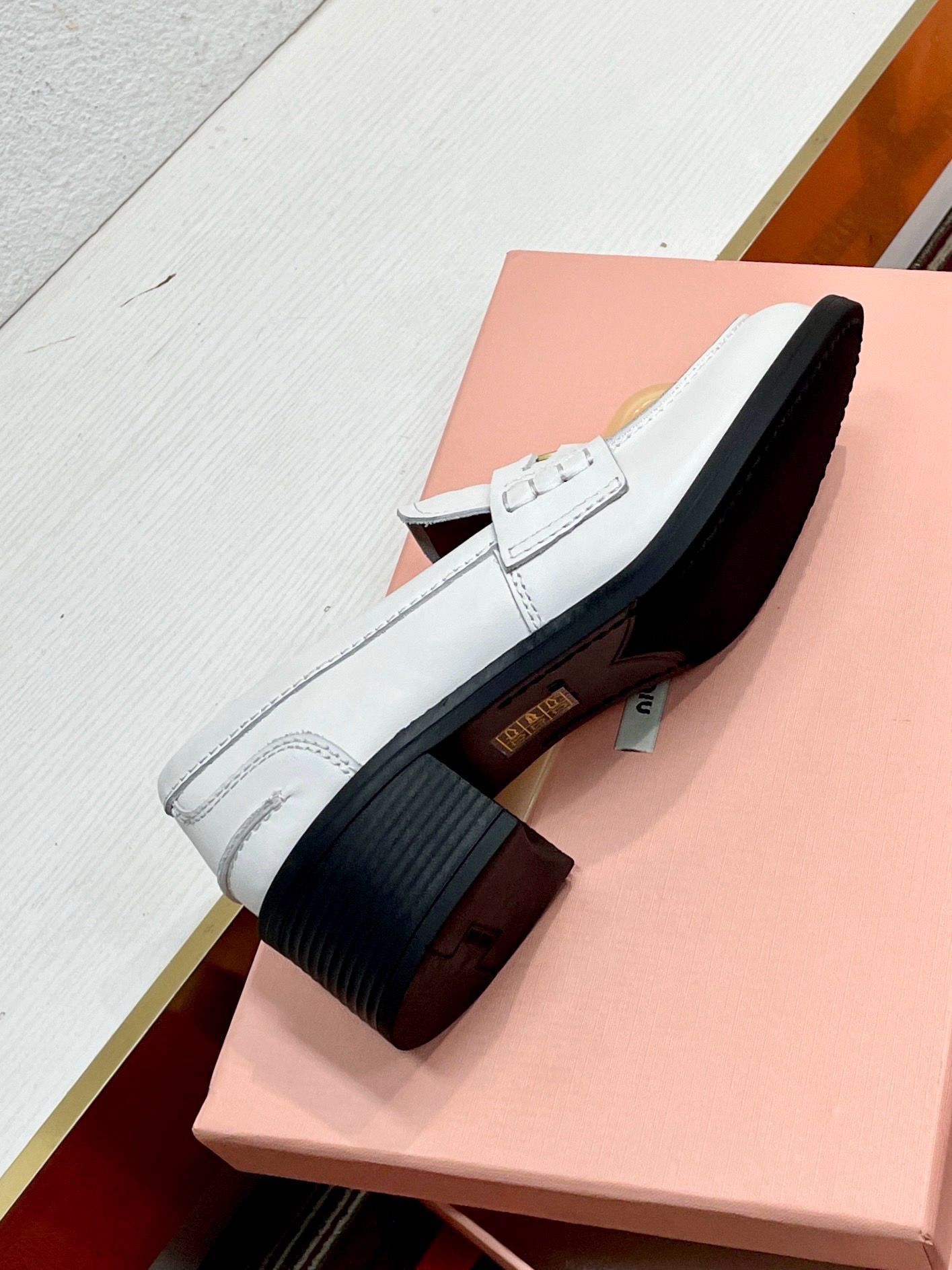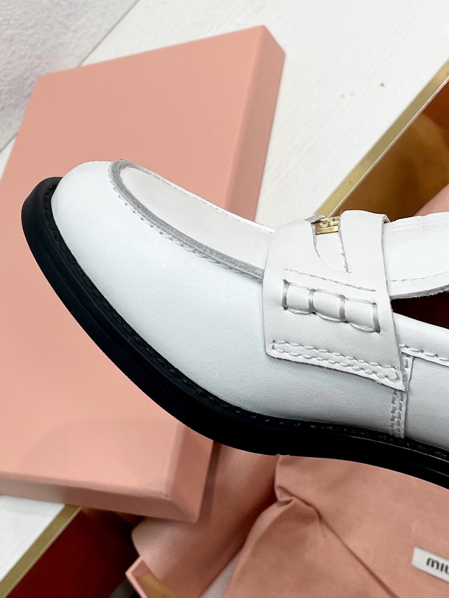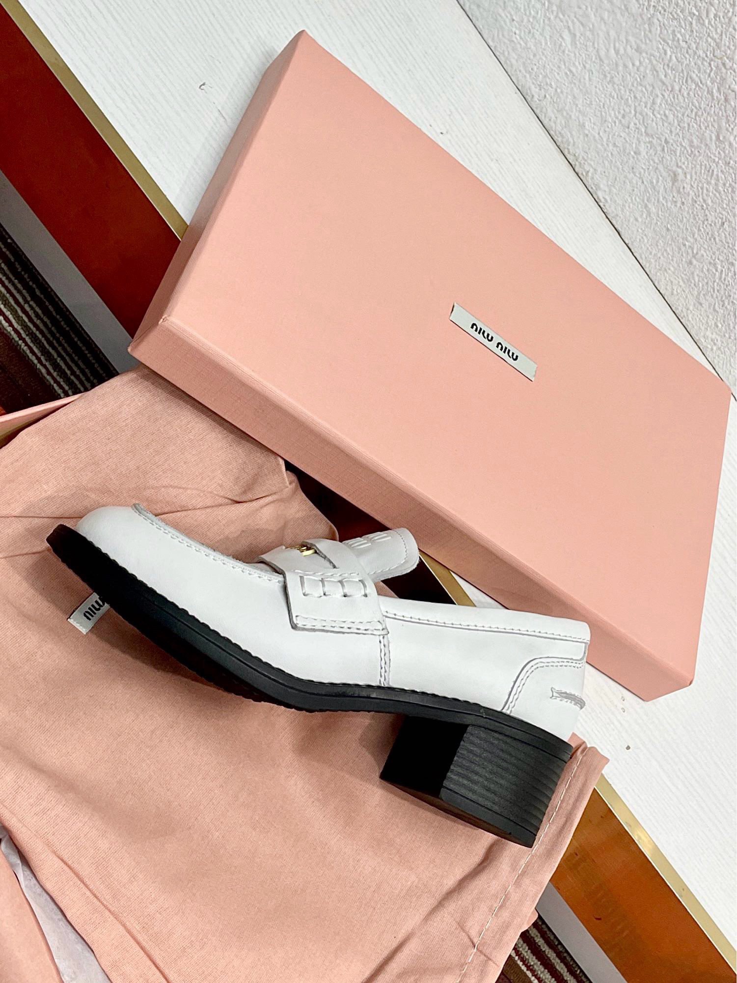 这款鞋子是AAAAA 1:1 质量 (非常棒). 使用了和原版一模一样的材料. 商标部分也保持了和缪缪/Miu Miu一样. 图片拍摄是实物鞋子拍摄, 您所收到的实物保证和我们图片一模一样.