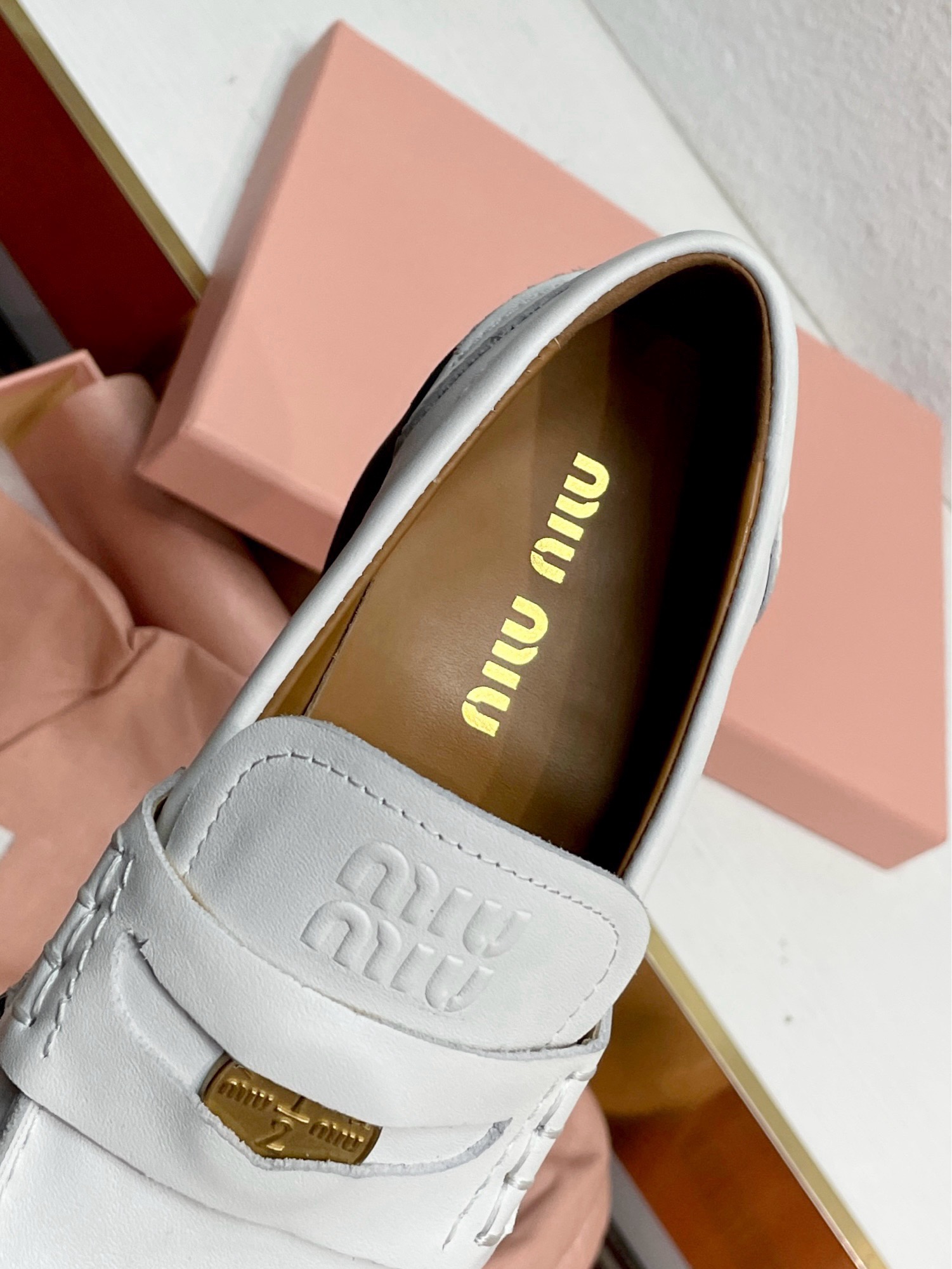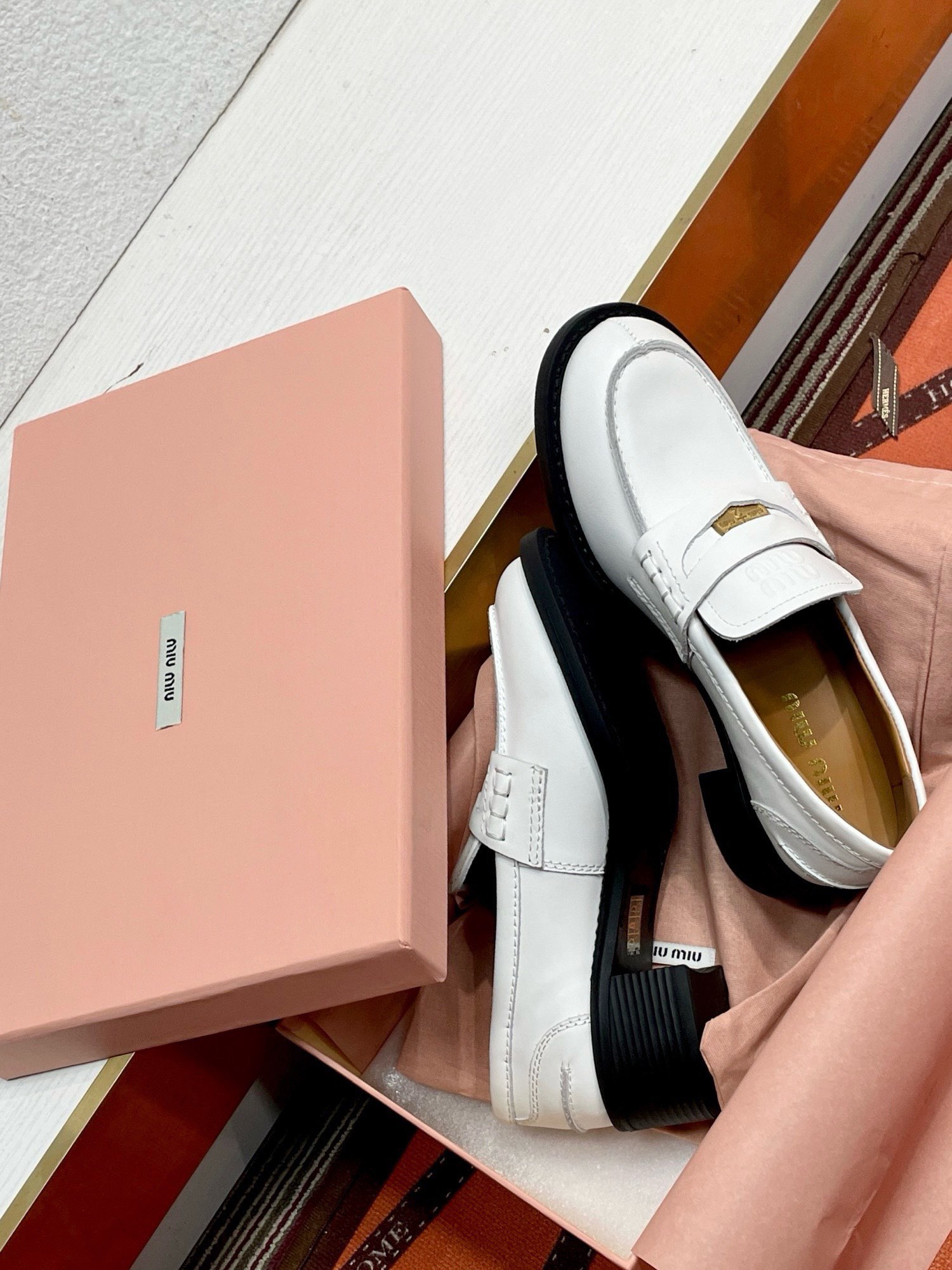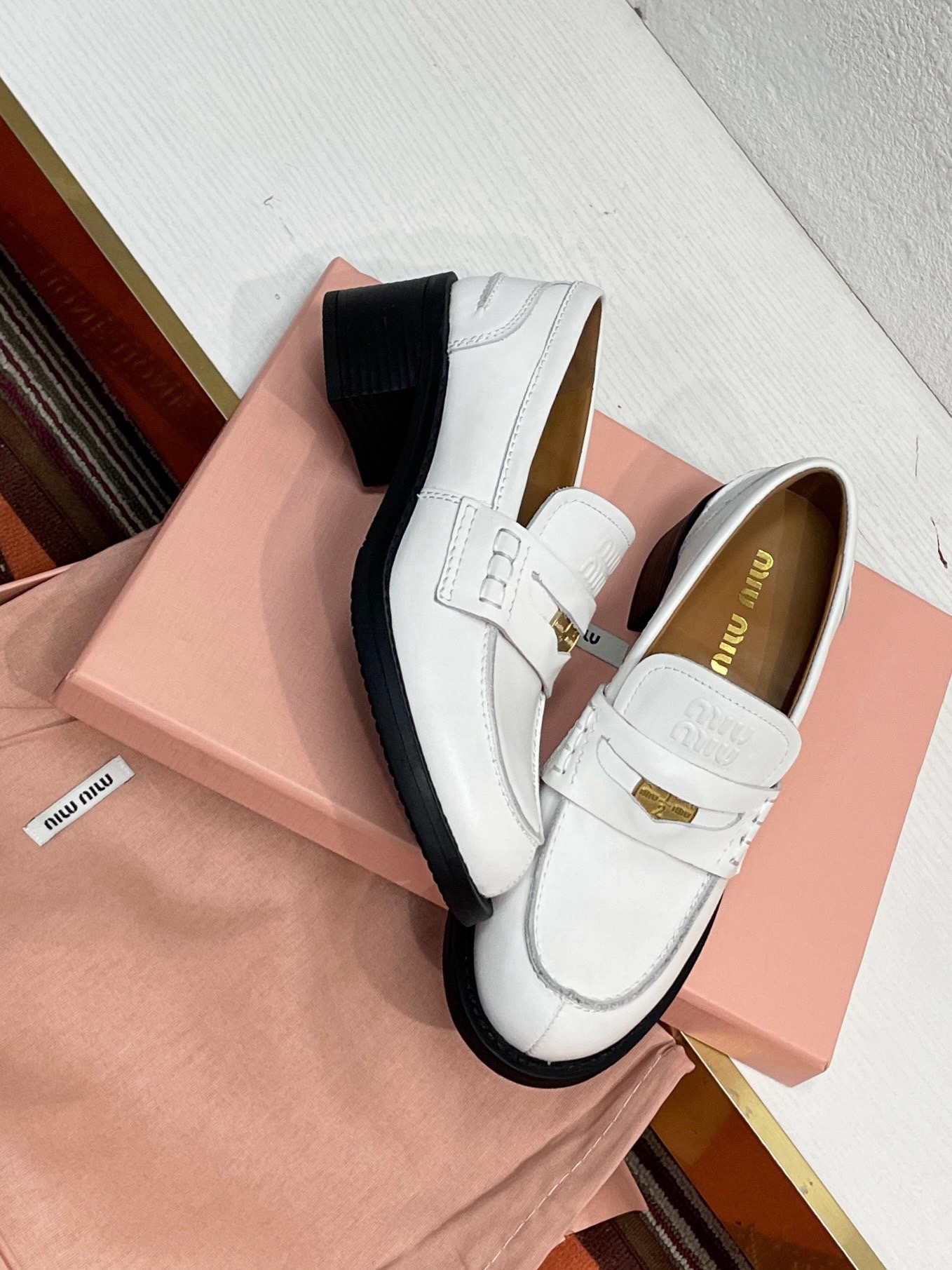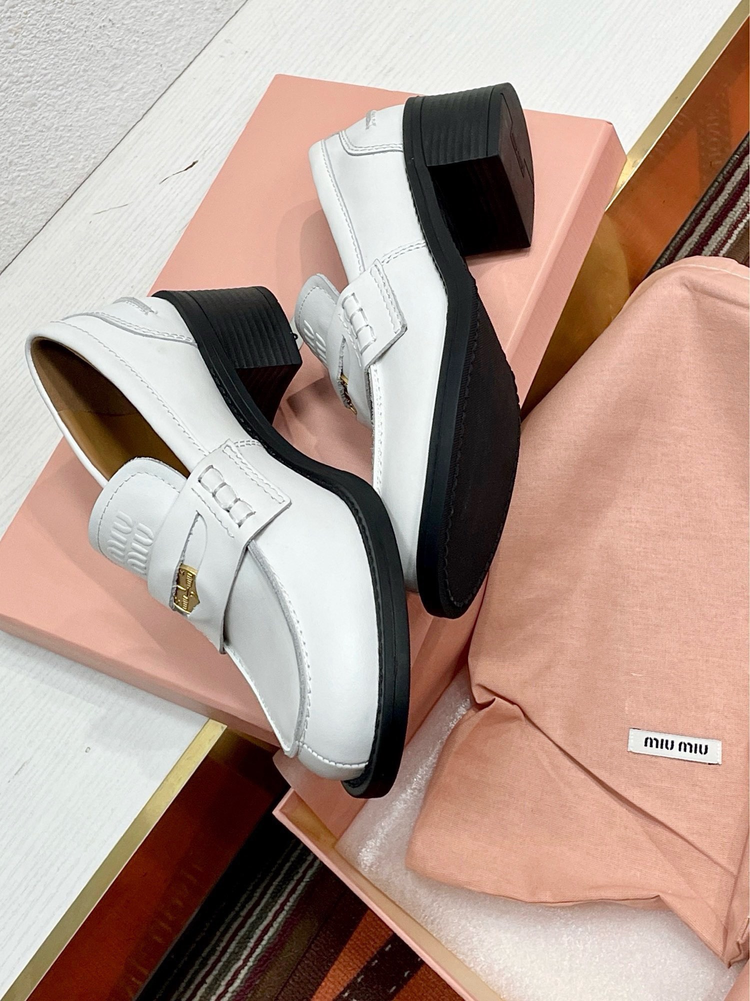 这款鞋子是AAAAA 1:1 质量 (非常棒). 使用了和原版一模一样的材料. 商标部分也保持了和缪缪/Miu Miu一样. 图片拍摄是实物鞋子拍摄, 您所收到的实物保证和我们图片一模一样.