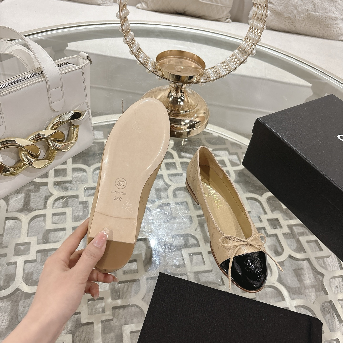 这款鞋子是AAAAA 1:1 质量 (非常棒). 使用了和原版一模一样的材料. 商标部分也保持了和香奈儿/Chanel一样. 图片拍摄是实物鞋子拍摄, 您所收到的实物保证和我们图片一模一样.