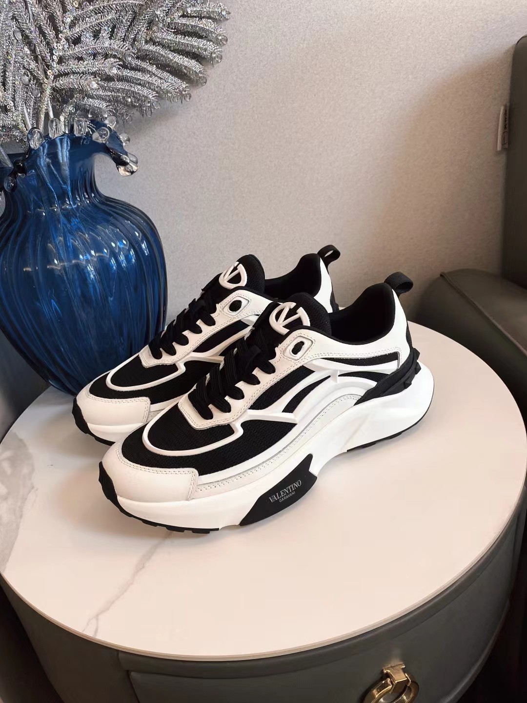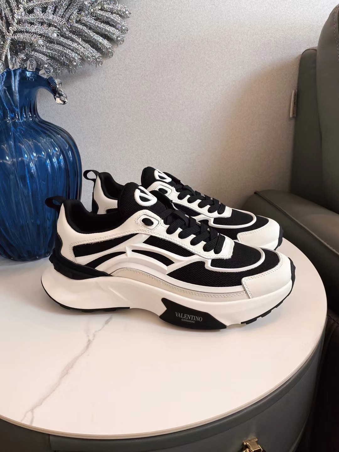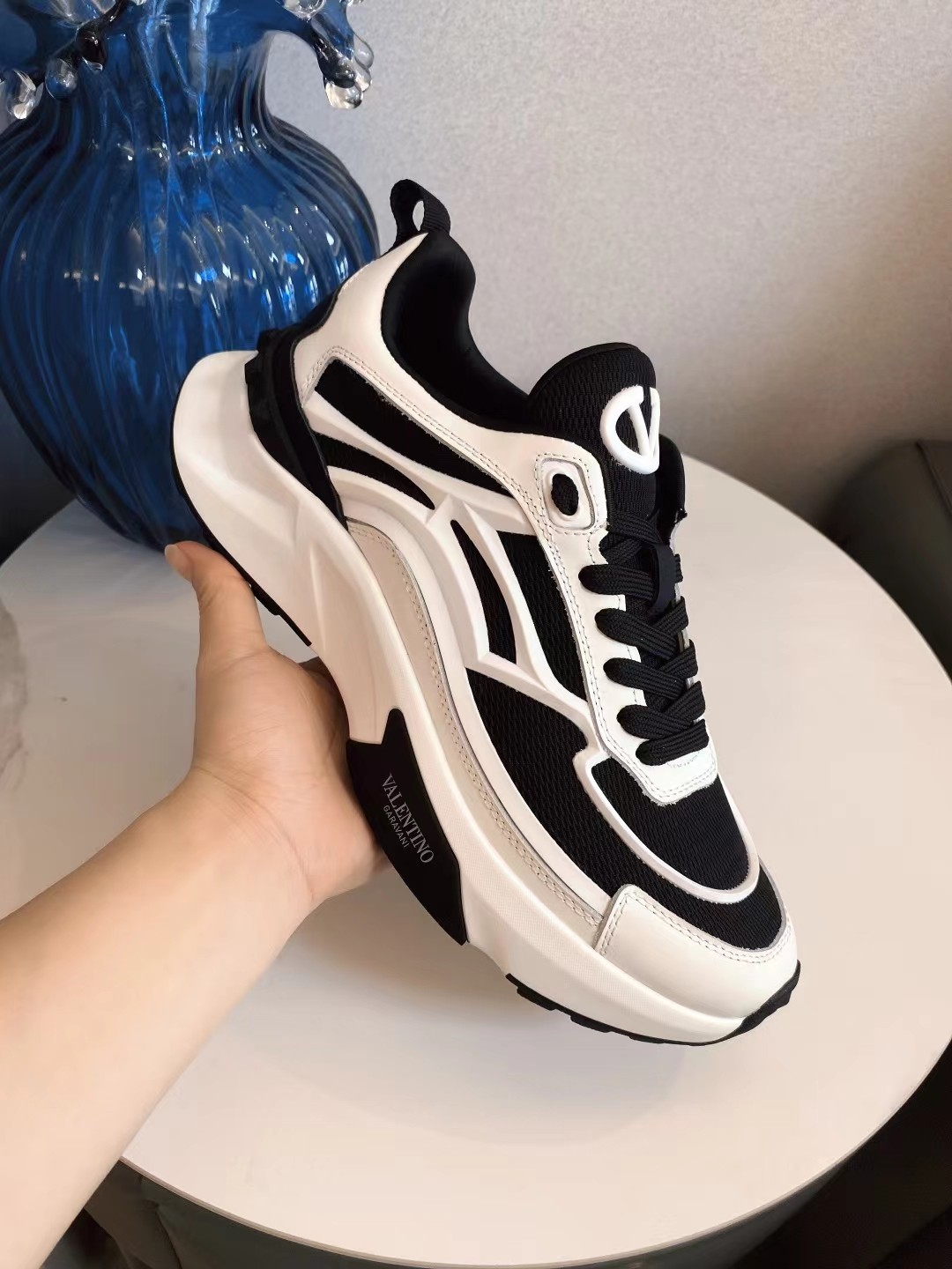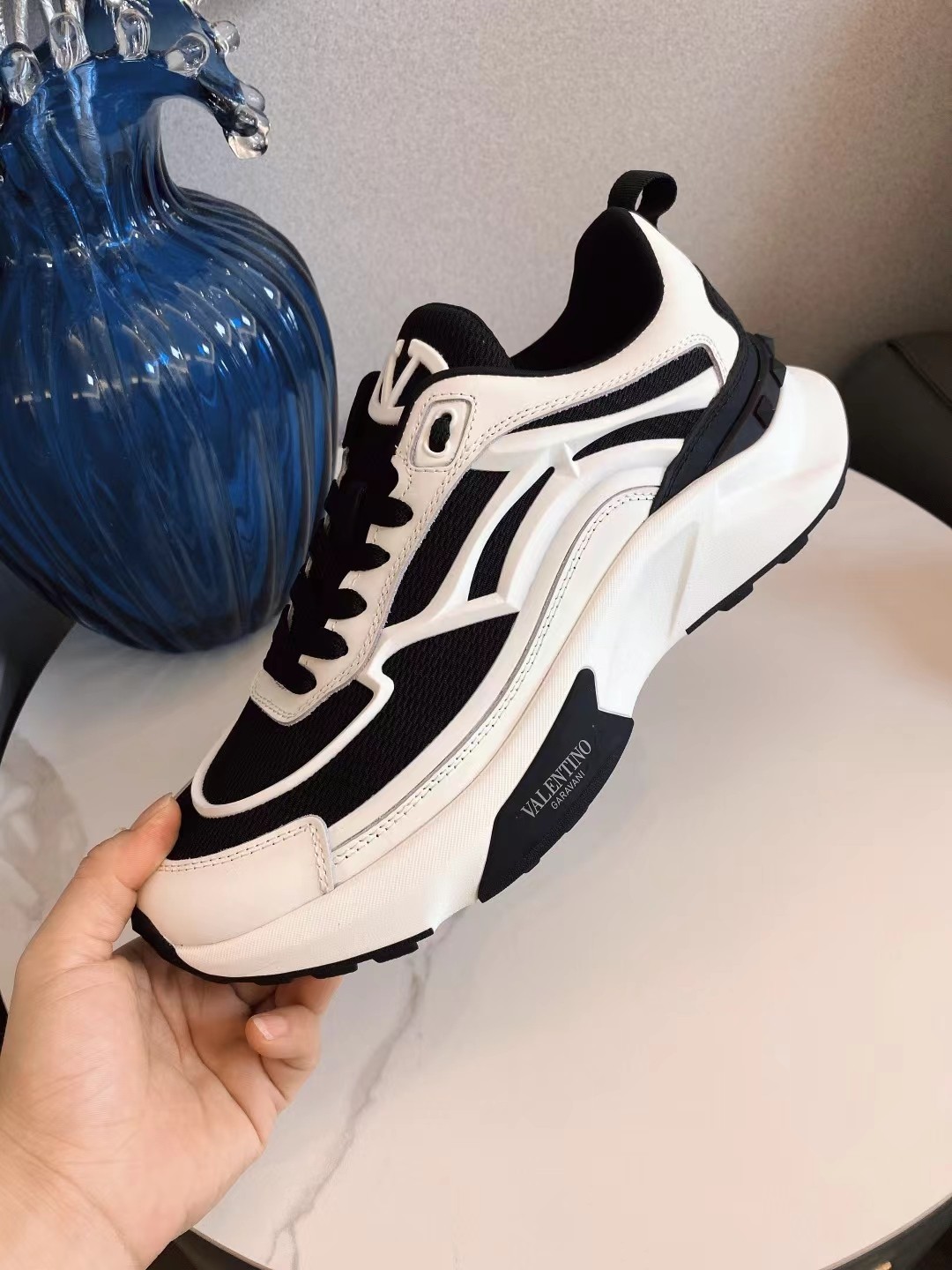 这款鞋子是AAAAA 1:1 质量 (非常棒). 使用了和原版一模一样的材料. 商标部分也保持了和华伦天奴/Valentino一样. 图片拍摄是实物鞋子拍摄, 您所收到的实物保证和我们图片一模一样.
